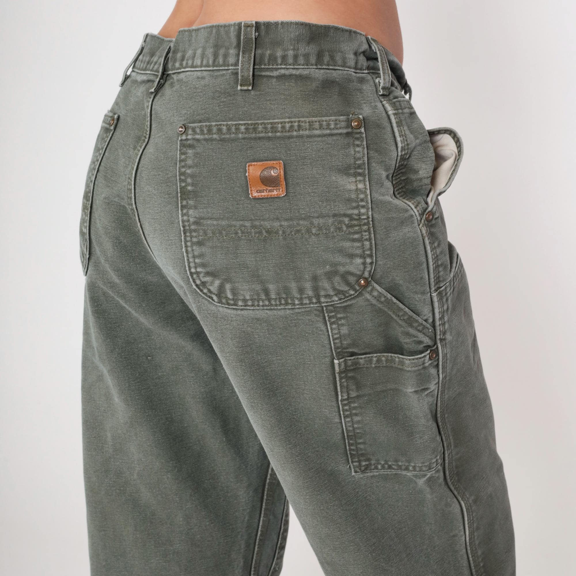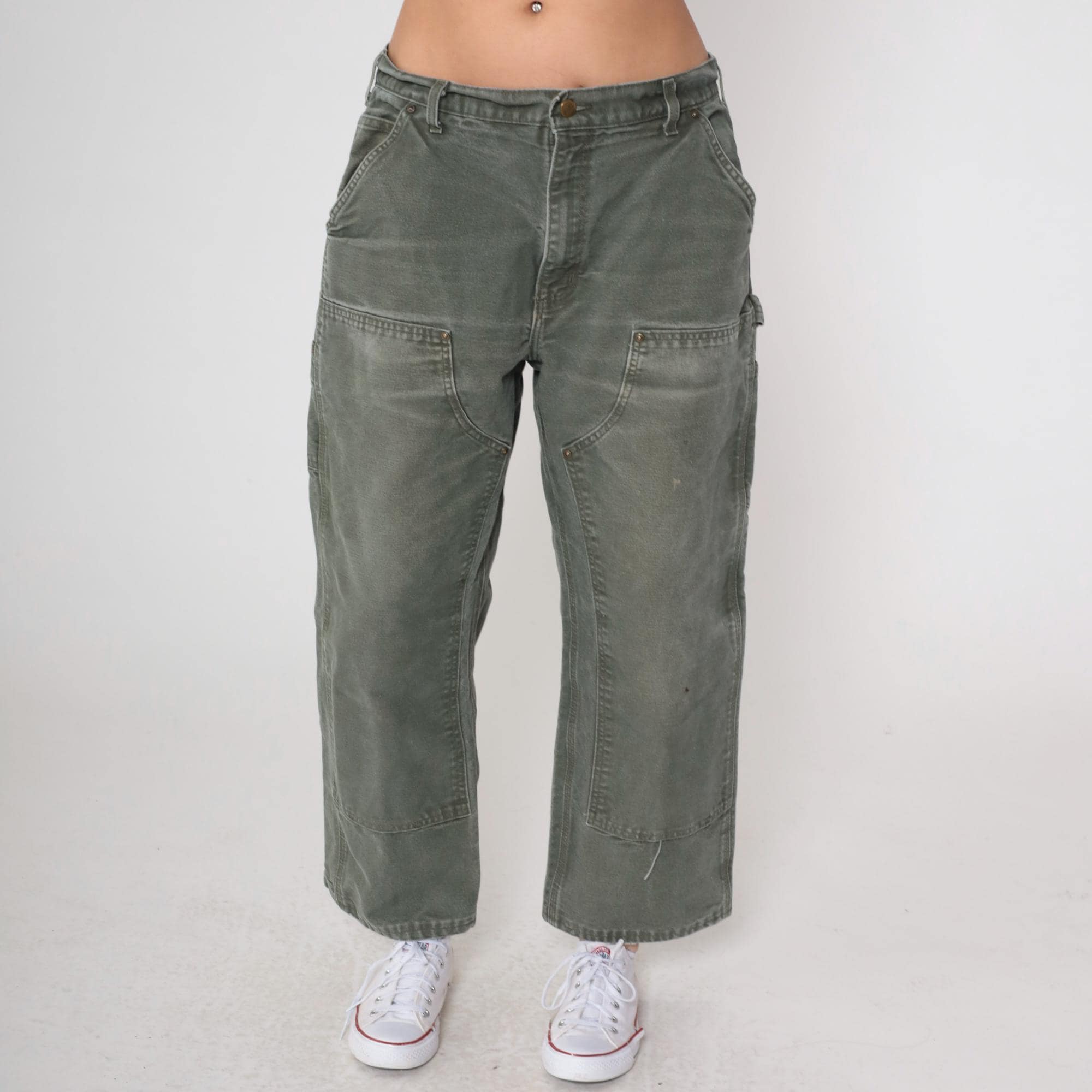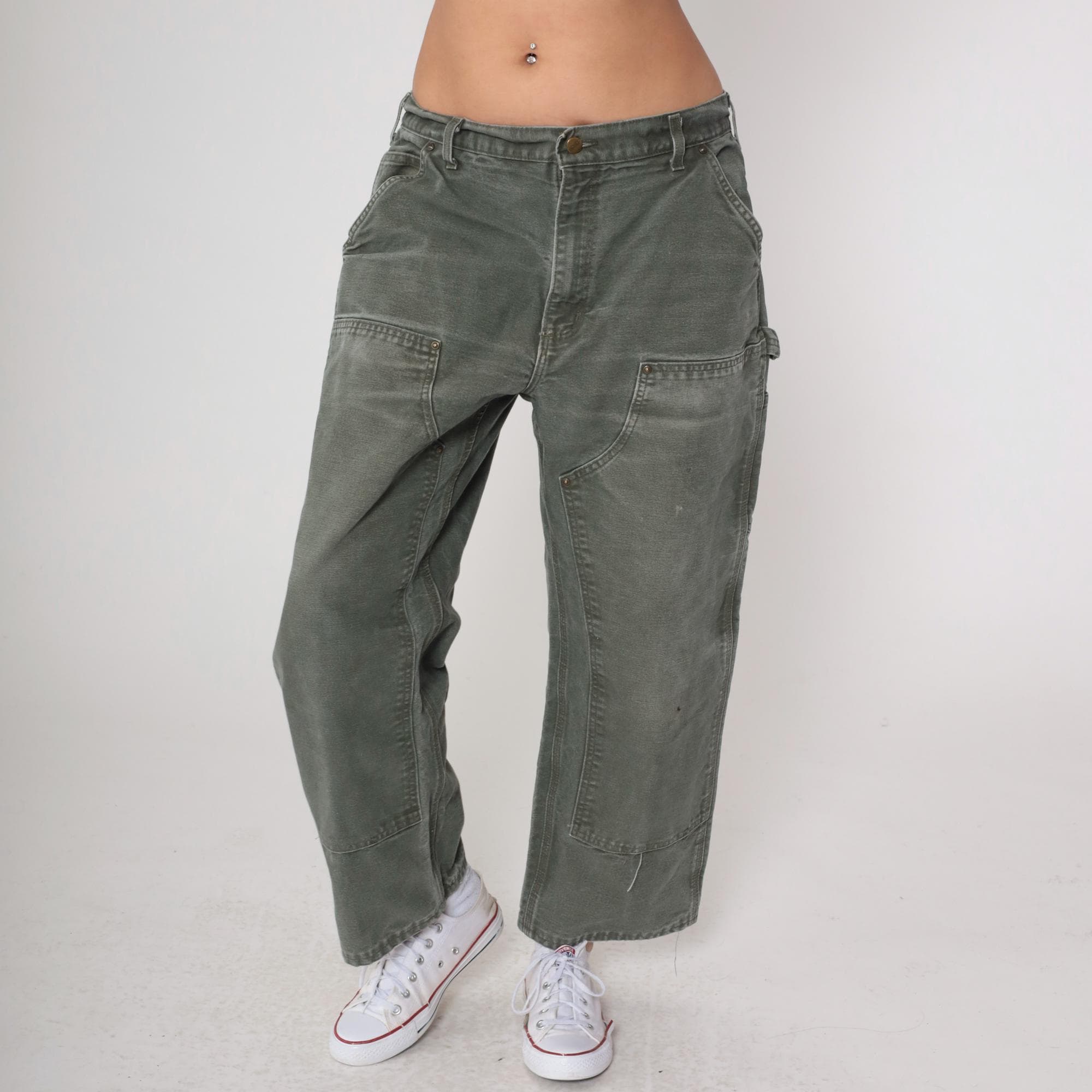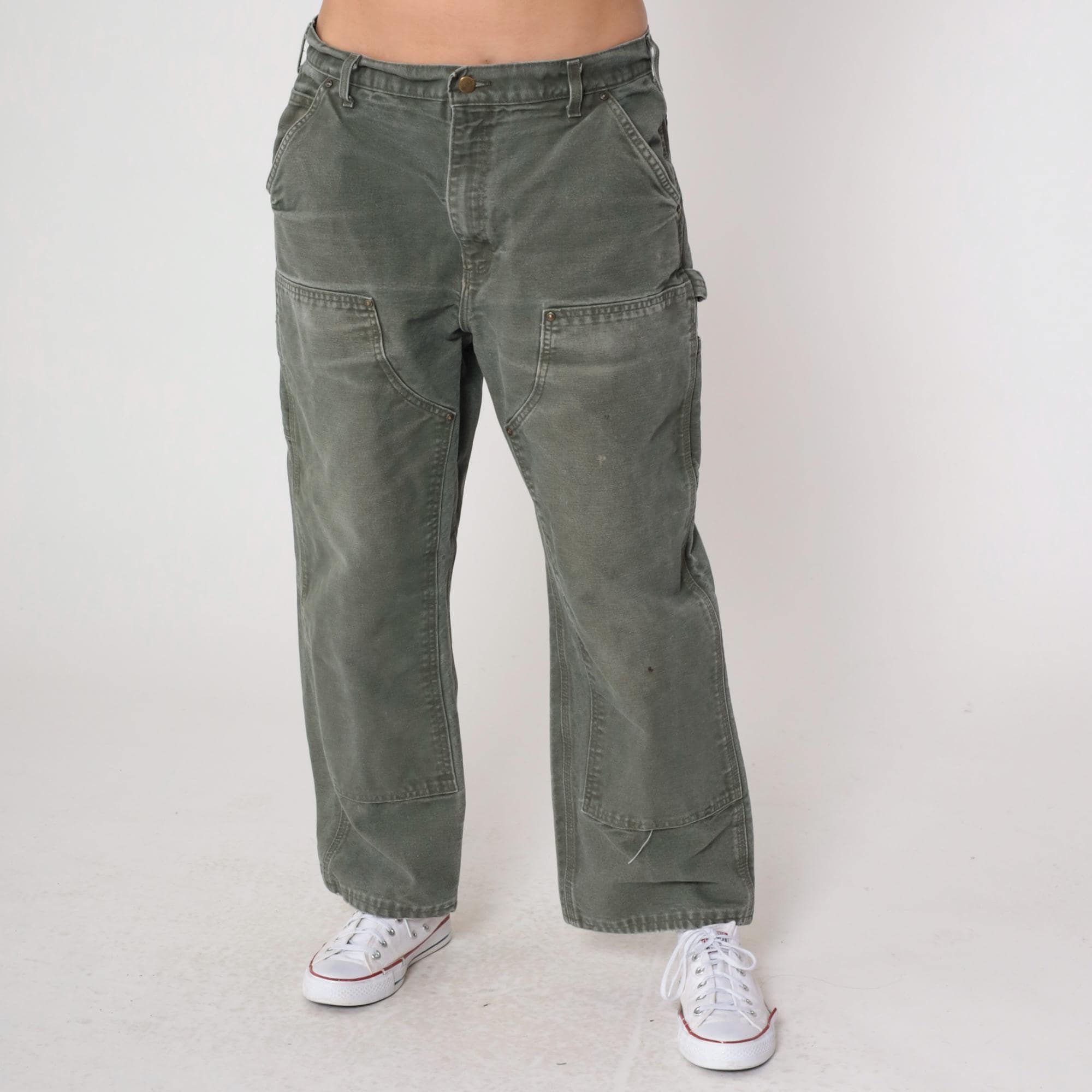 Vintage double knee Carhartt jeans in olive green with a relaxed fit.
