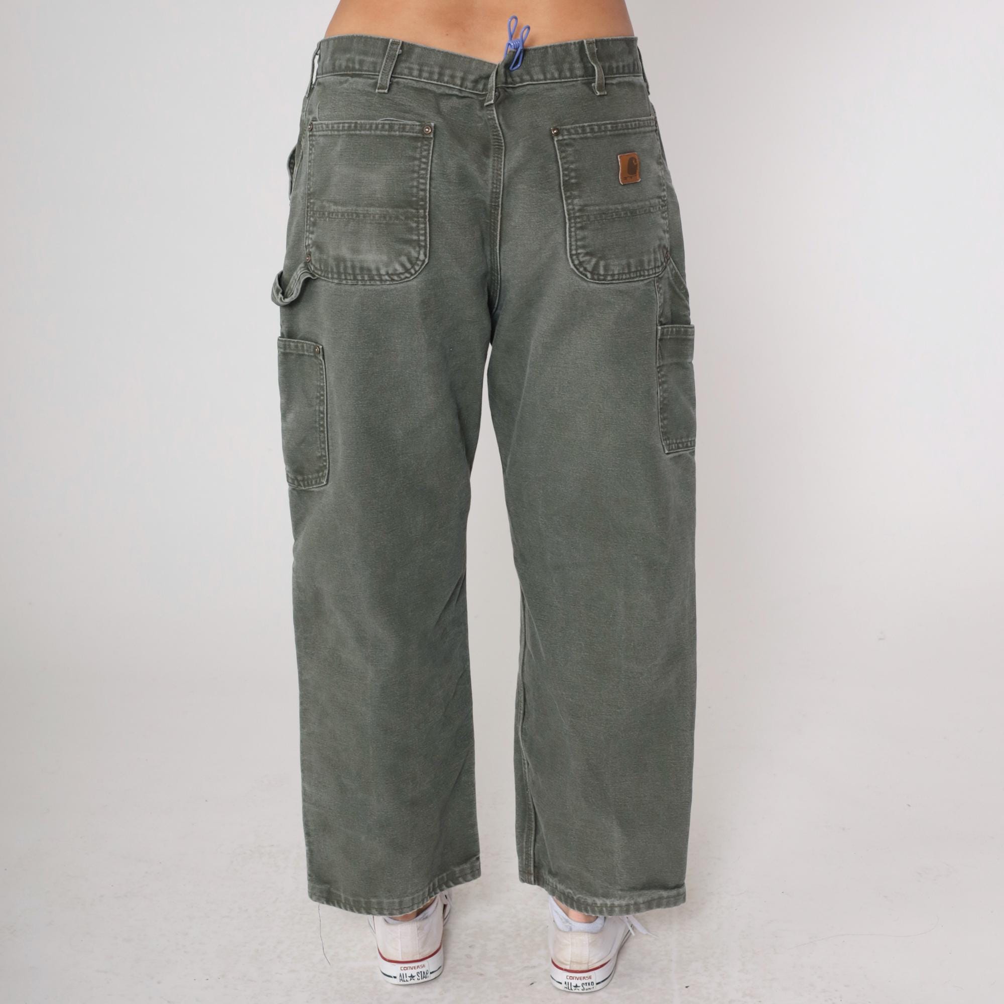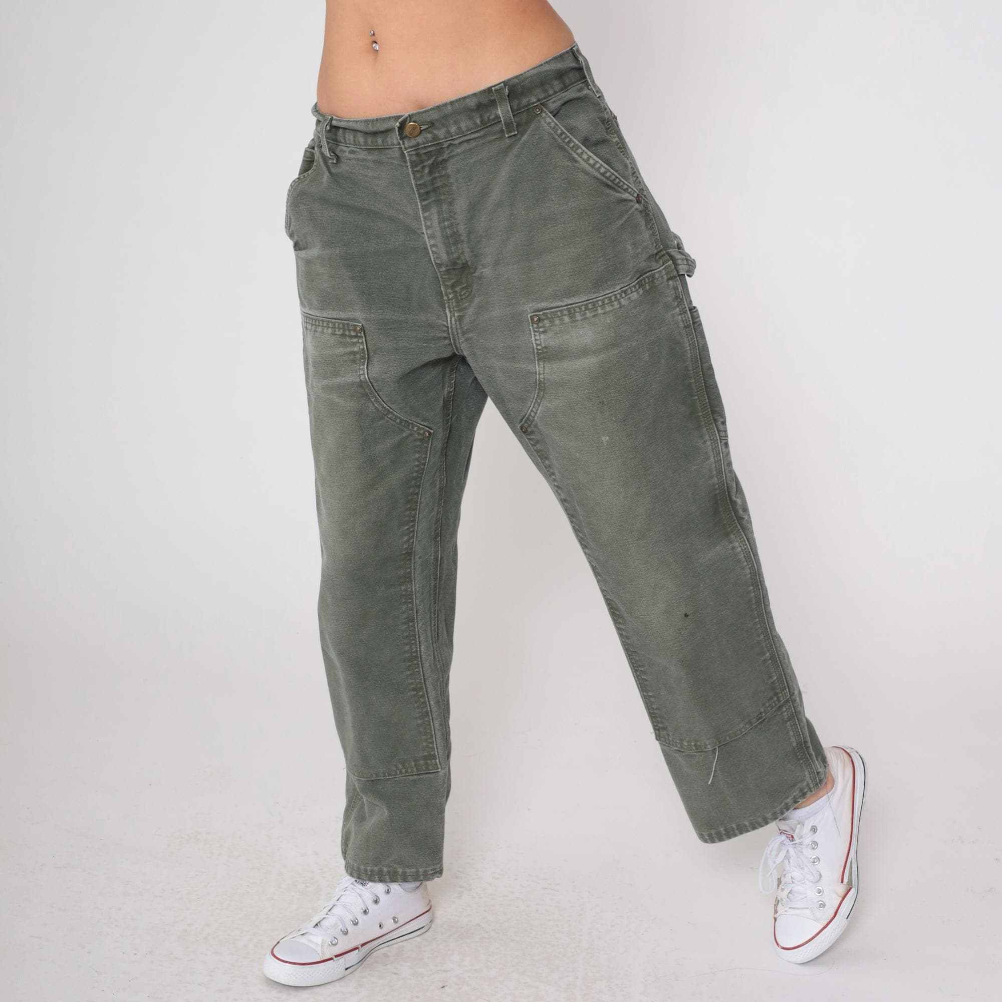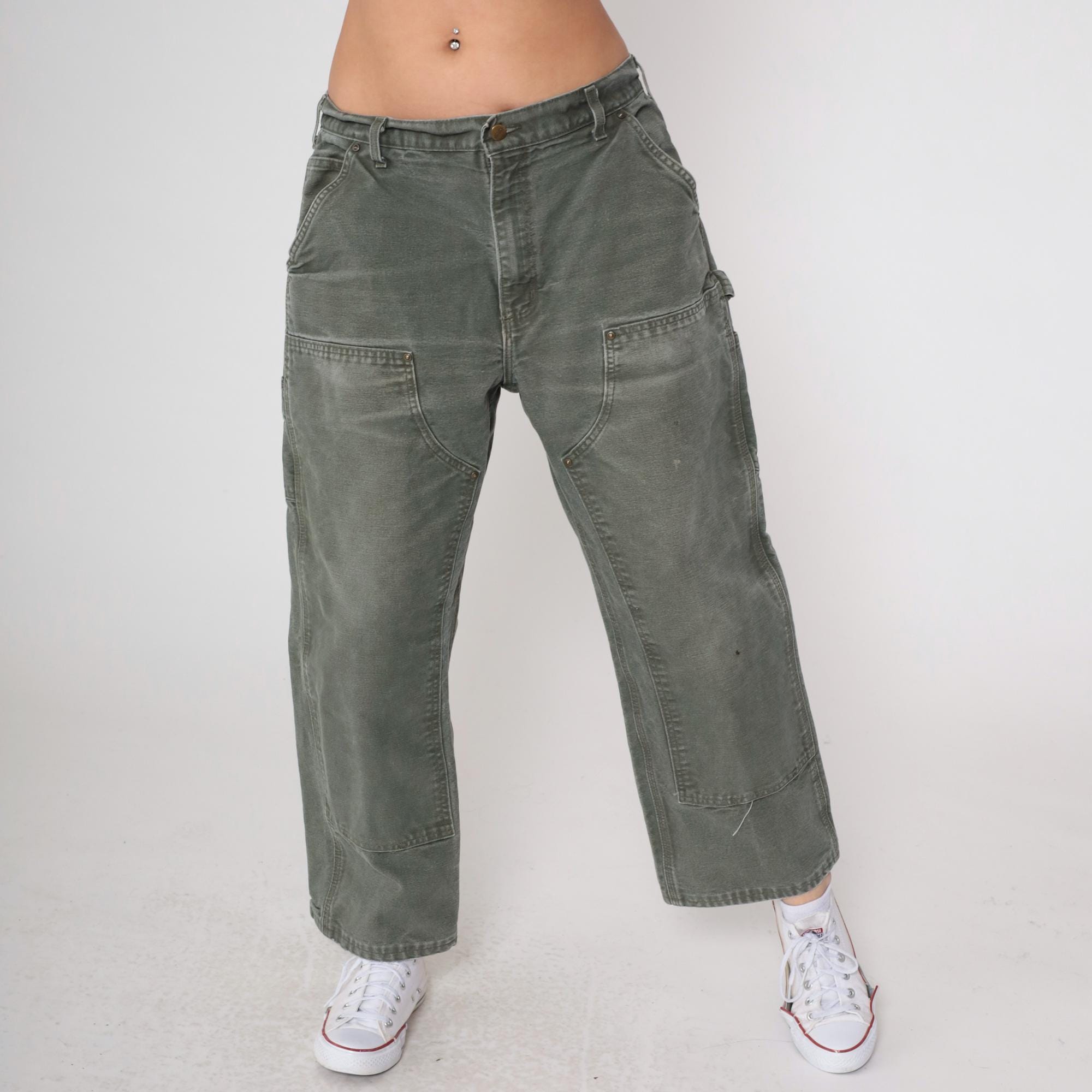 Vintage double knee Carhartt jeans in olive green with a relaxed fit.