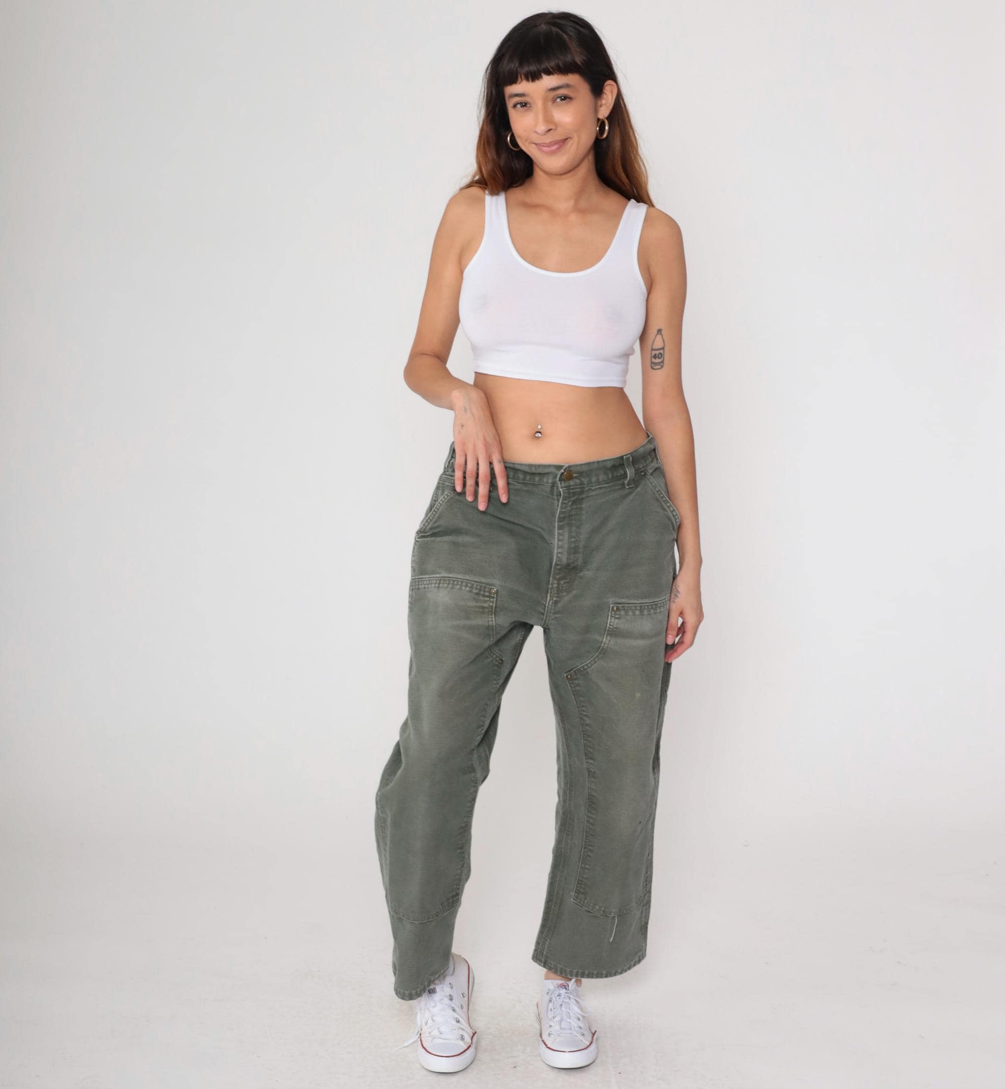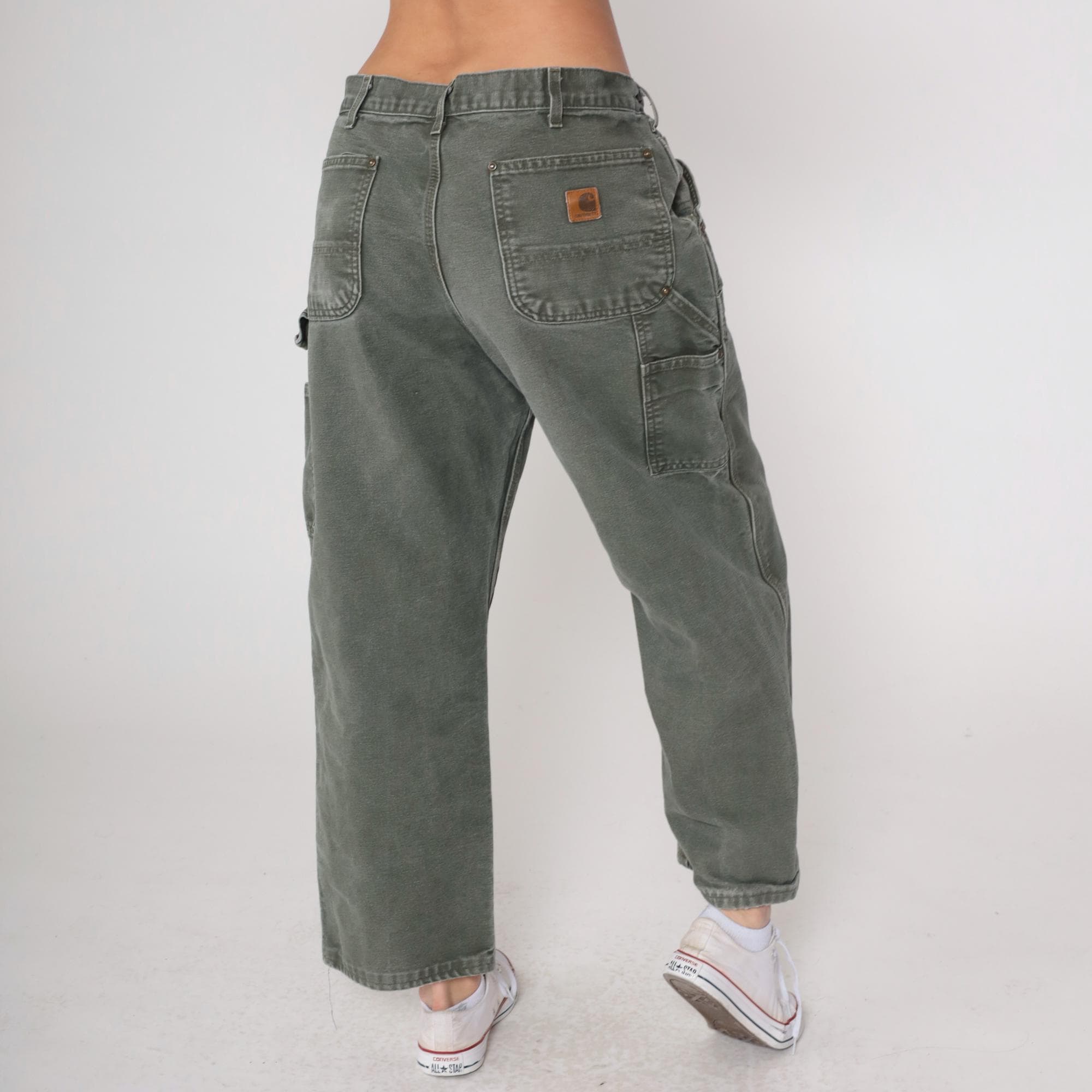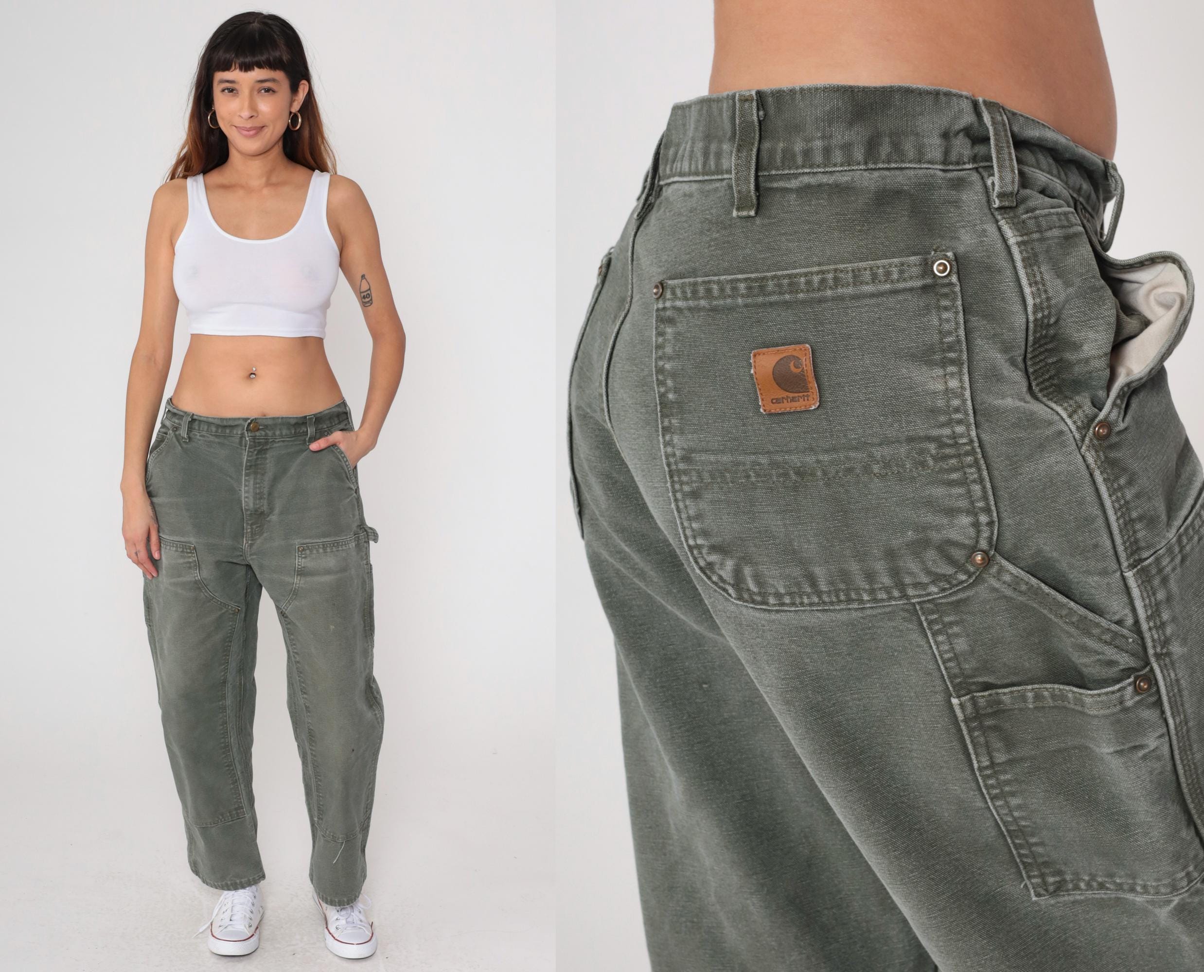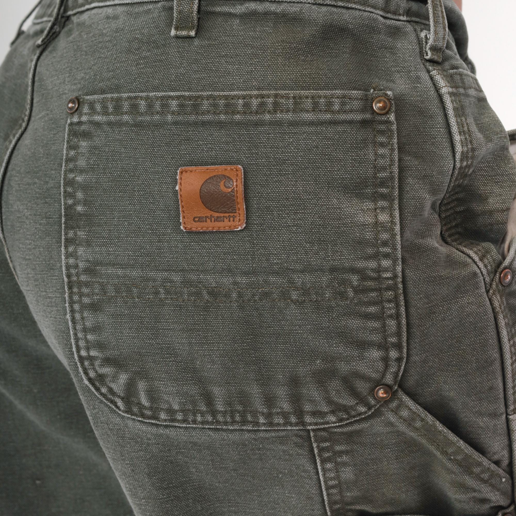 Vintage double knee Carhartt jeans in olive green with a relaxed fit.