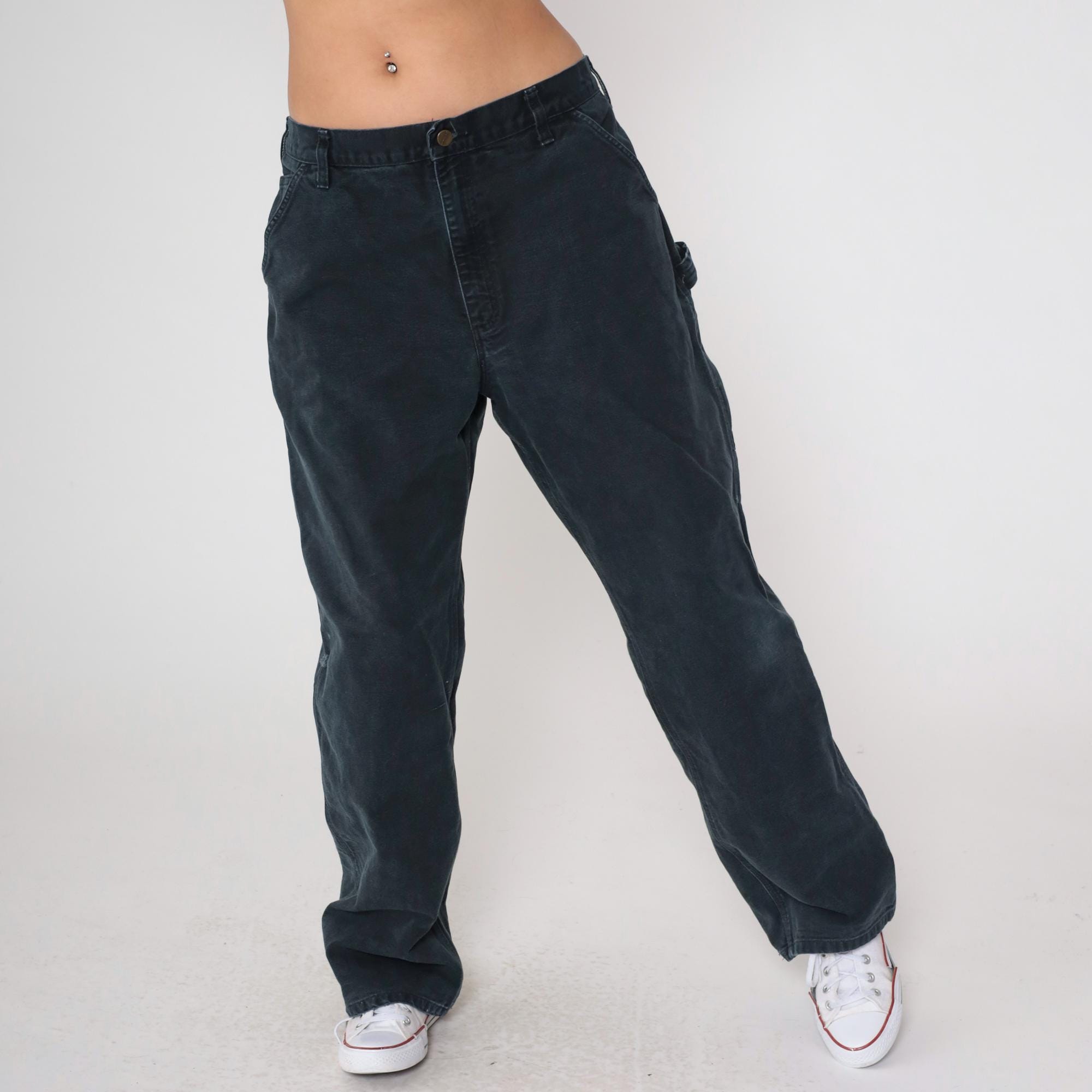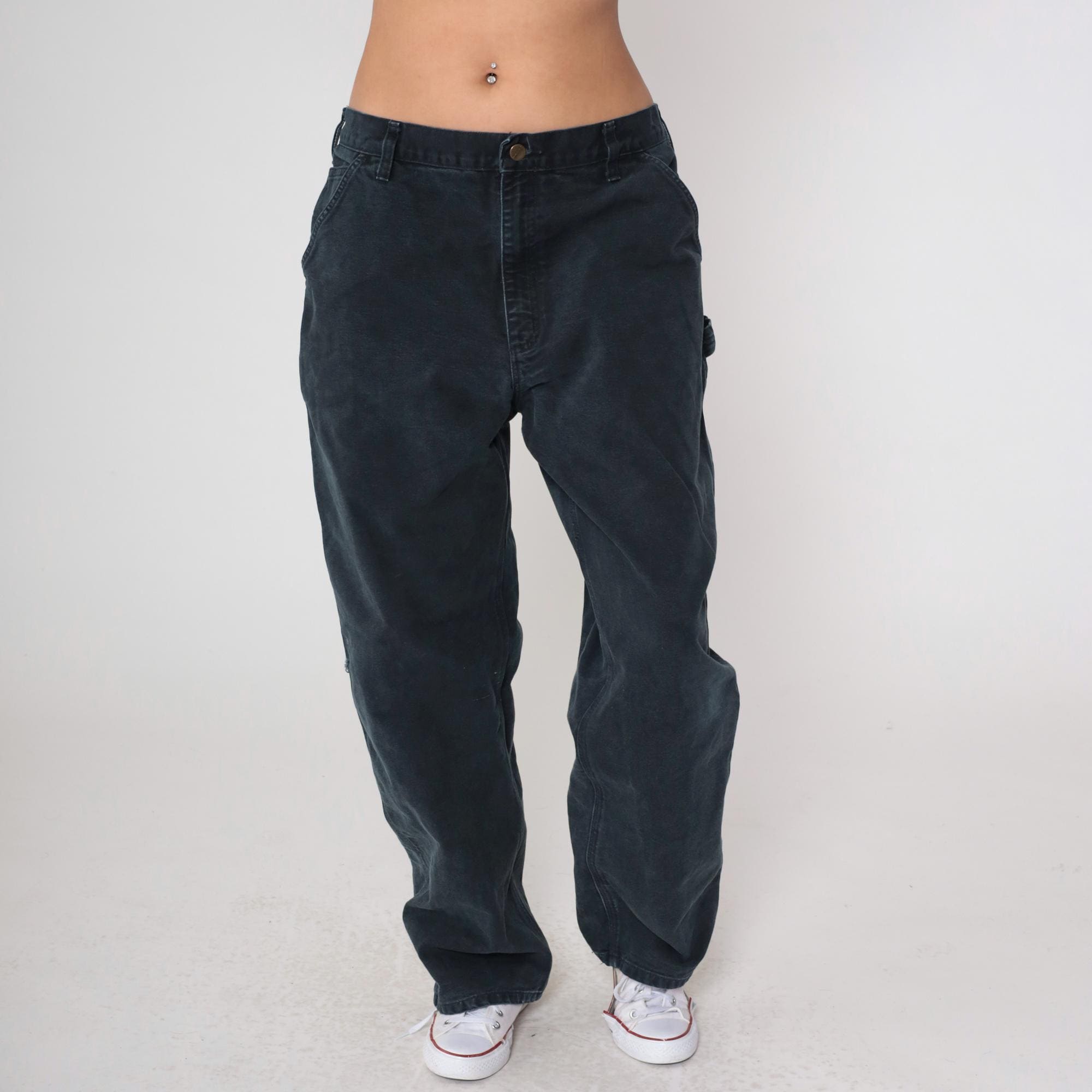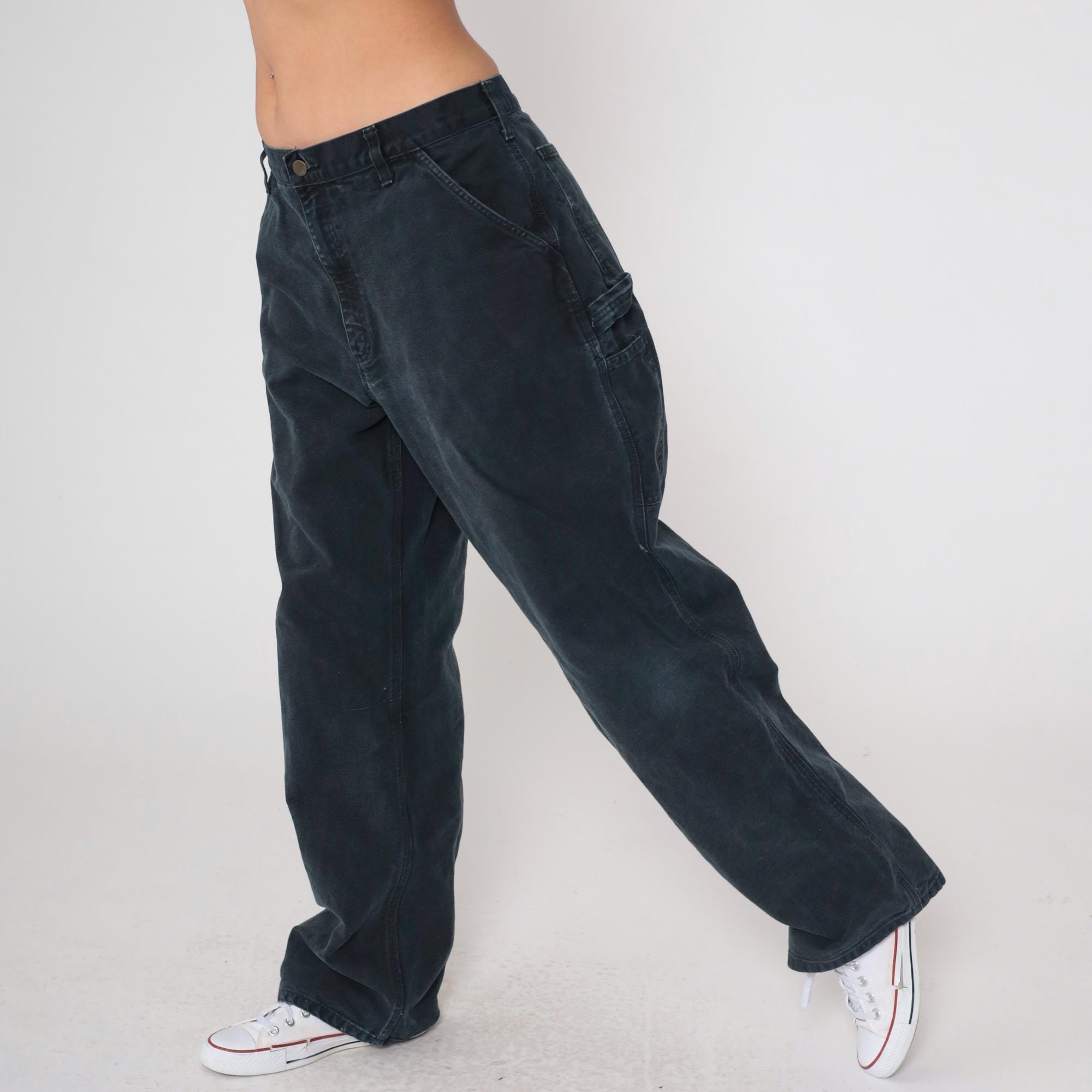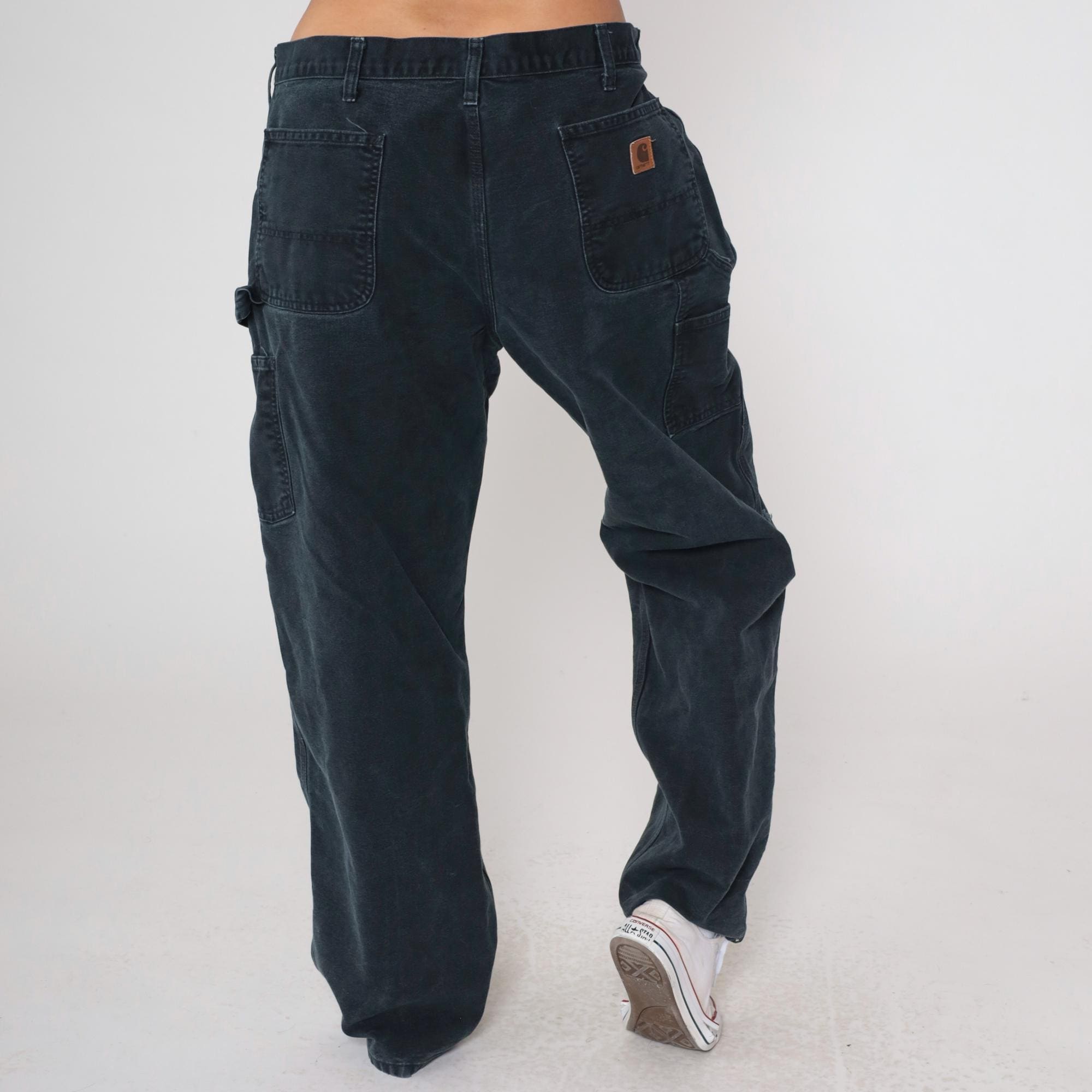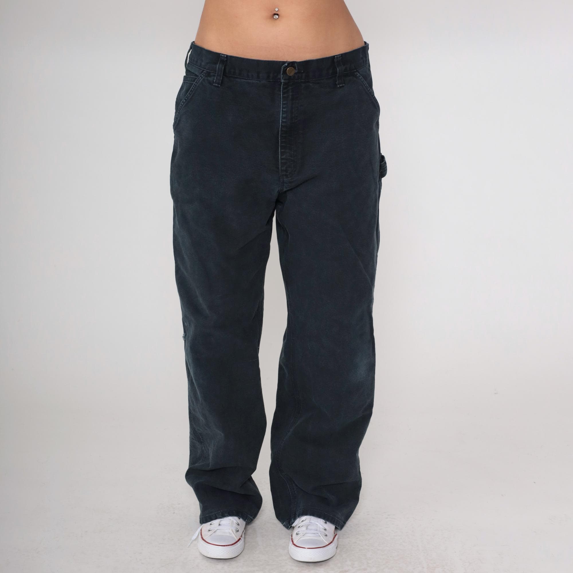 Vintage 90s pants by Carhartt in black with a double knee and a hammer loop. Originally for men.