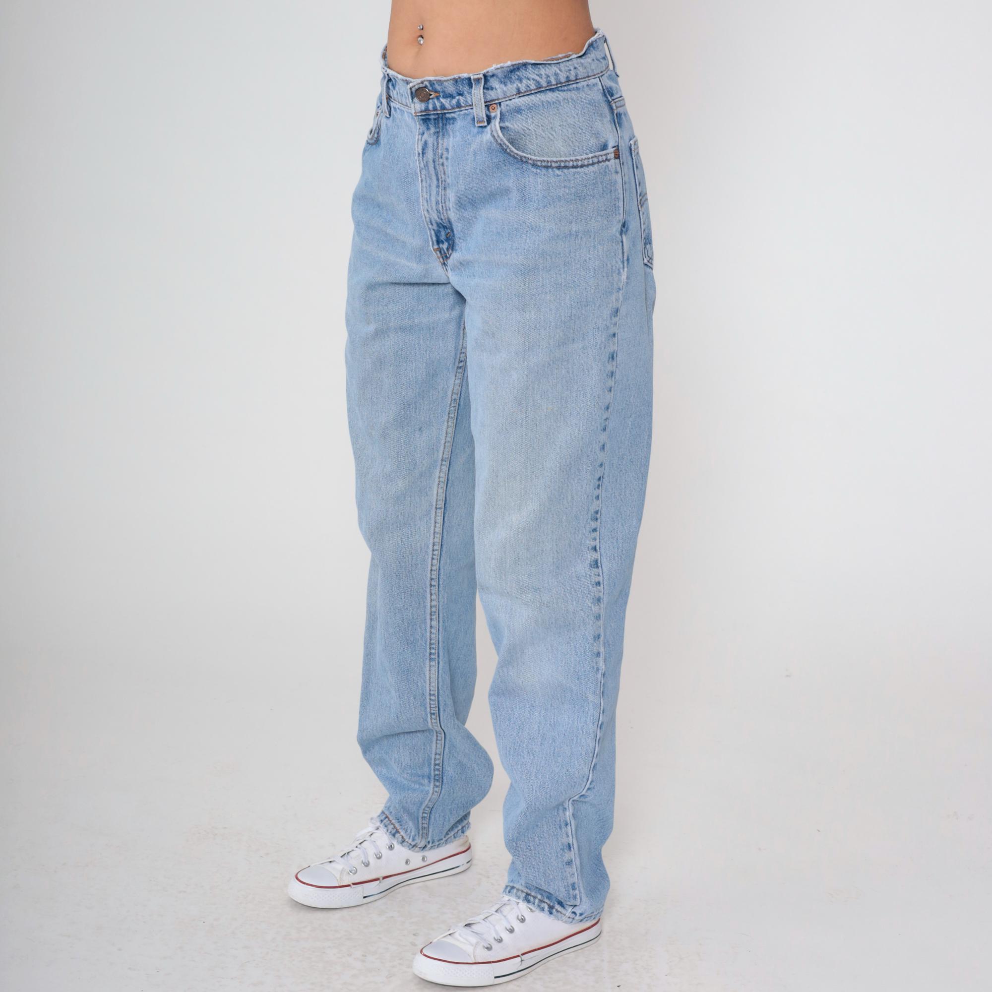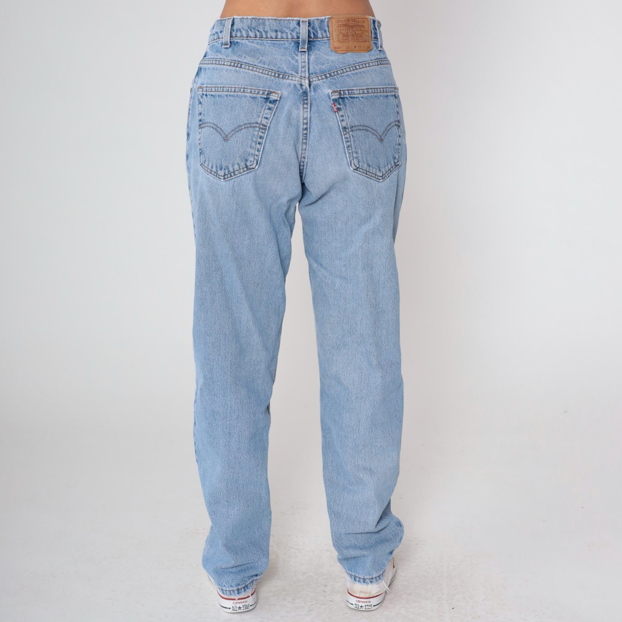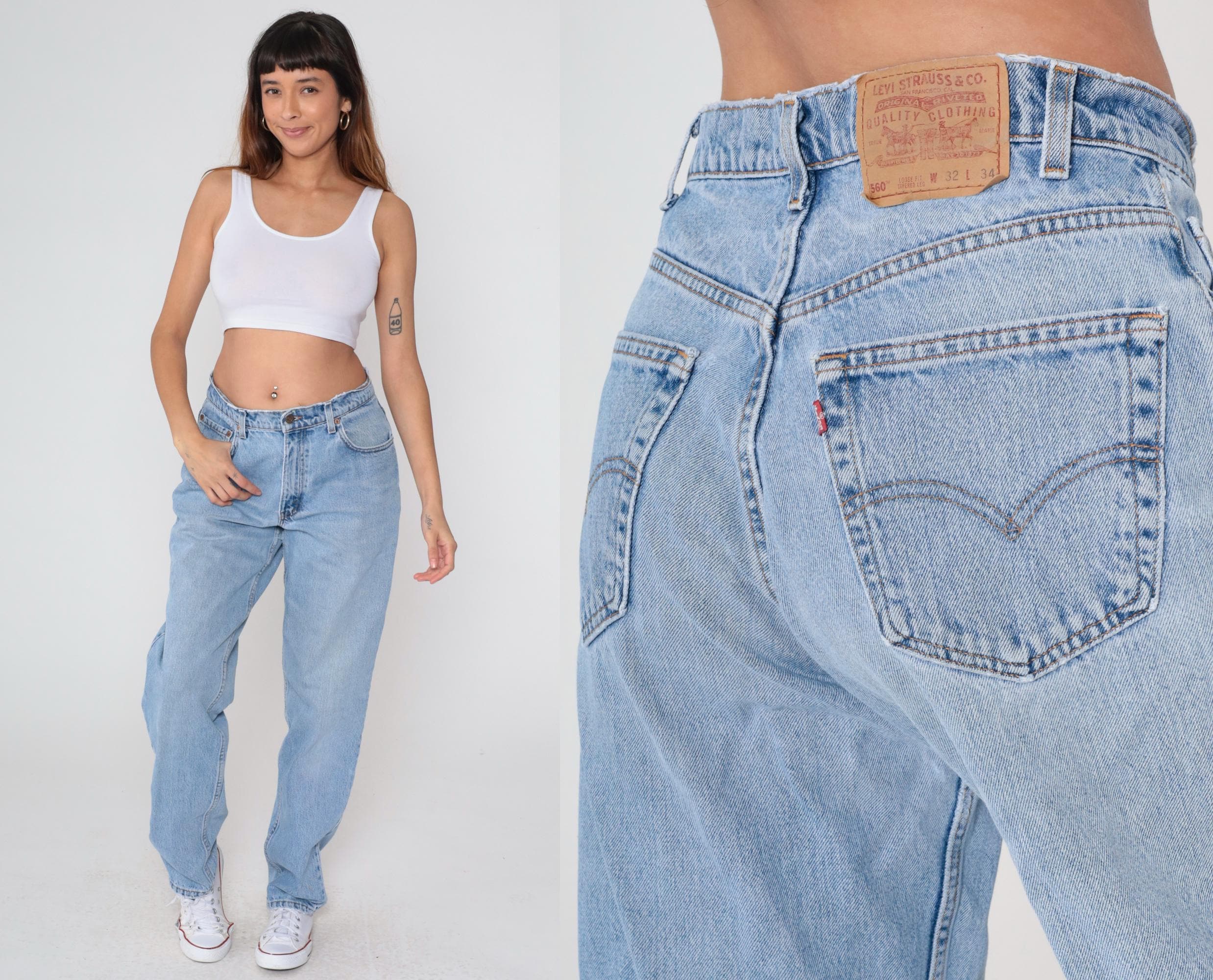 Vintage 80s jeans by Levis 560 in blue denim with a high waist and a mom fit. Five pocket design.