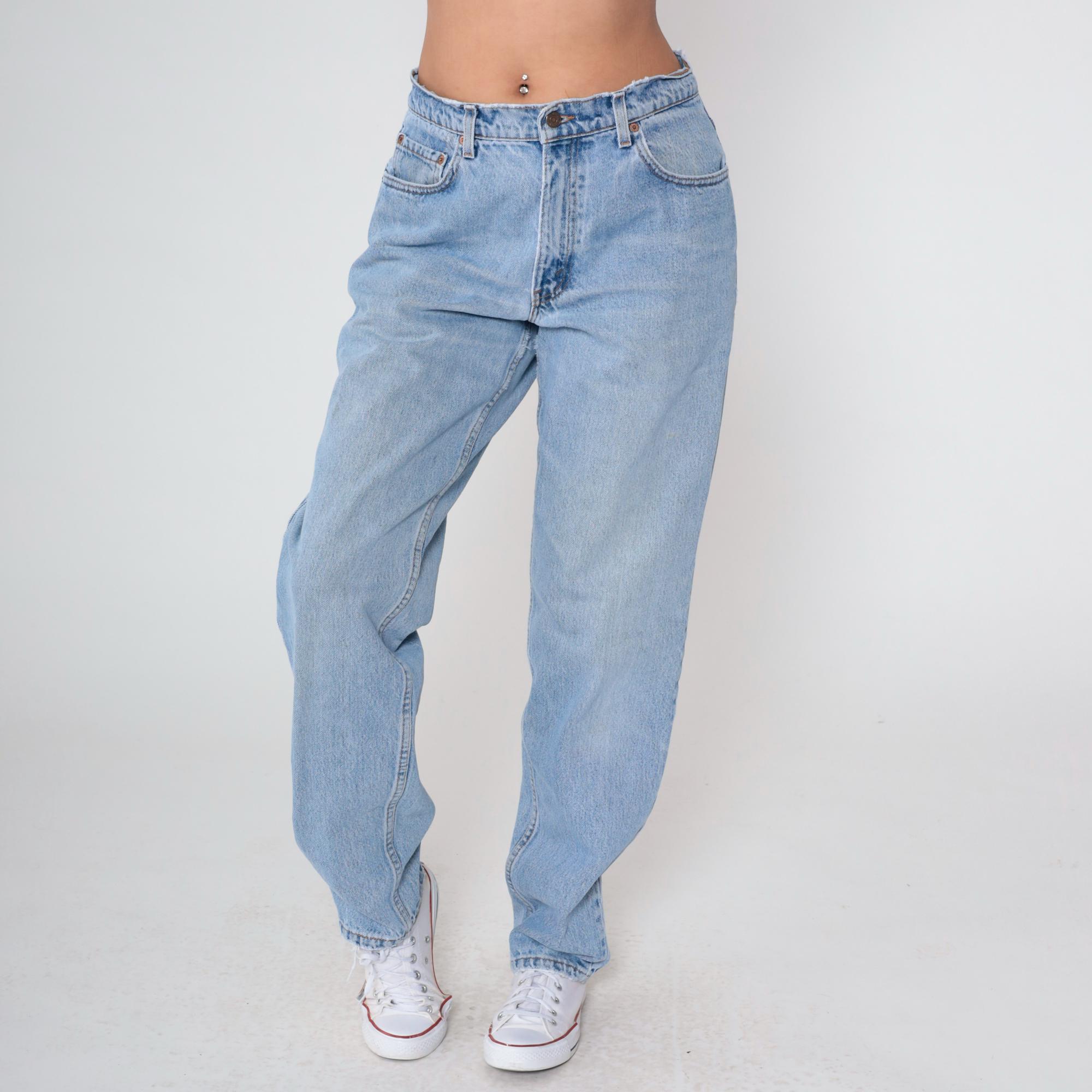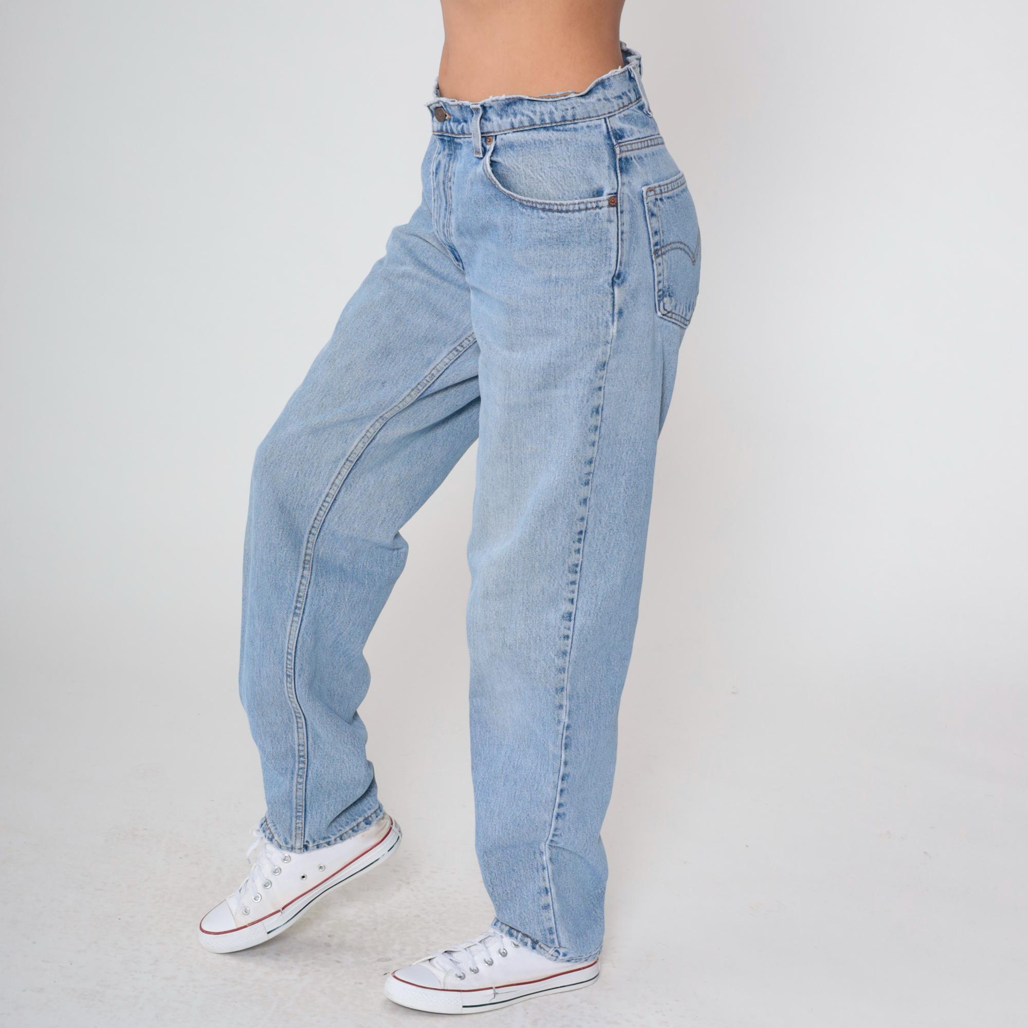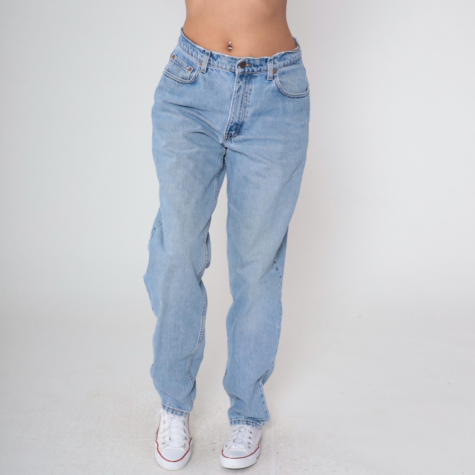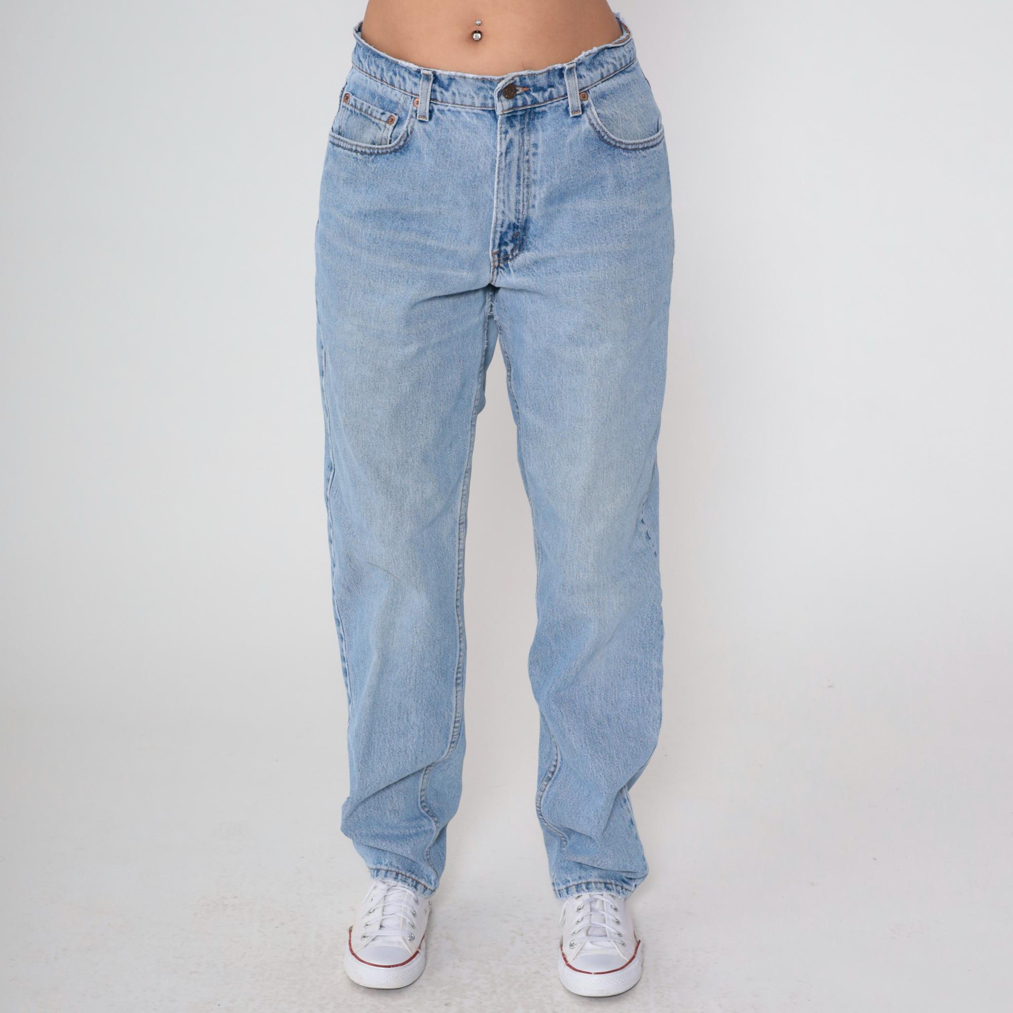 Vintage 80s jeans by Levis 560 in blue denim with a high waist and a mom fit. Five pocket design.