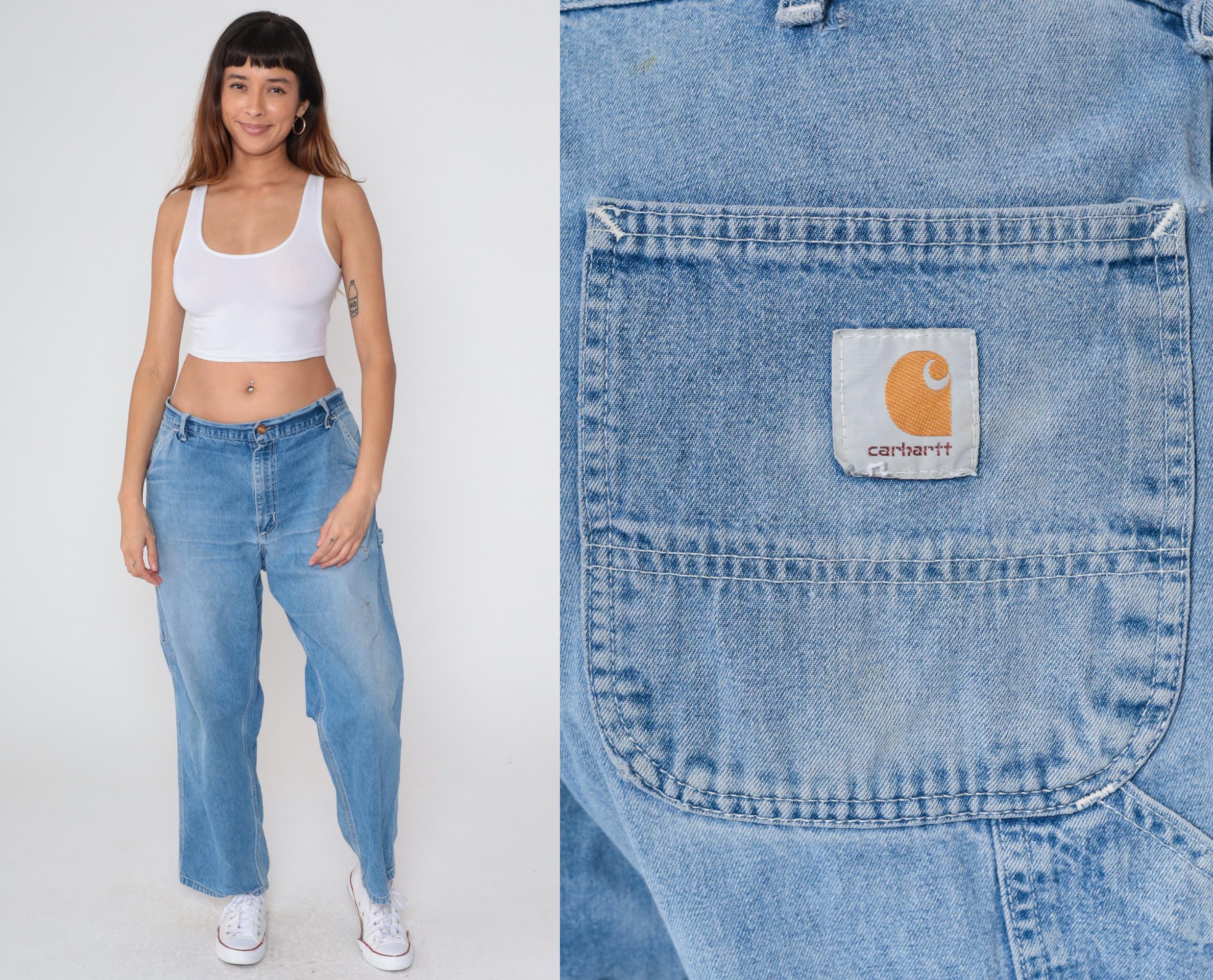 Vintage 90s jeans by Carhartt with a relaxed fit. Distressed with wear and some small holes.