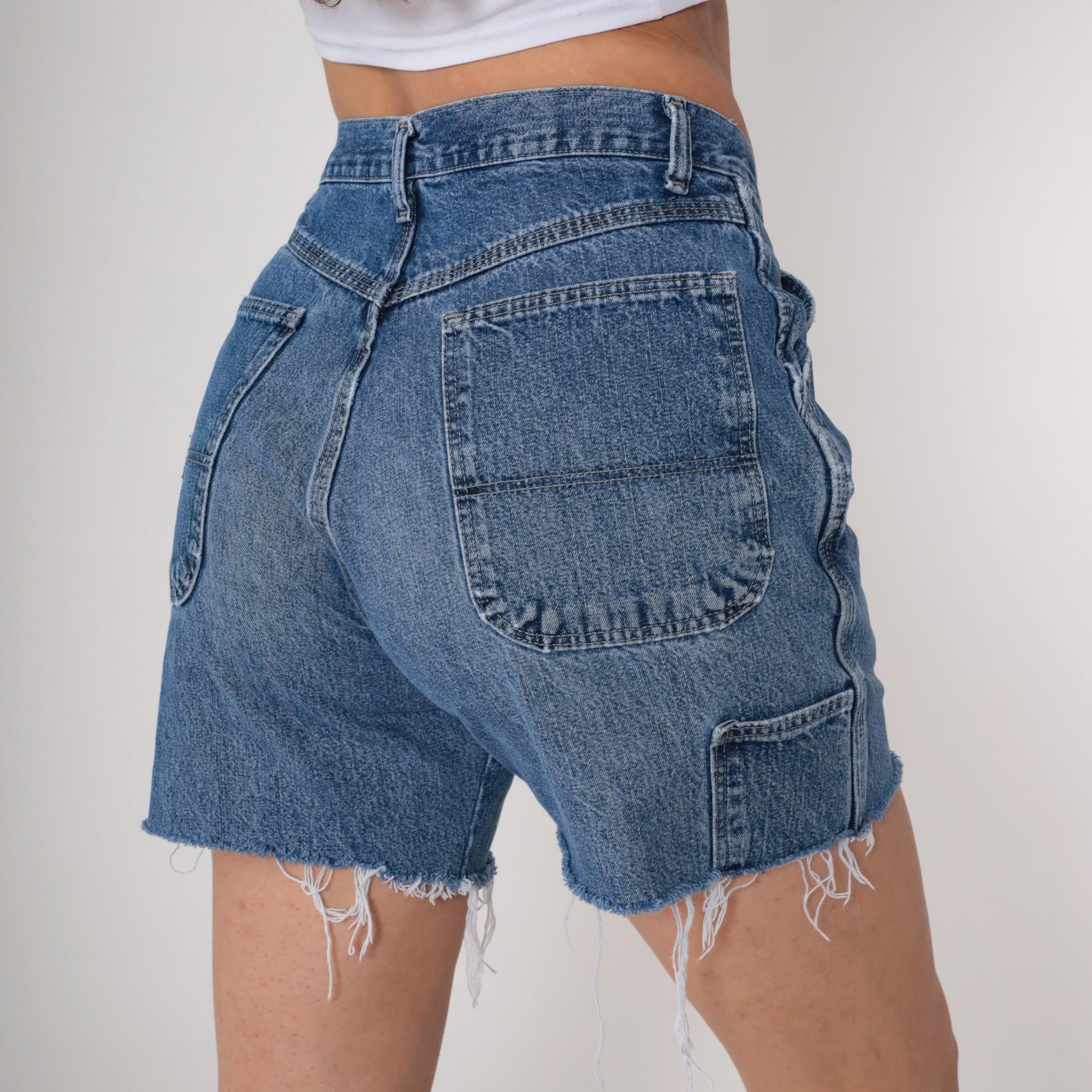 Vintage 90s denim shorts by wrangler with a high waist and cargo pockets.