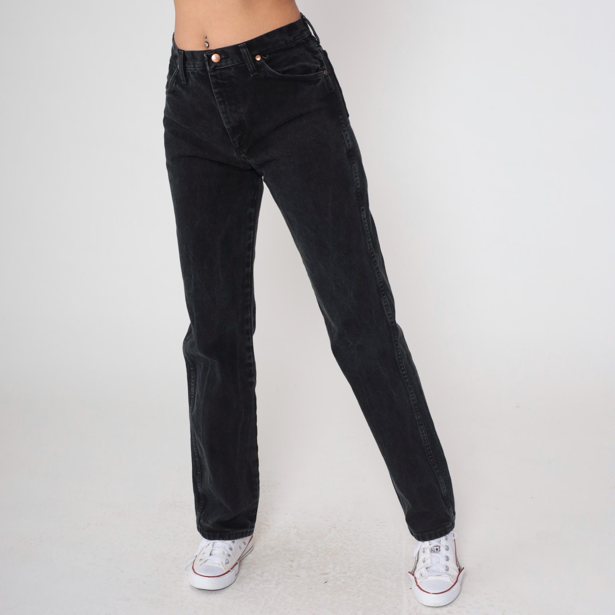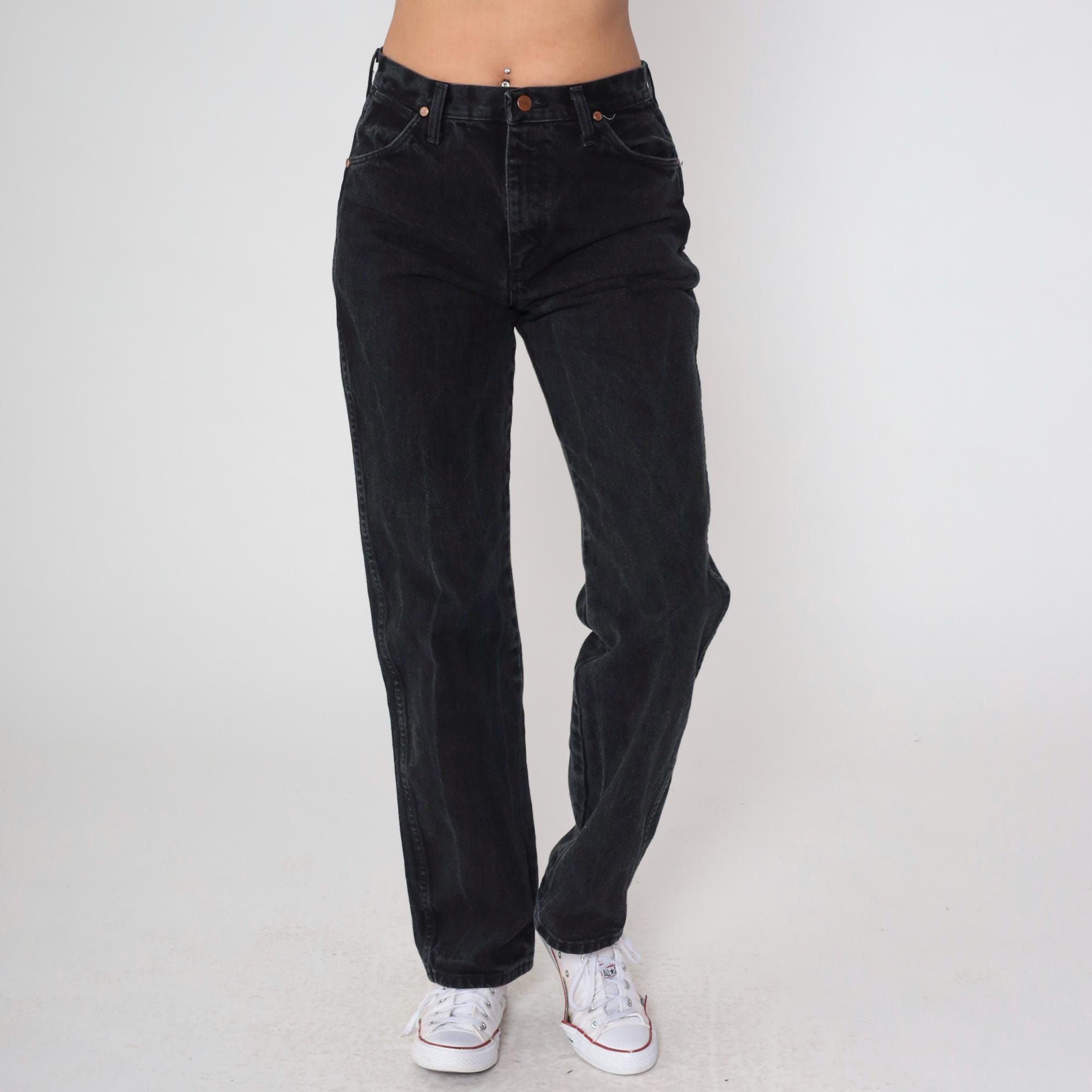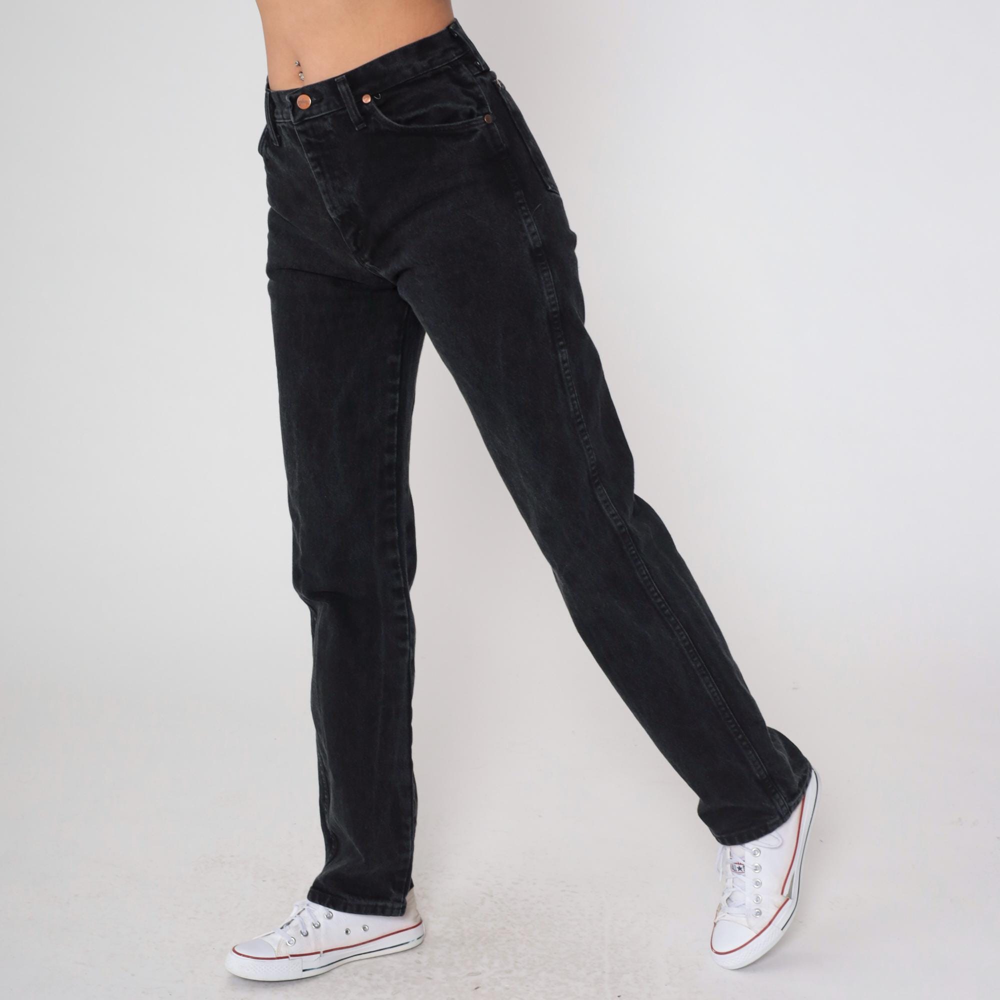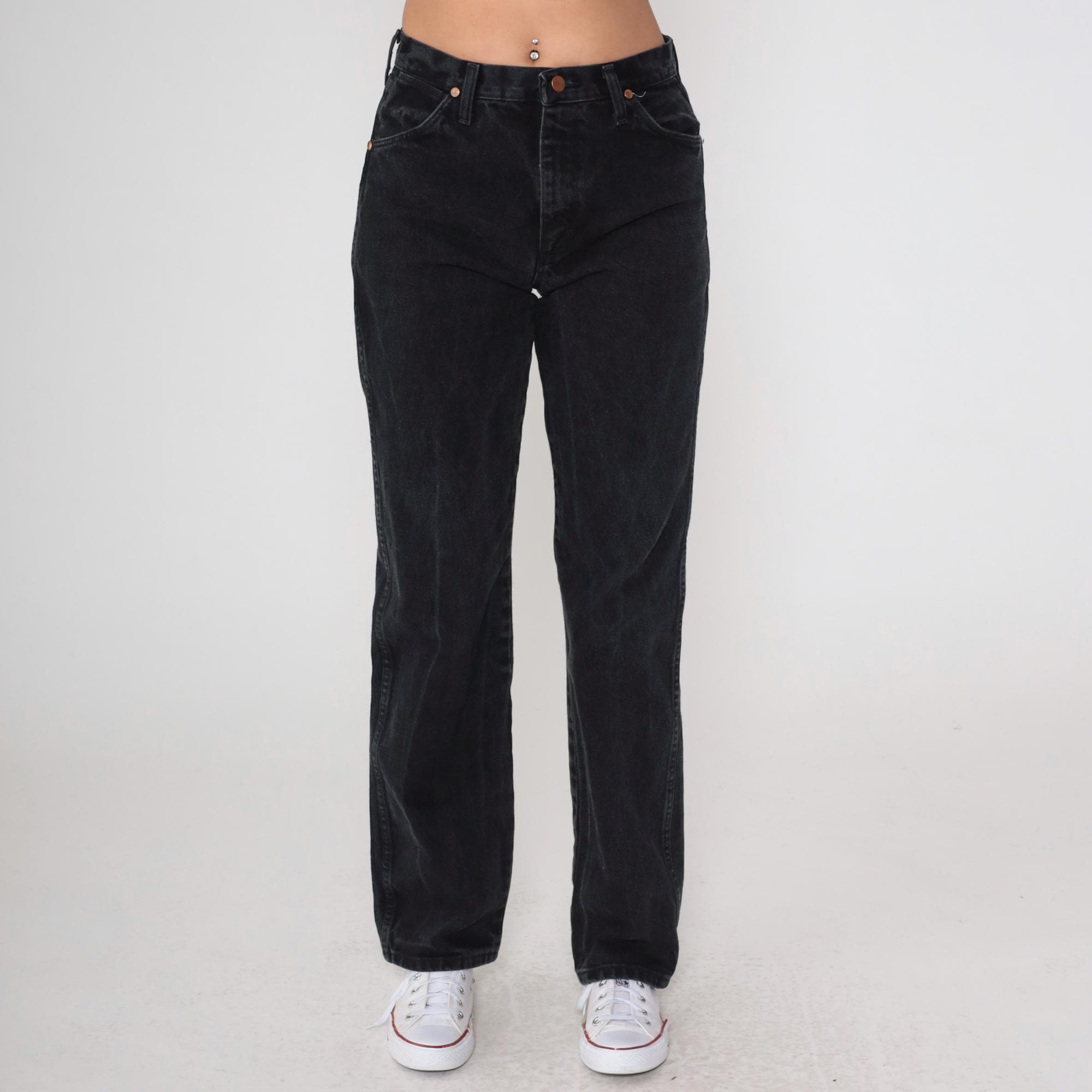 Vintage 90s jeans by Wrangler in black denim with an high rise waist and a straight leg.