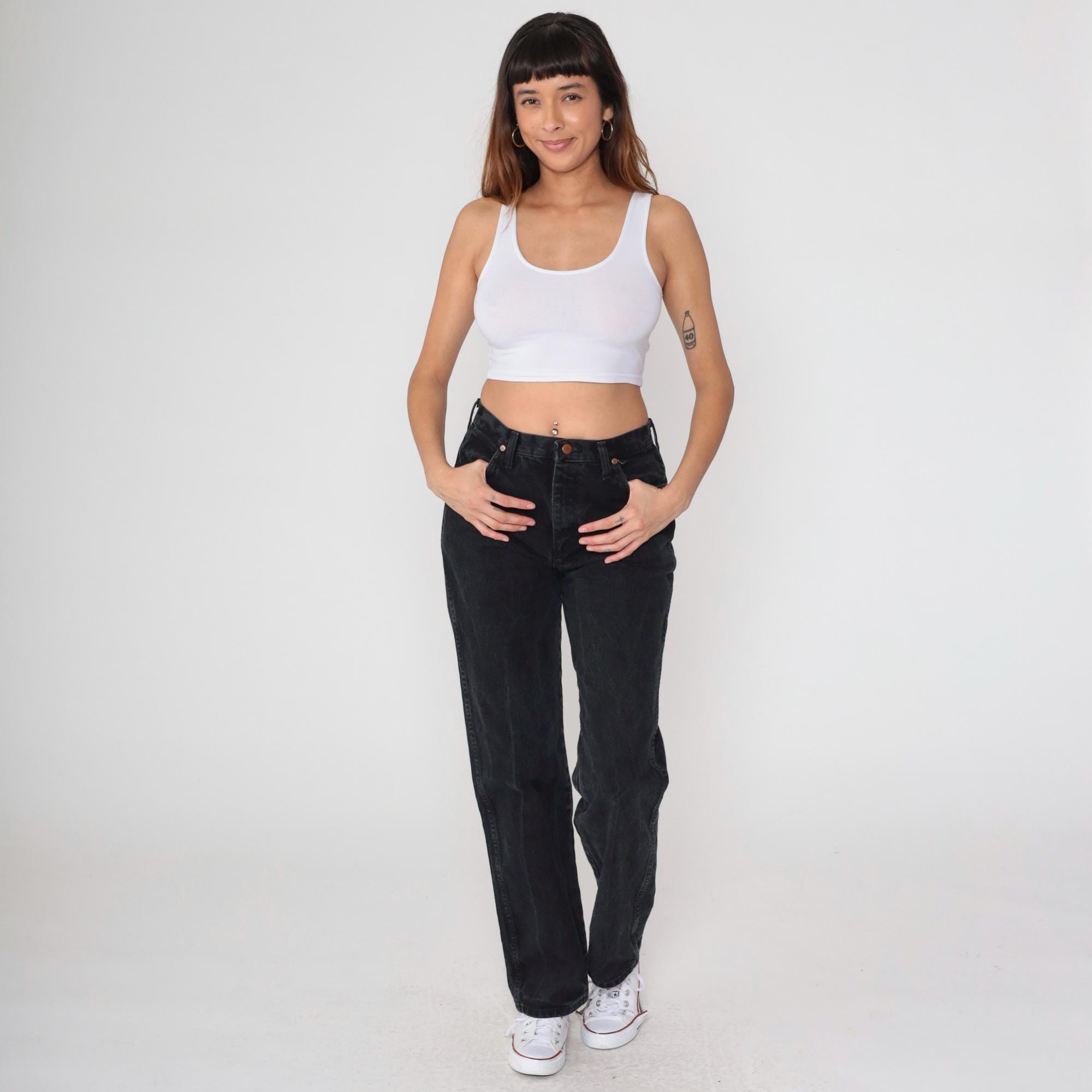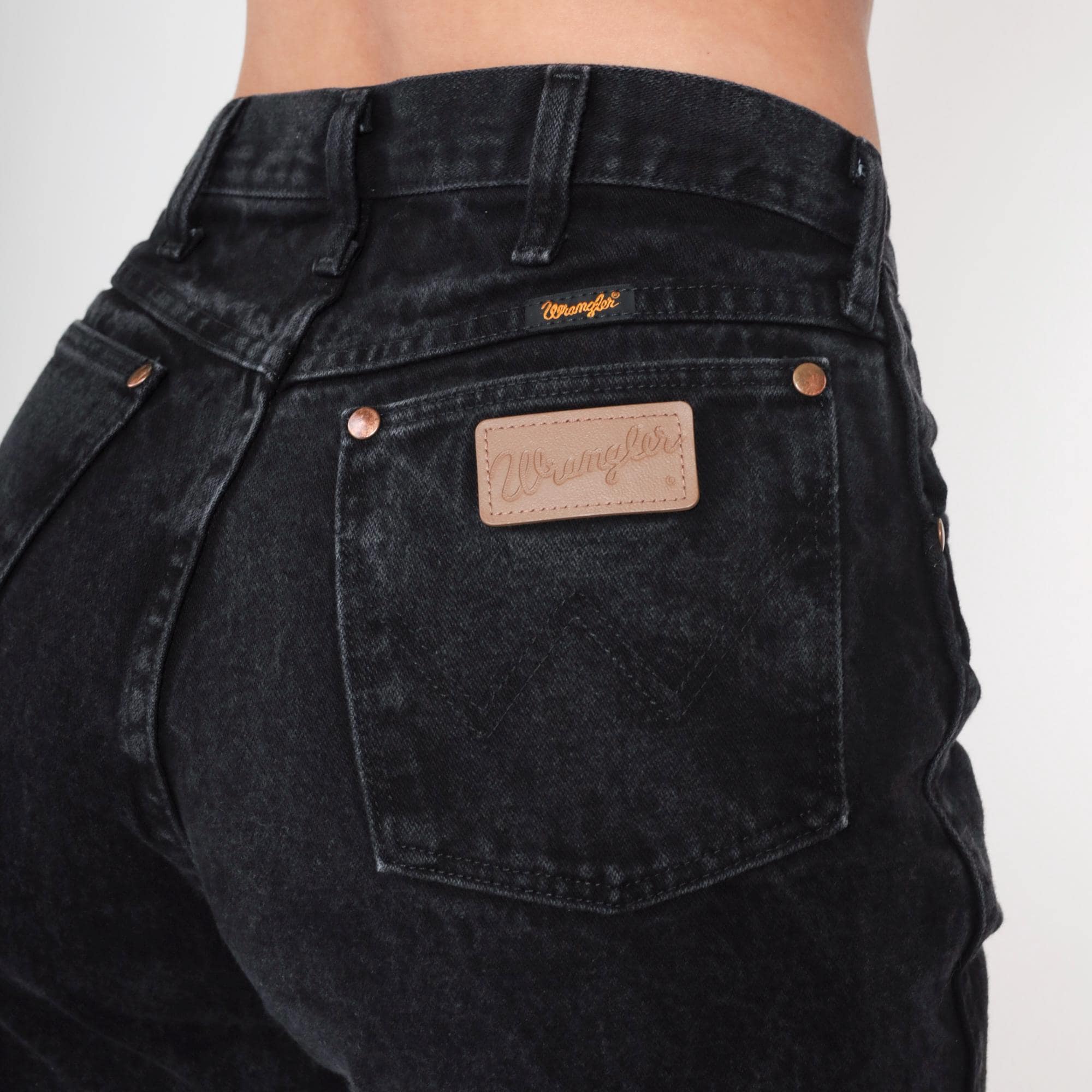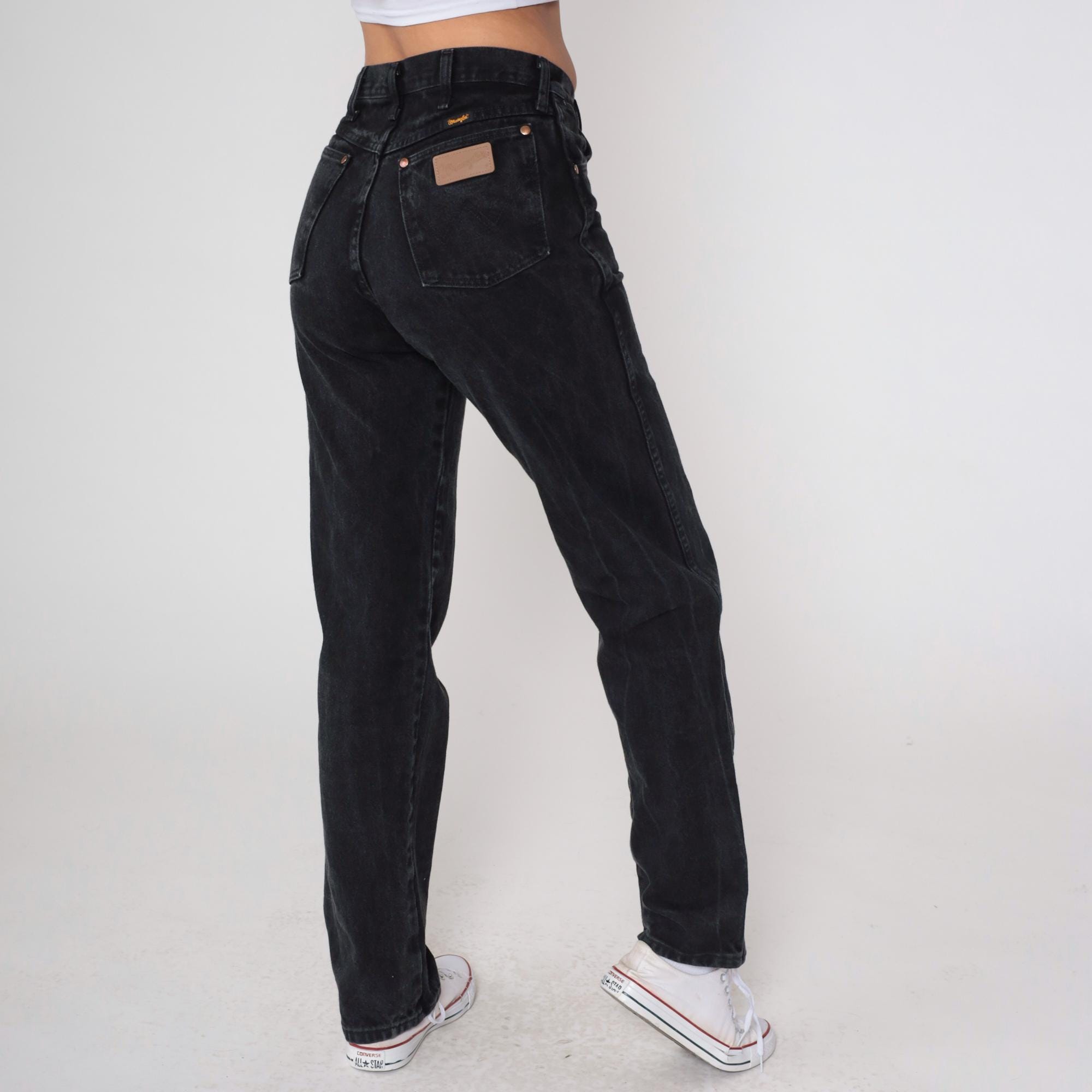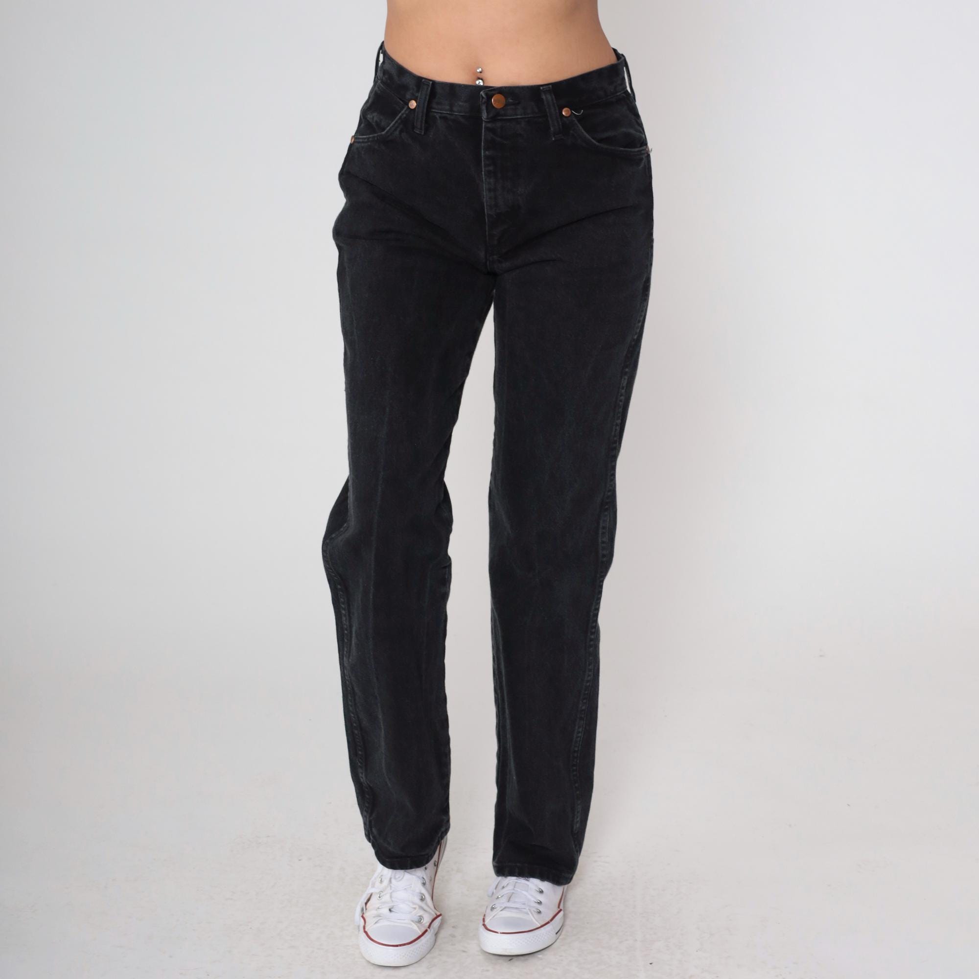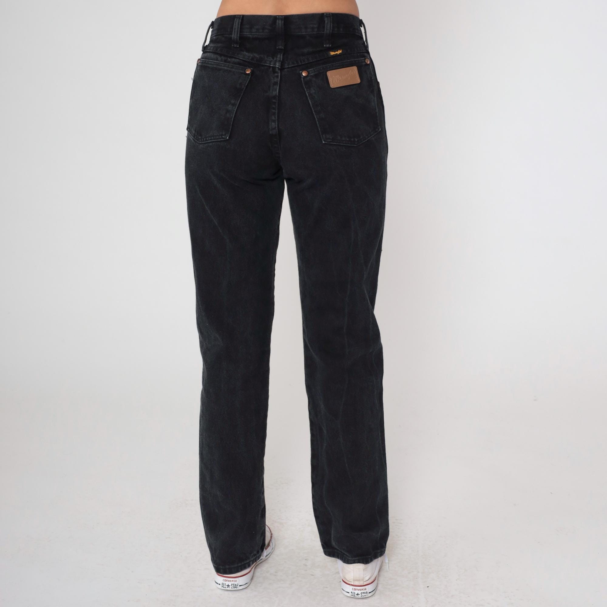 Vintage 90s jeans by Wrangler in black denim with an high rise waist and a straight leg.