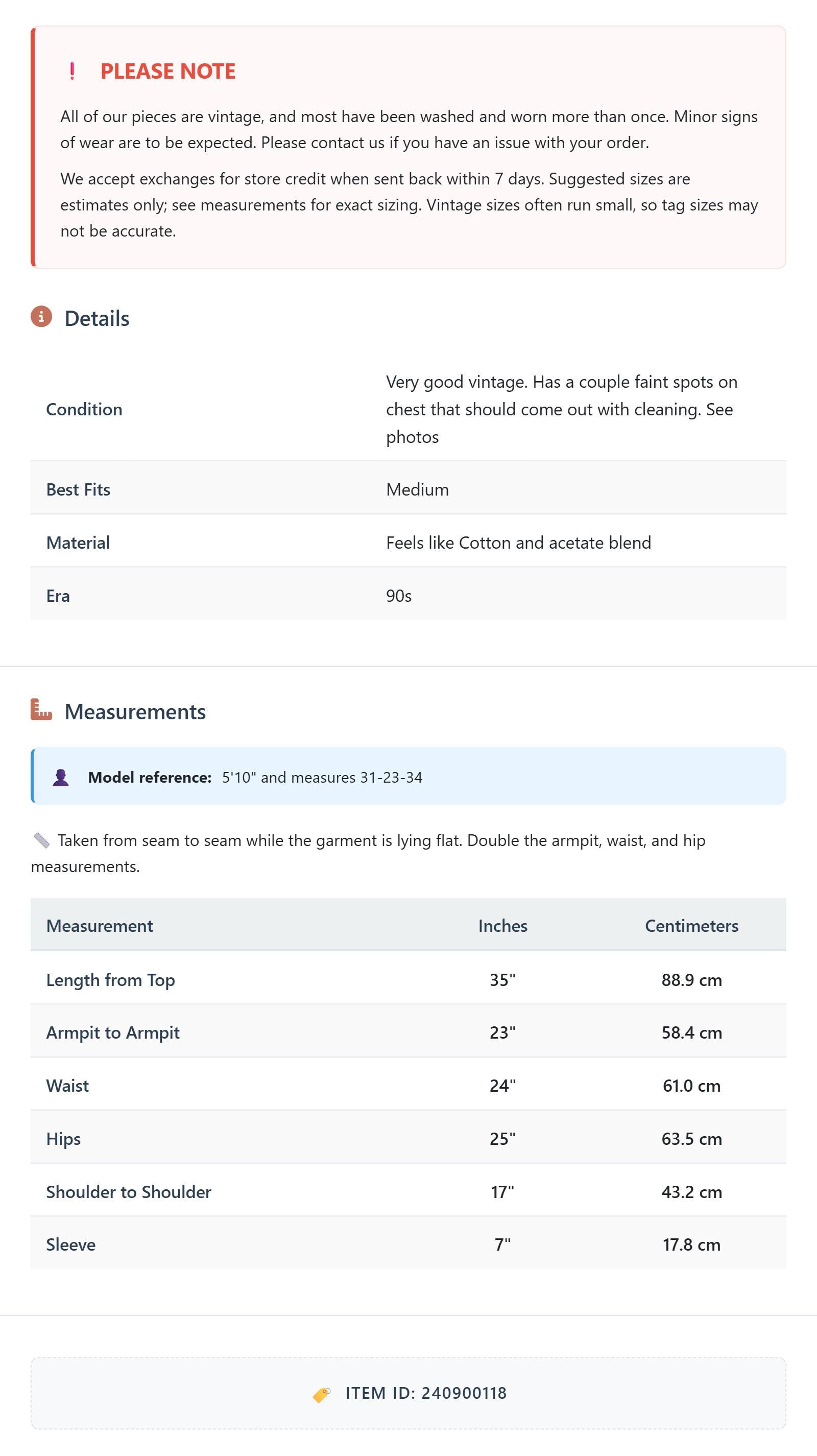 Suggested sizes are estimates only; see measurements for exact sizing. Vintage sizes often run small, so tag sizes may not be accurate.