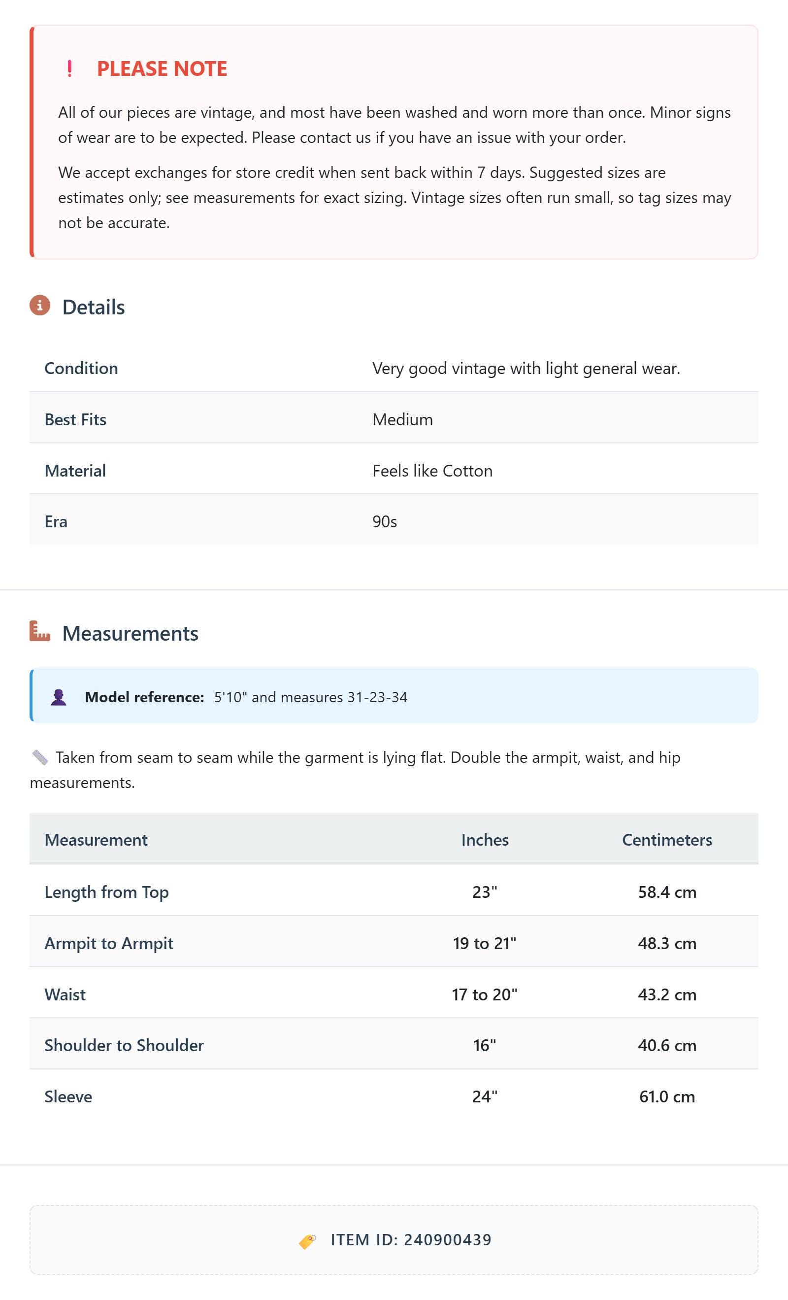 Suggested sizes are estimates only; see measurements for exact sizing. Vintage sizes often run small, so tag sizes may not be accurate.