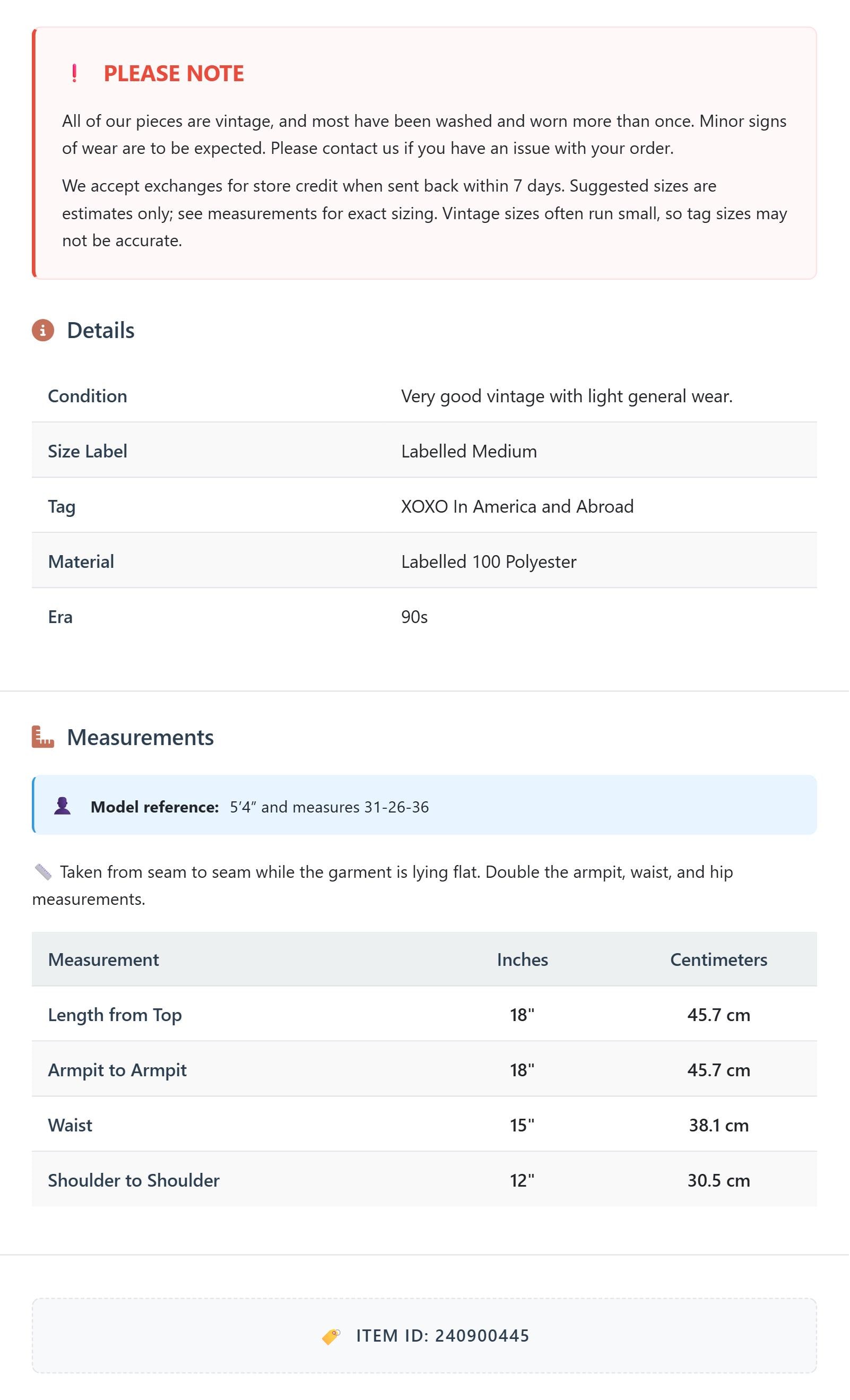 Suggested sizes are estimates only; see measurements for exact sizing. Vintage sizes often run small, so tag sizes may not be accurate.
