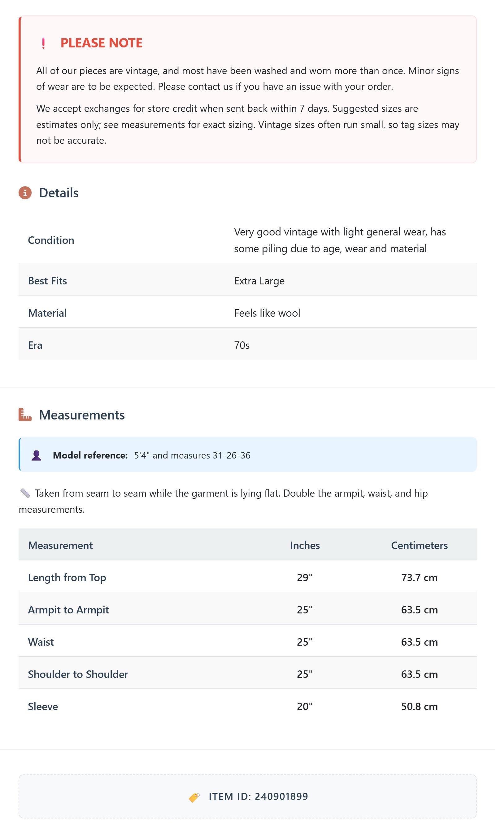 Suggested sizes are estimates only; see measurements for exact sizing. Vintage sizes often run small, so tag sizes may not be accurate.