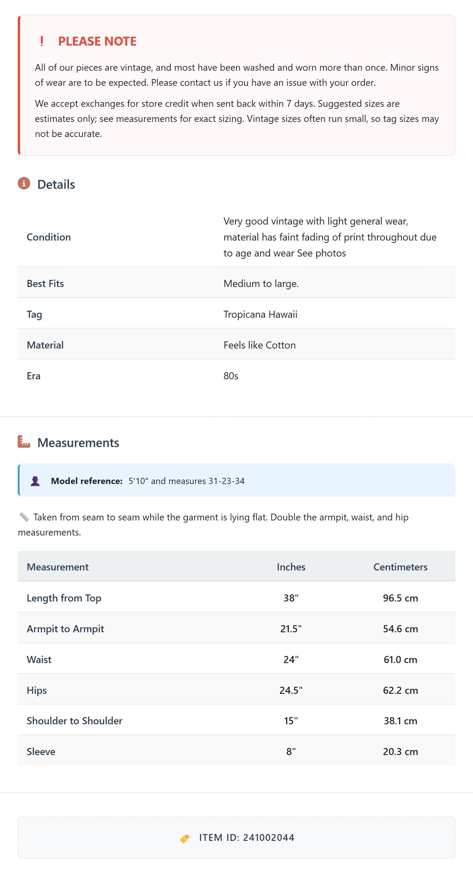 Suggested sizes are estimates only; see measurements for exact sizing. Vintage sizes often run small, so tag sizes may not be accurate.