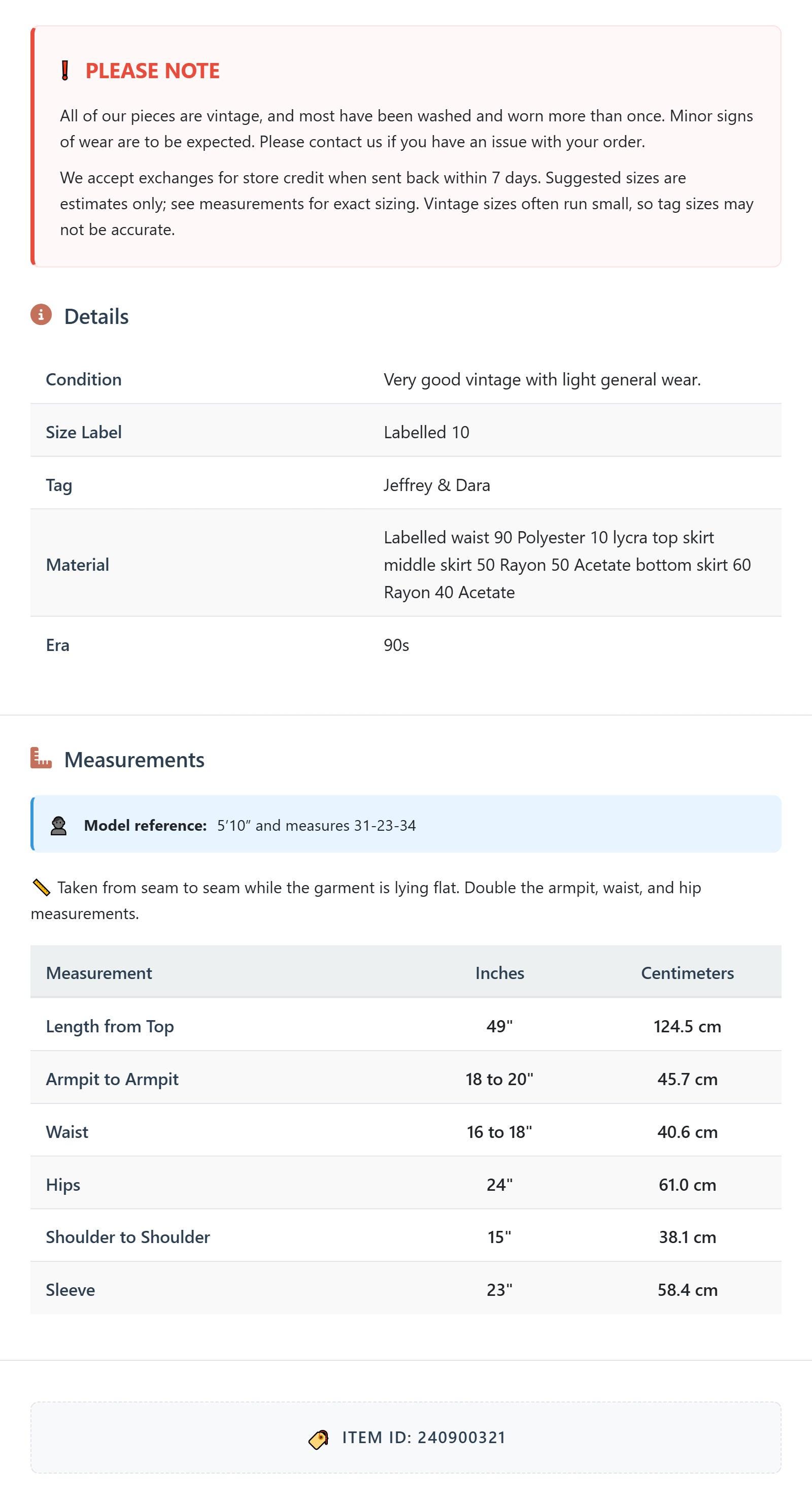Suggested sizes are estimates only; see measurements for exact sizing. Vintage sizes often run small, so tag sizes may not be accurate.