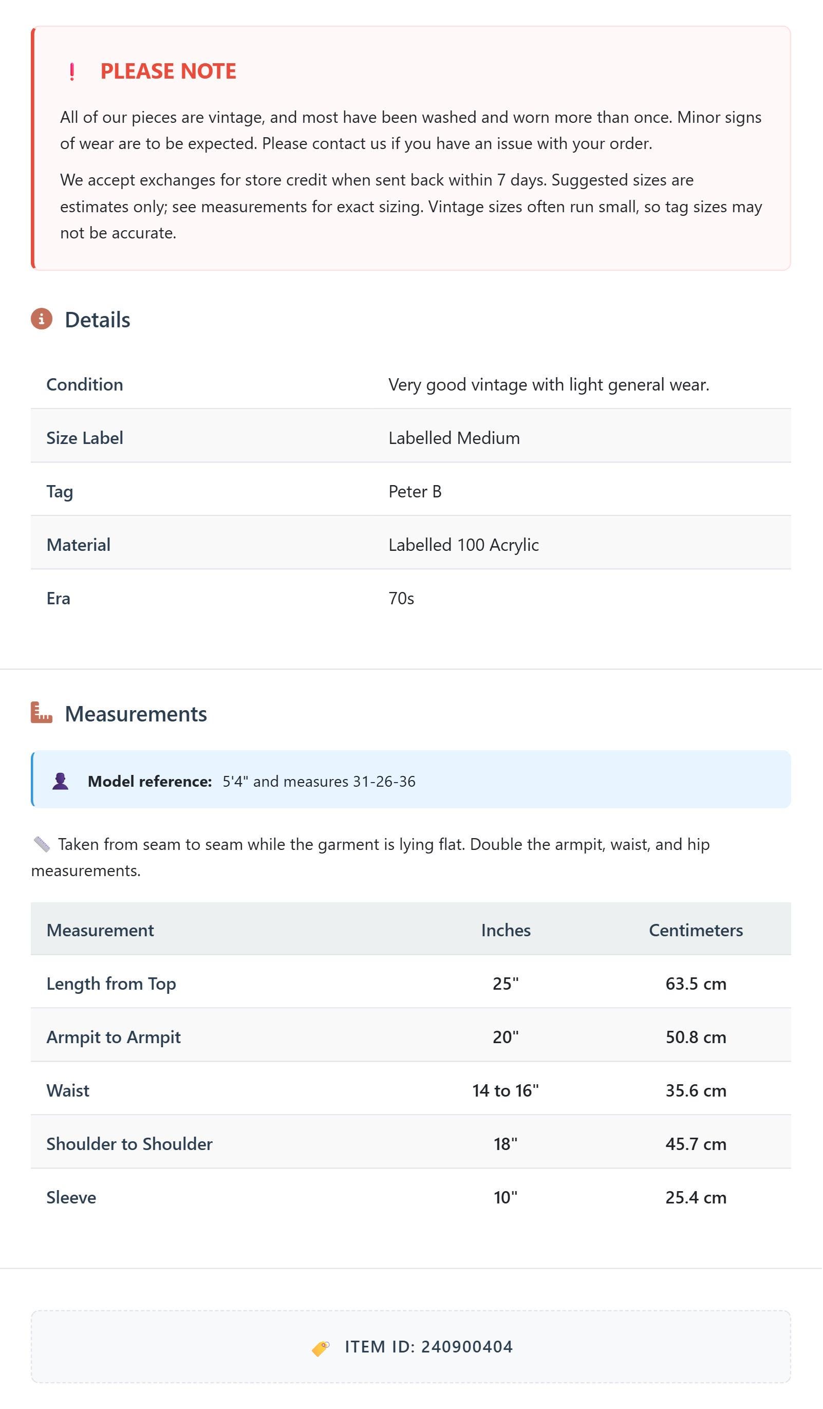 Suggested sizes are estimates only; see measurements for exact sizing. Vintage sizes often run small, so tag sizes may not be accurate.