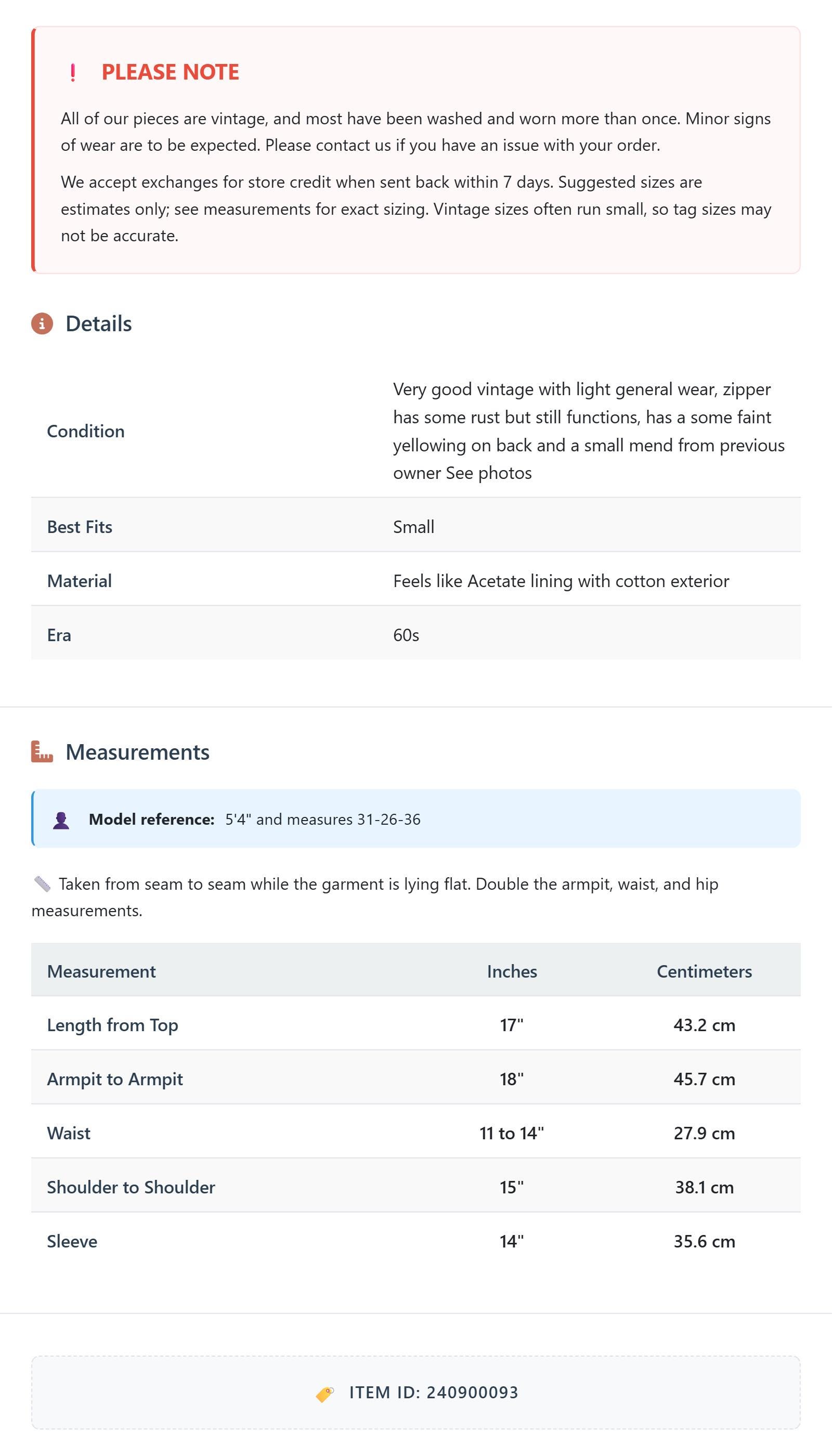 Suggested sizes are estimates only; see measurements for exact sizing. Vintage sizes often run small, so tag sizes may not be accurate.