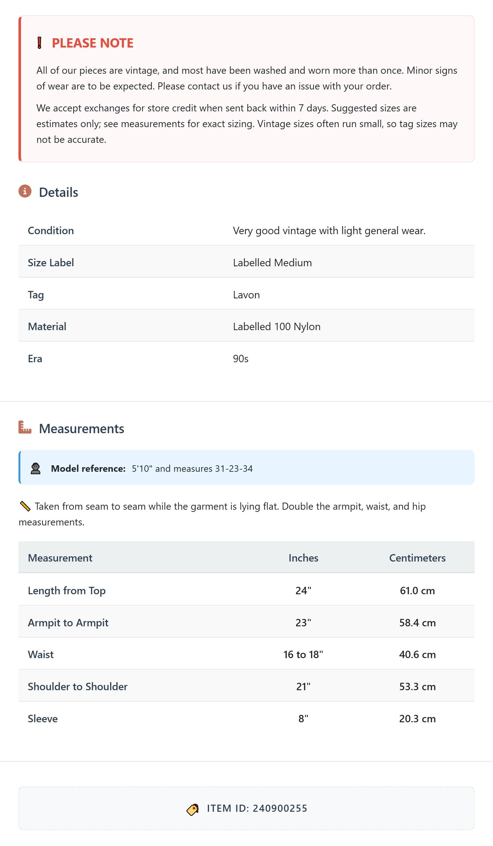 Suggested sizes are estimates only; see measurements for exact sizing. Vintage sizes often run small, so tag sizes may not be accurate.