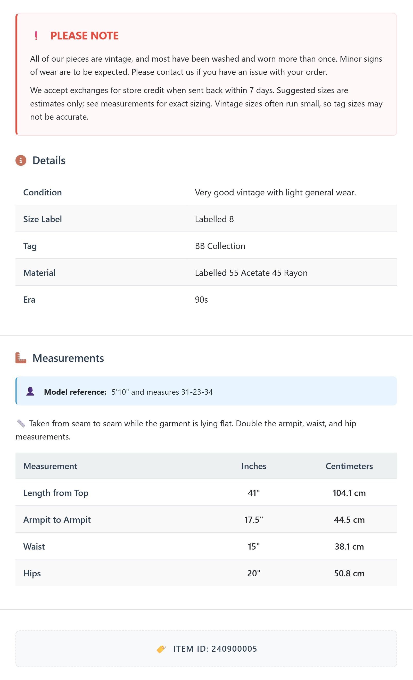 Suggested sizes are estimates only; see measurements for exact sizing. Vintage sizes often run small, so tag sizes may not be accurate.