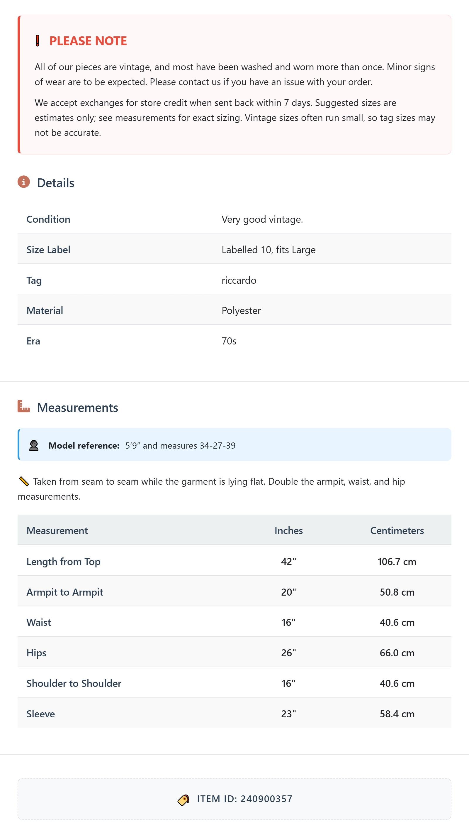 Suggested sizes are estimates only; see measurements for exact sizing. Vintage sizes often run small, so tag sizes may not be accurate.