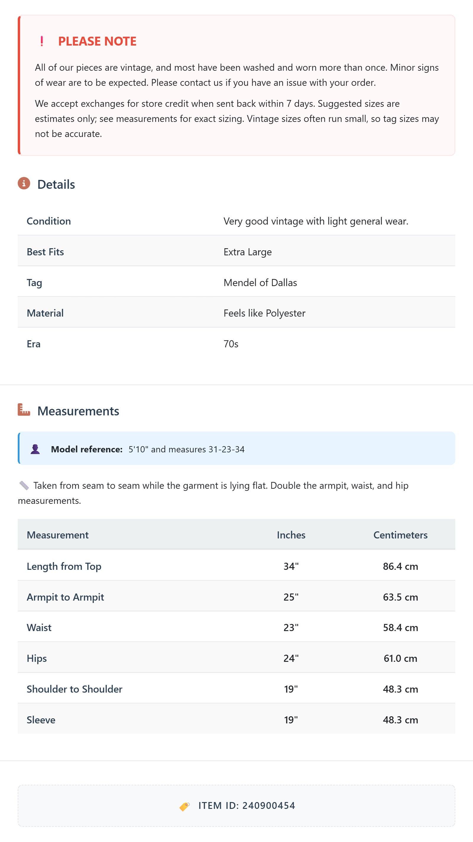 Suggested sizes are estimates only; see measurements for exact sizing. Vintage sizes often run small, so tag sizes may not be accurate.