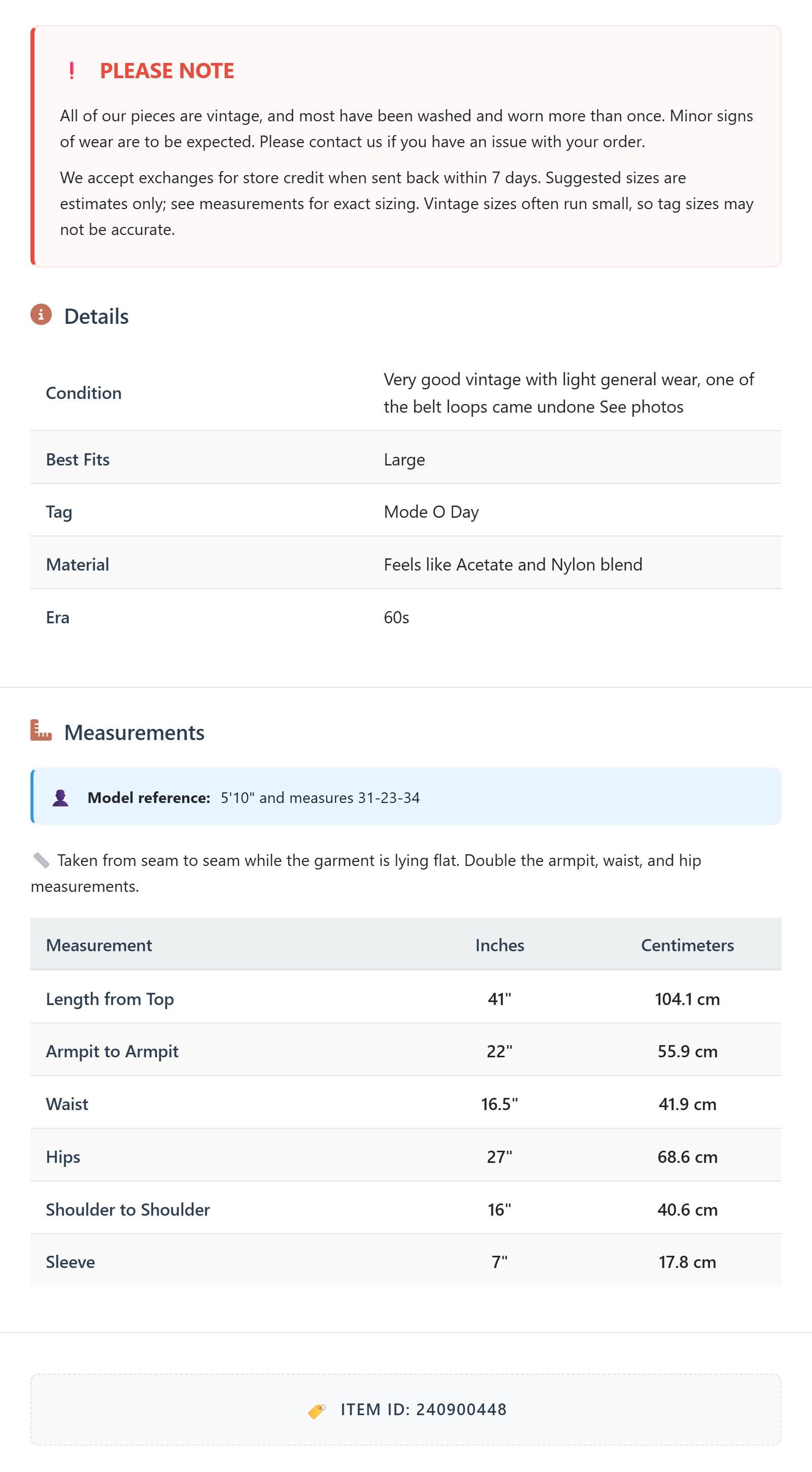 Suggested sizes are estimates only; see measurements for exact sizing. Vintage sizes often run small, so tag sizes may not be accurate.