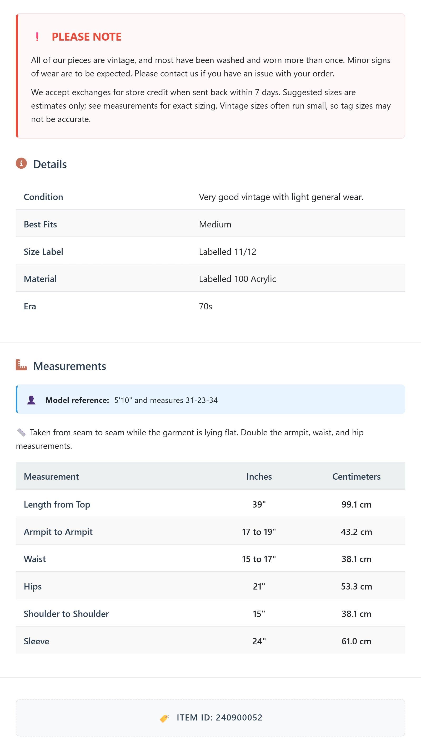 Suggested sizes are estimates only; see measurements for exact sizing. Vintage sizes often run small, so tag sizes may not be accurate.