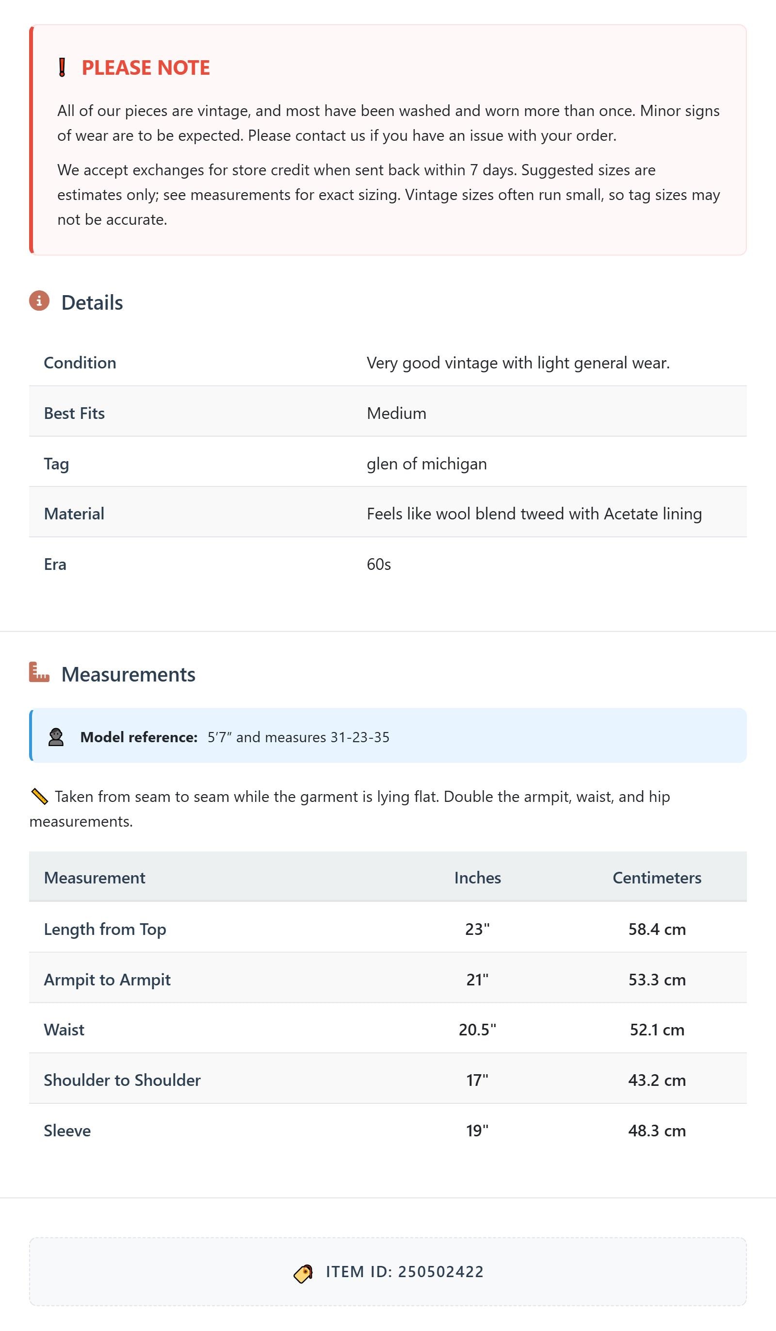 Suggested sizes are estimates only; see measurements for exact sizing. Vintage sizes often run small, so tag sizes may not be accurate.