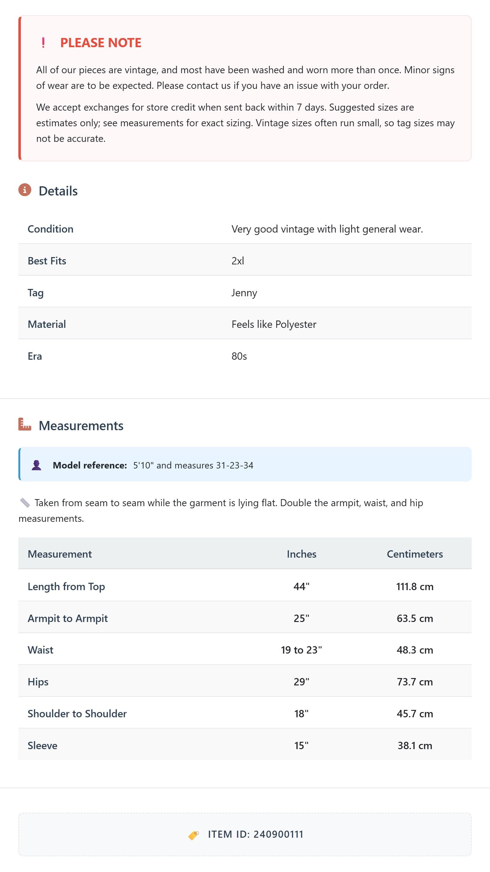Suggested sizes are estimates only; see measurements for exact sizing. Vintage sizes often run small, so tag sizes may not be accurate.