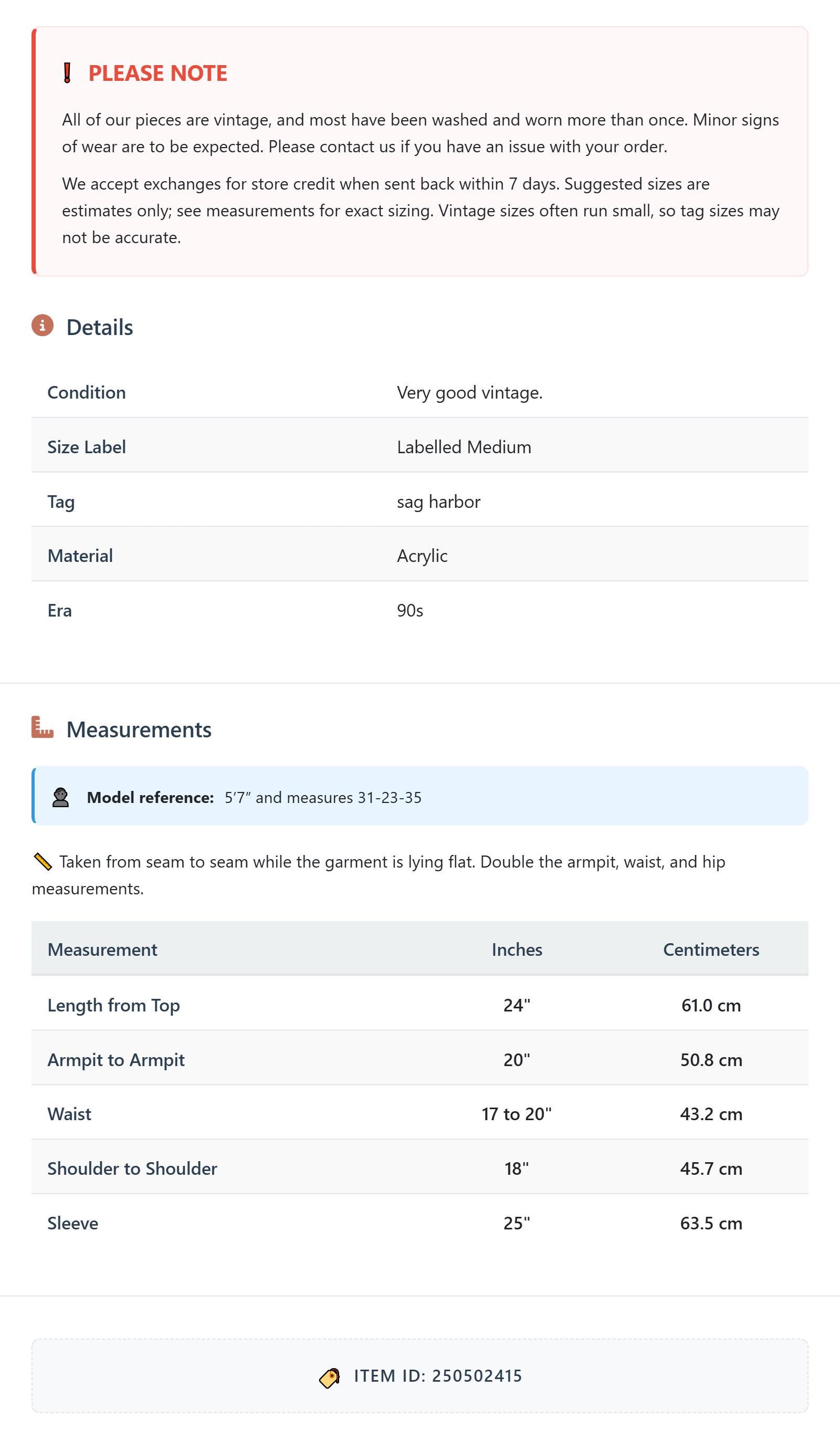 Suggested sizes are estimates only; see measurements for exact sizing. Vintage sizes often run small, so tag sizes may not be accurate.