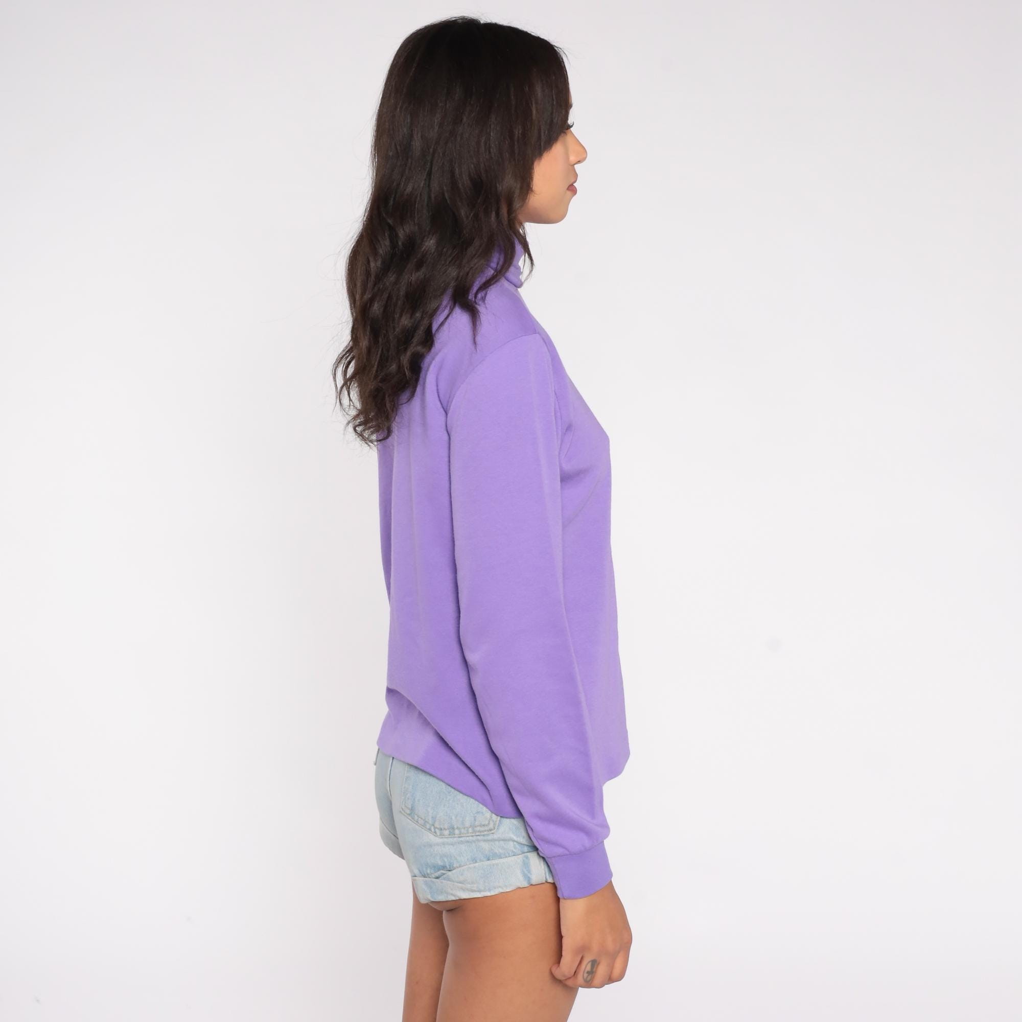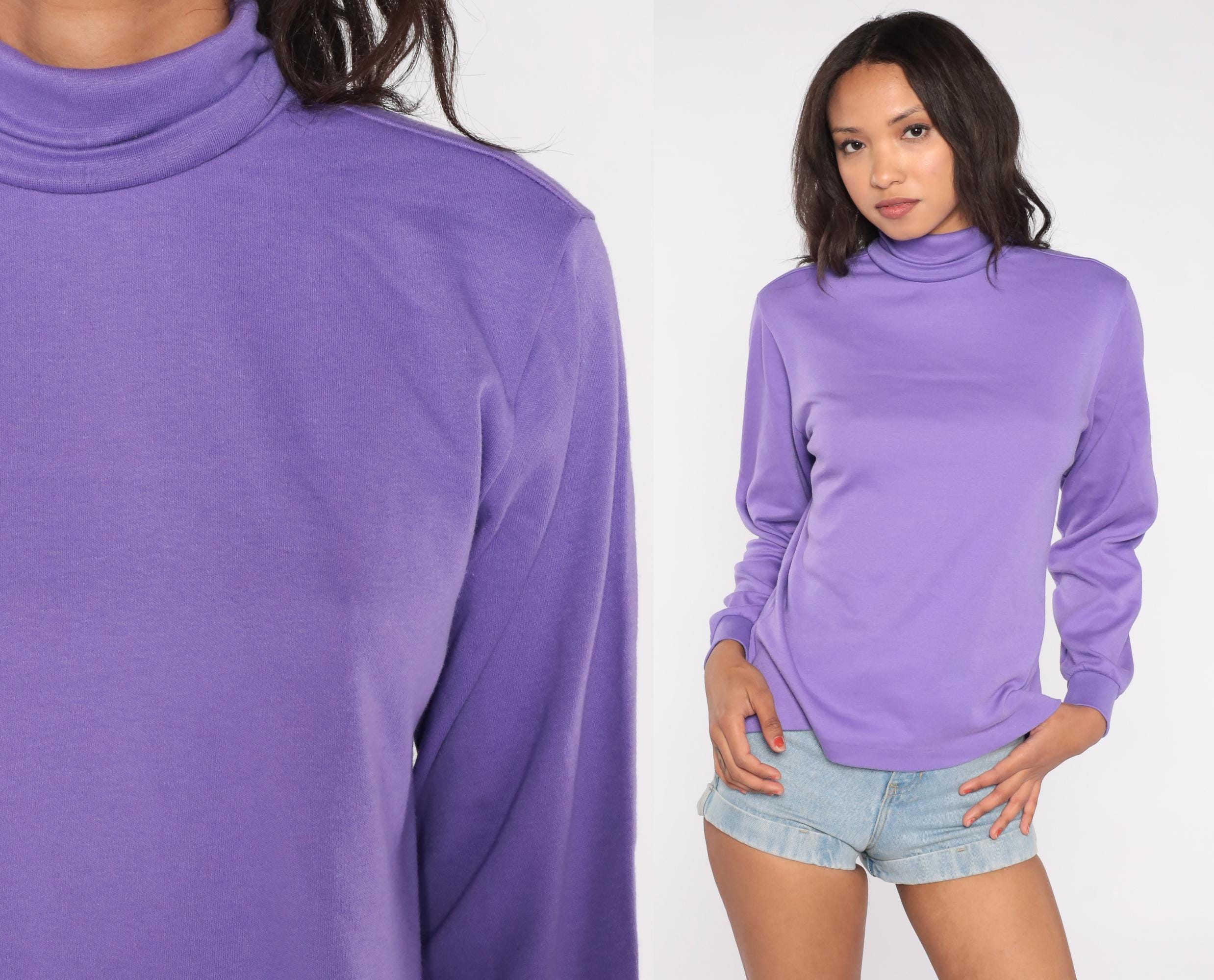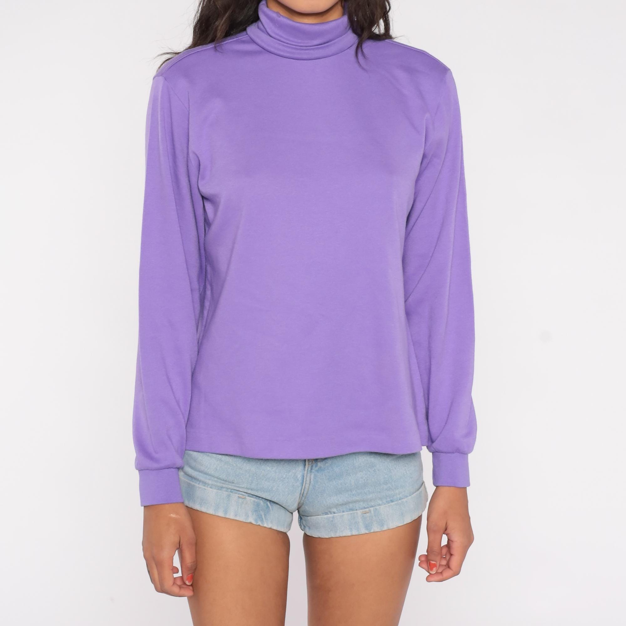 90s Land’s End turtleneck shirt in lavender cotton-poly blend knit. Features a mock neck collar, long sleeves, and a straight hem.