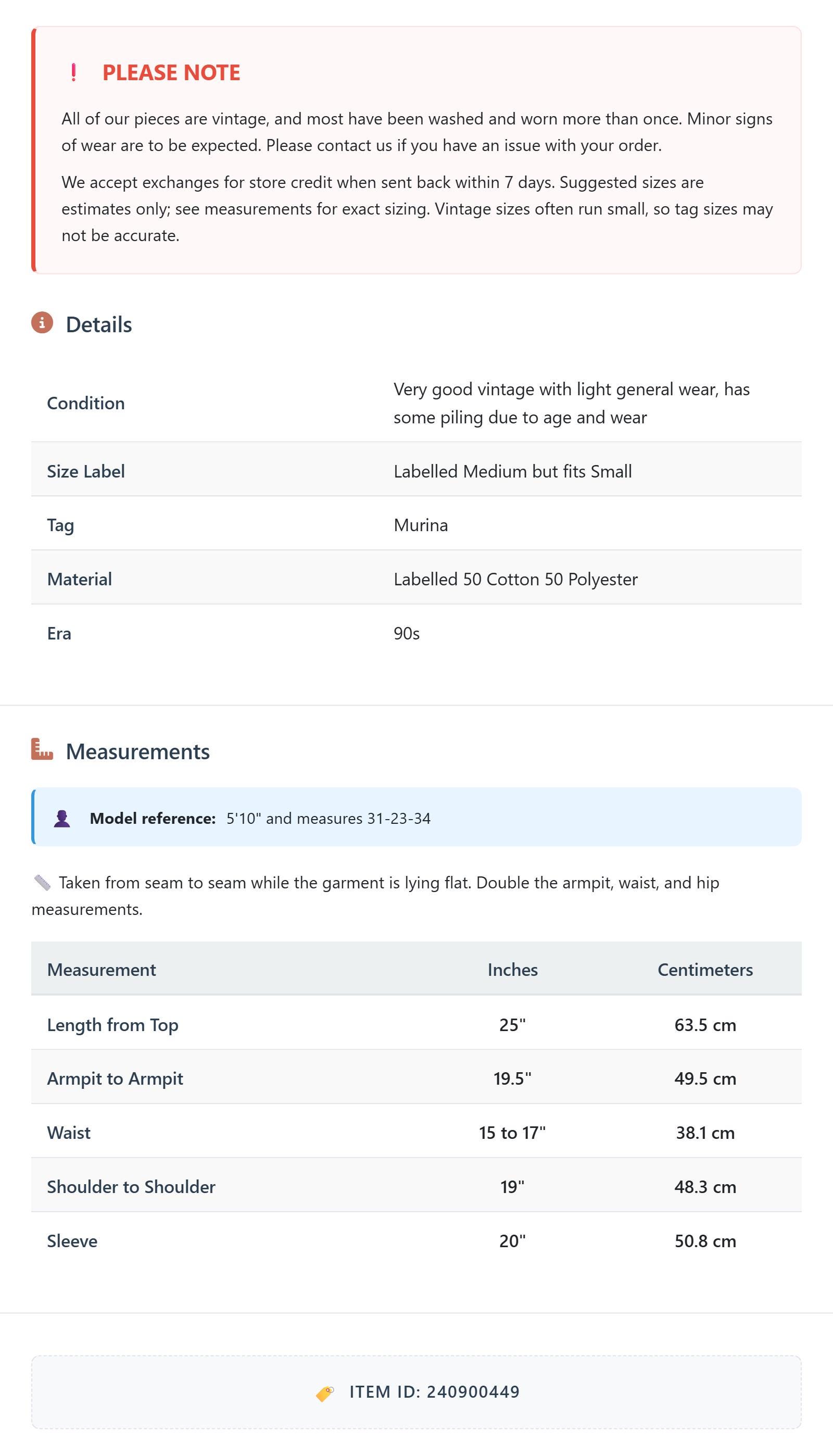 Suggested sizes are estimates only; see measurements for exact sizing. Vintage sizes often run small, so tag sizes may not be accurate.