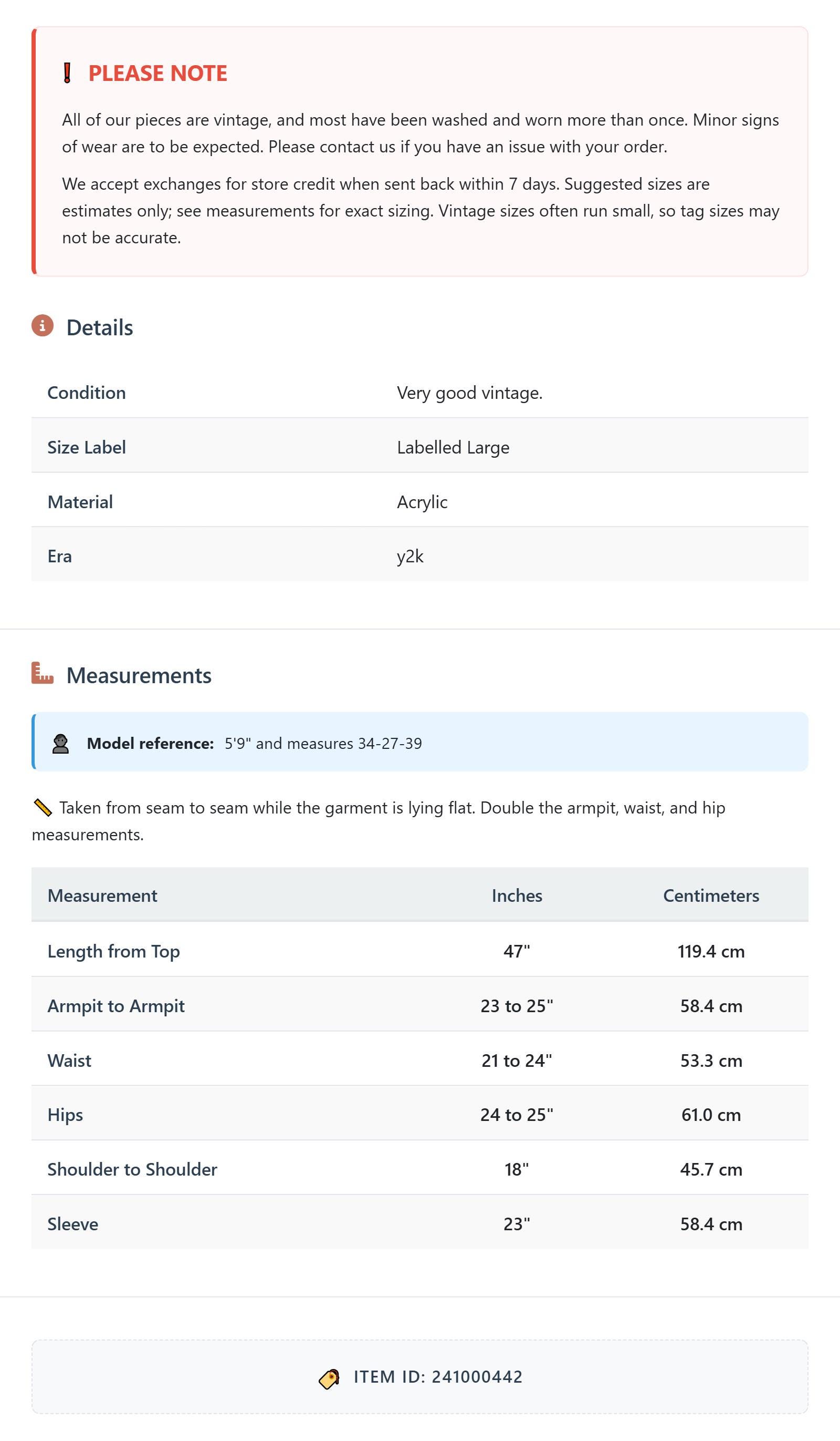 Suggested sizes are estimates only; see measurements for exact sizing. Vintage sizes often run small, so tag sizes may not be accurate.