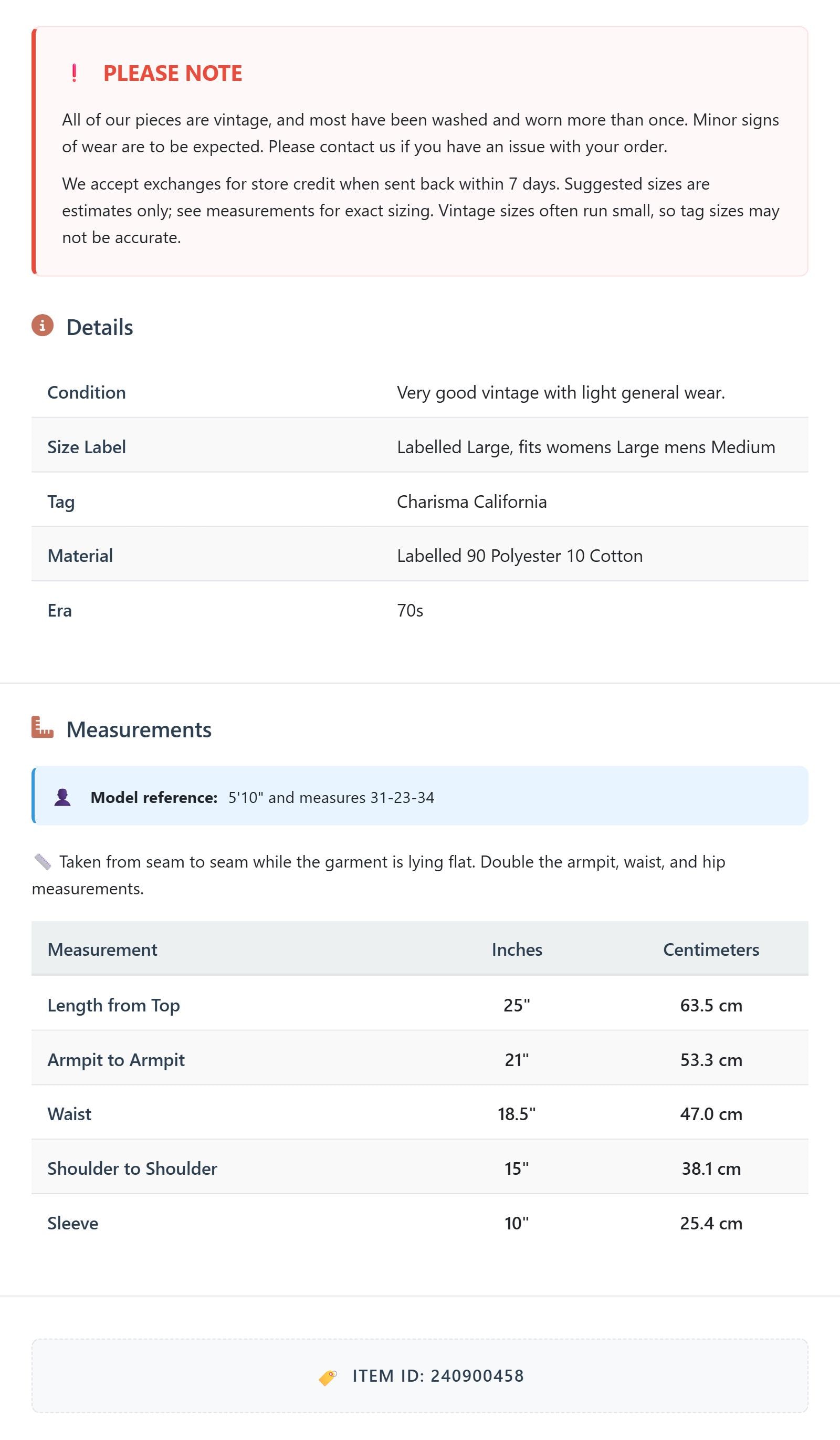 Suggested sizes are estimates only; see measurements for exact sizing. Vintage sizes often run small, so tag sizes may not be accurate.