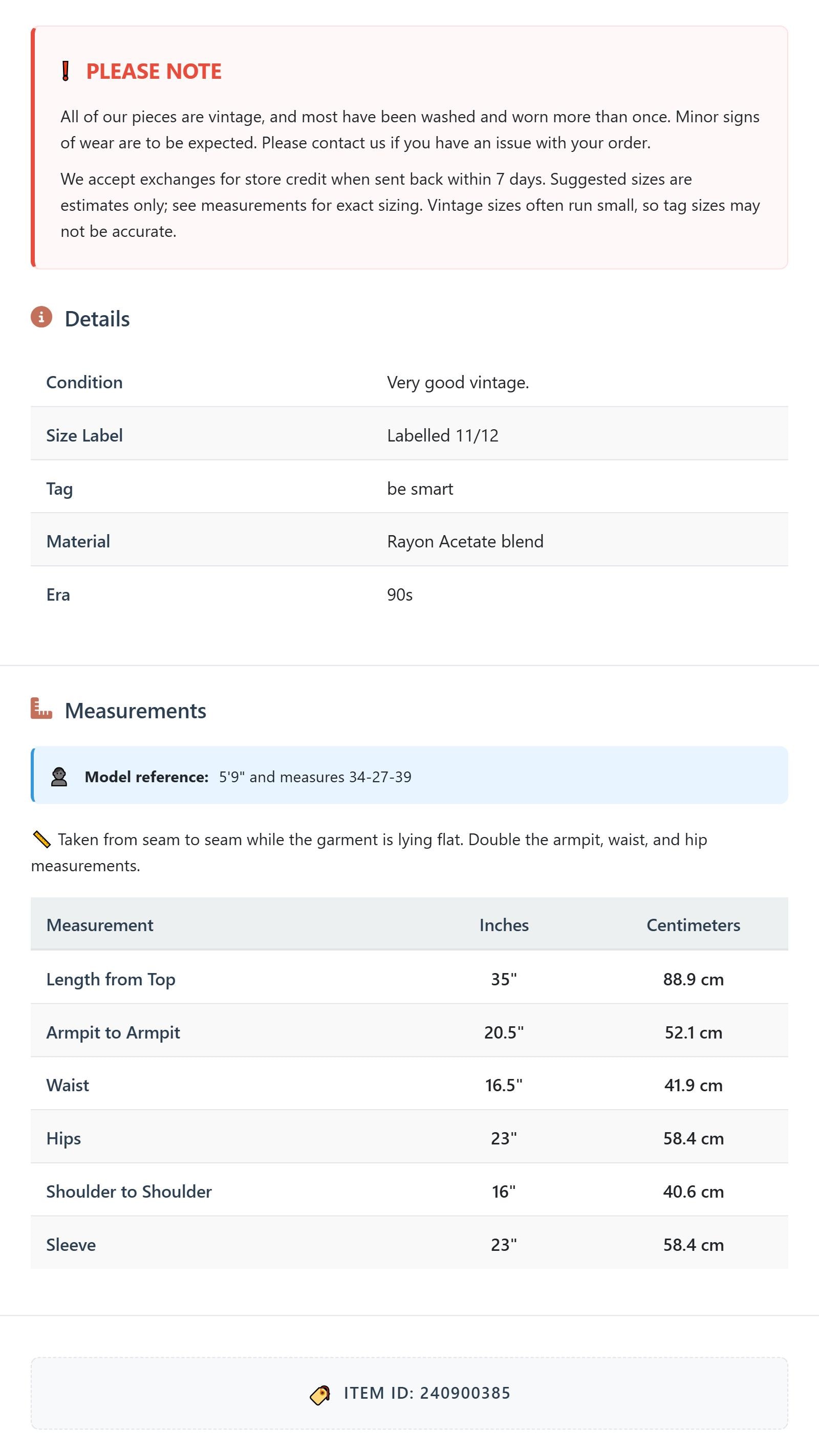 Suggested sizes are estimates only; see measurements for exact sizing. Vintage sizes often run small, so tag sizes may not be accurate.