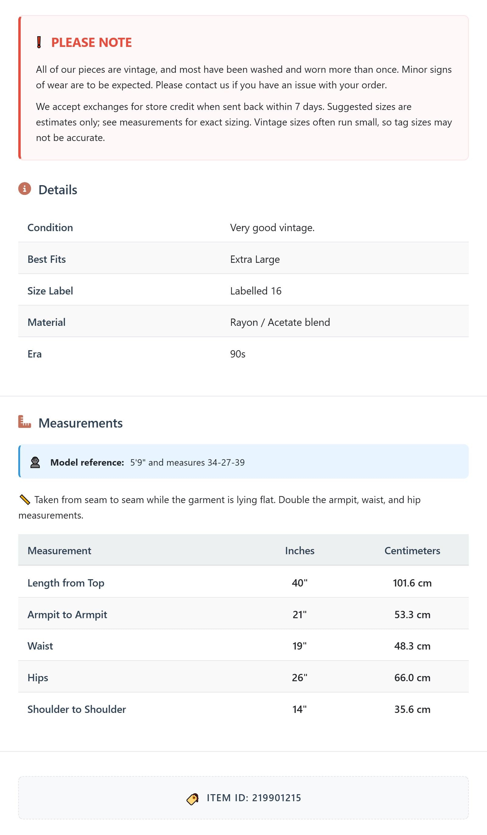 Please see measurements and condition below. Every garment we sell is authentic vintage! You will receive the exact item photographed.