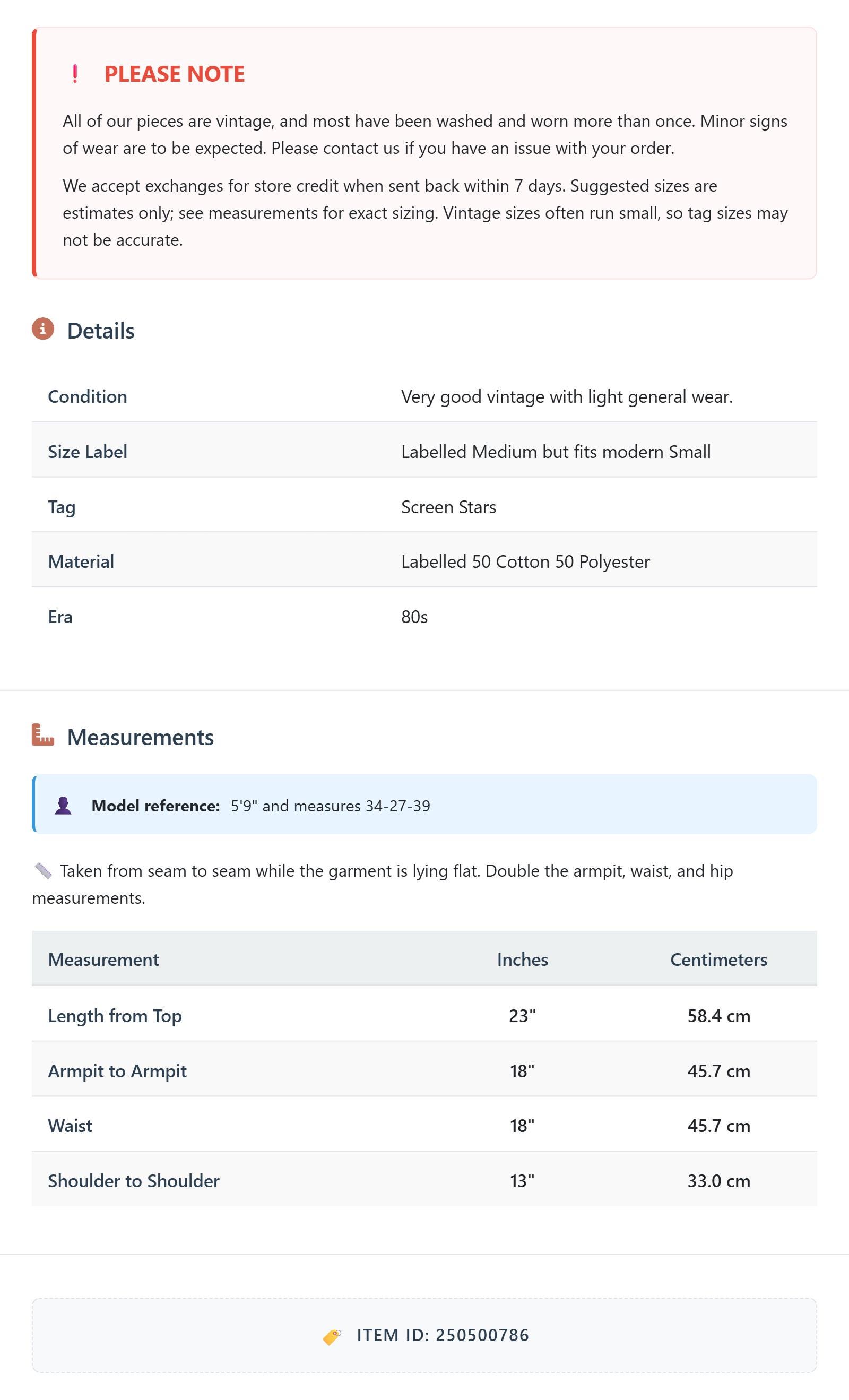 Suggested sizes are estimates only; see measurements for exact sizing. Vintage sizes often run small, so tag sizes may not be accurate.