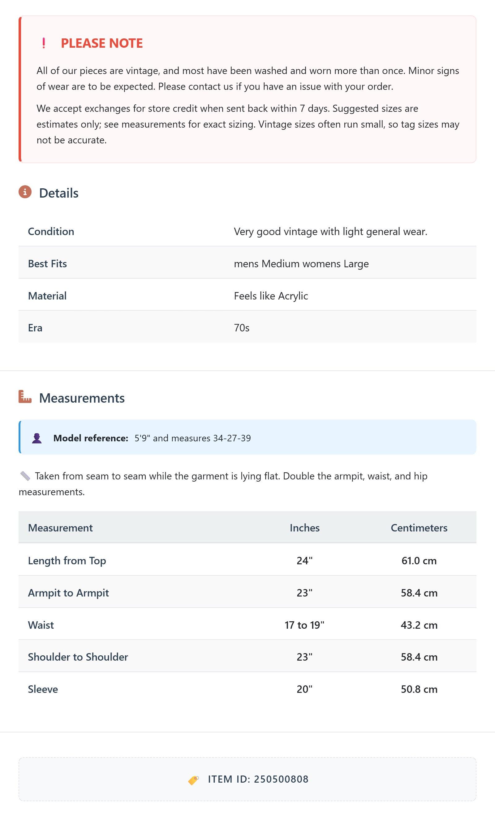 Suggested sizes are estimates only; see measurements for exact sizing. Vintage sizes often run small, so tag sizes may not be accurate.