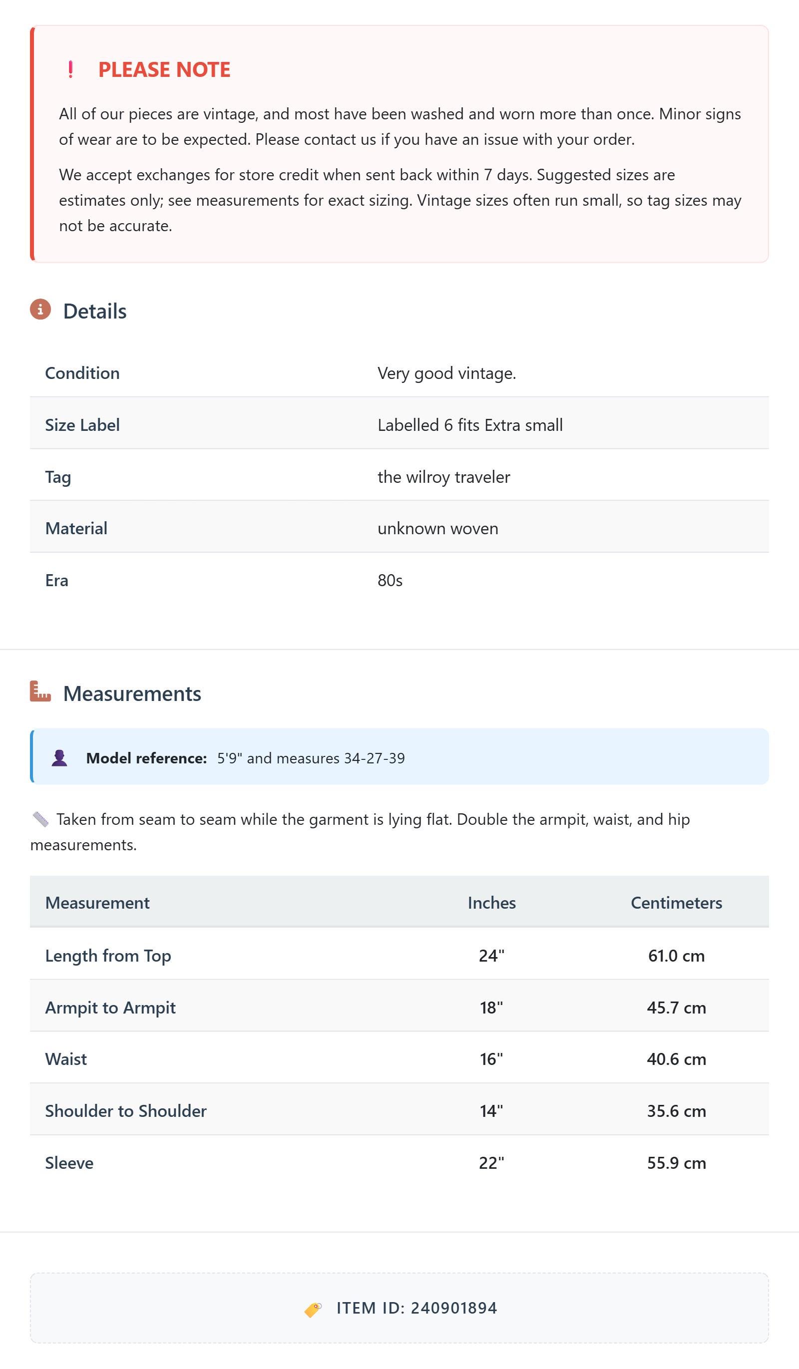 Suggested sizes are estimates only; see measurements for exact sizing. Vintage sizes often run small, so tag sizes may not be accurate.