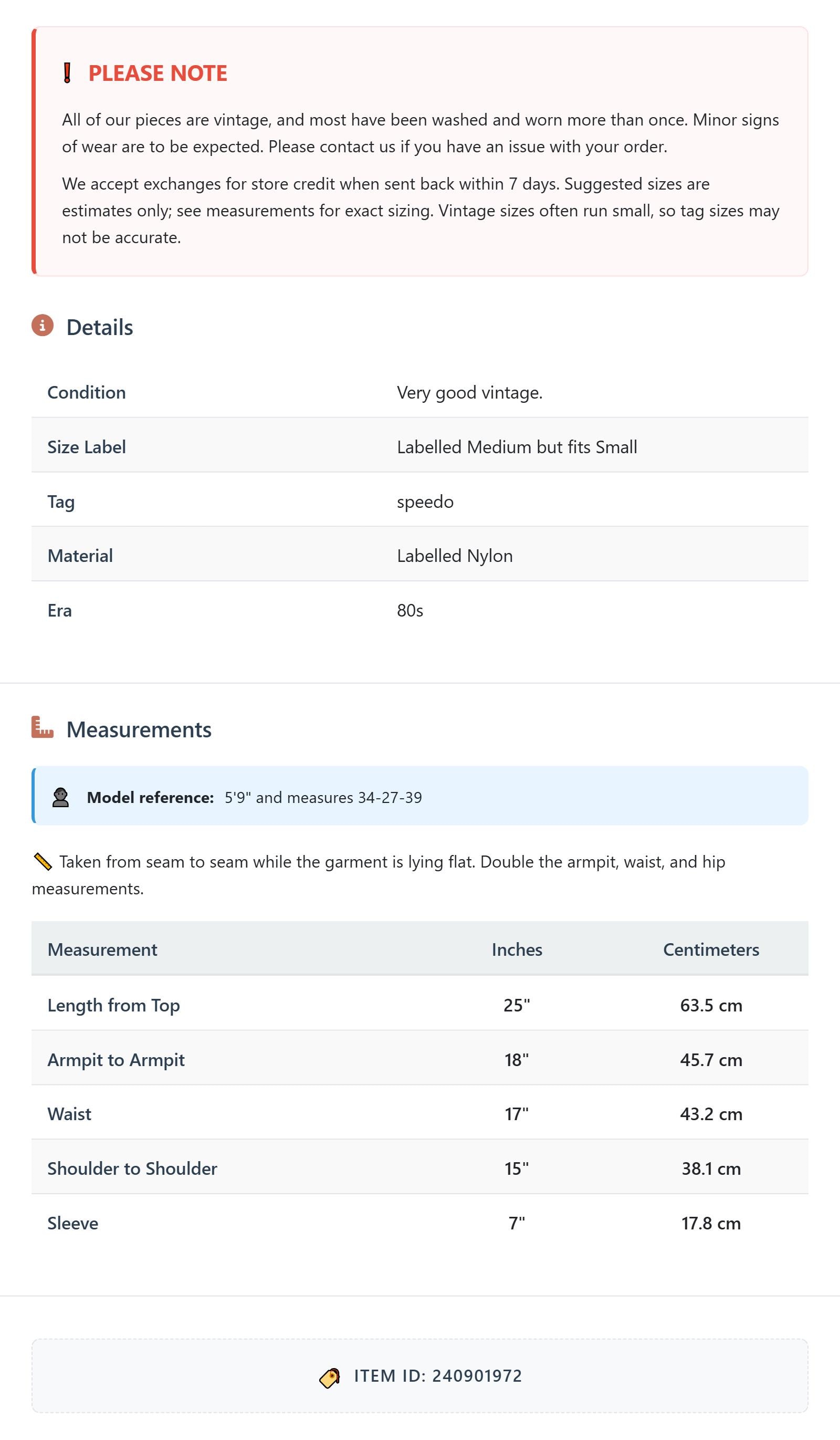 Suggested sizes are estimates only; see measurements for exact sizing. Vintage sizes often run small, so tag sizes may not be accurate.