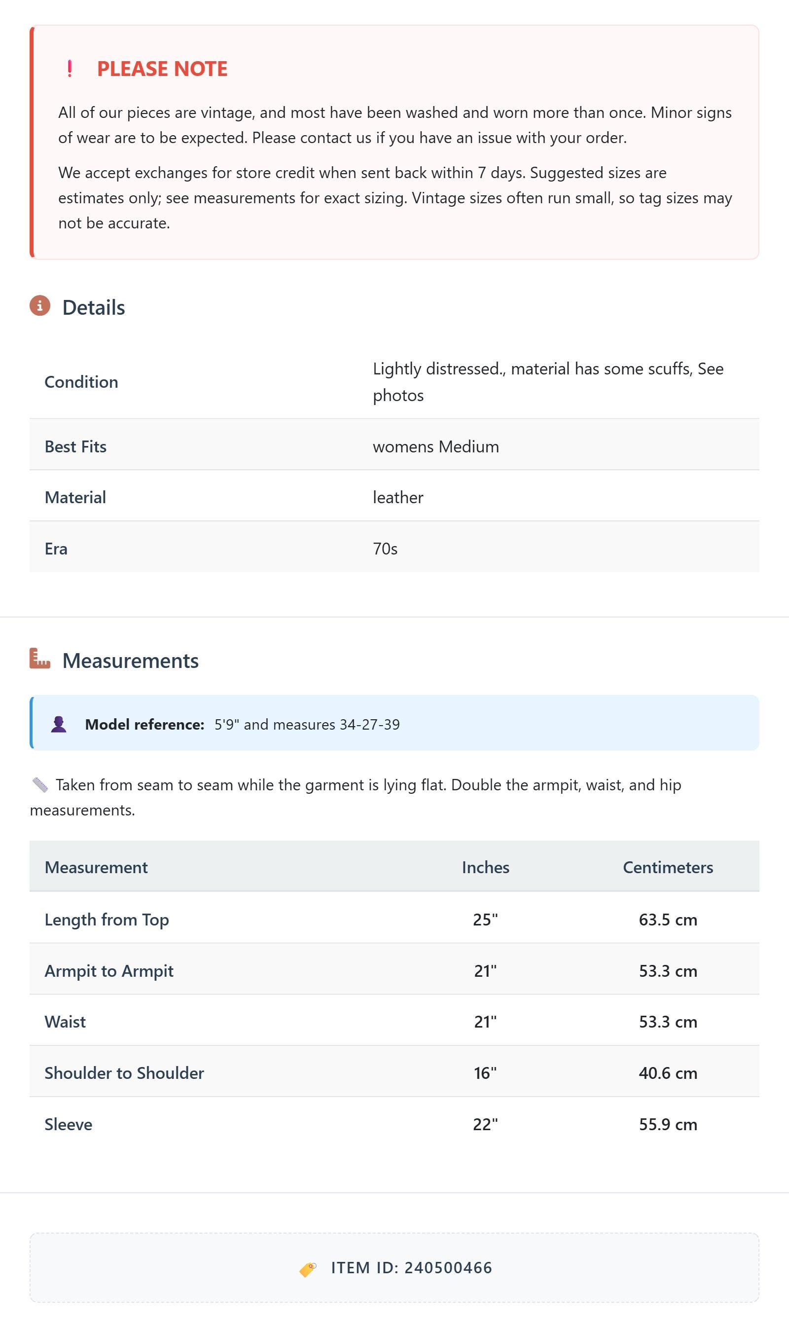 Suggested sizes are estimates only; see measurements for exact sizing. Vintage sizes often run small, so tag sizes may not be accurate.