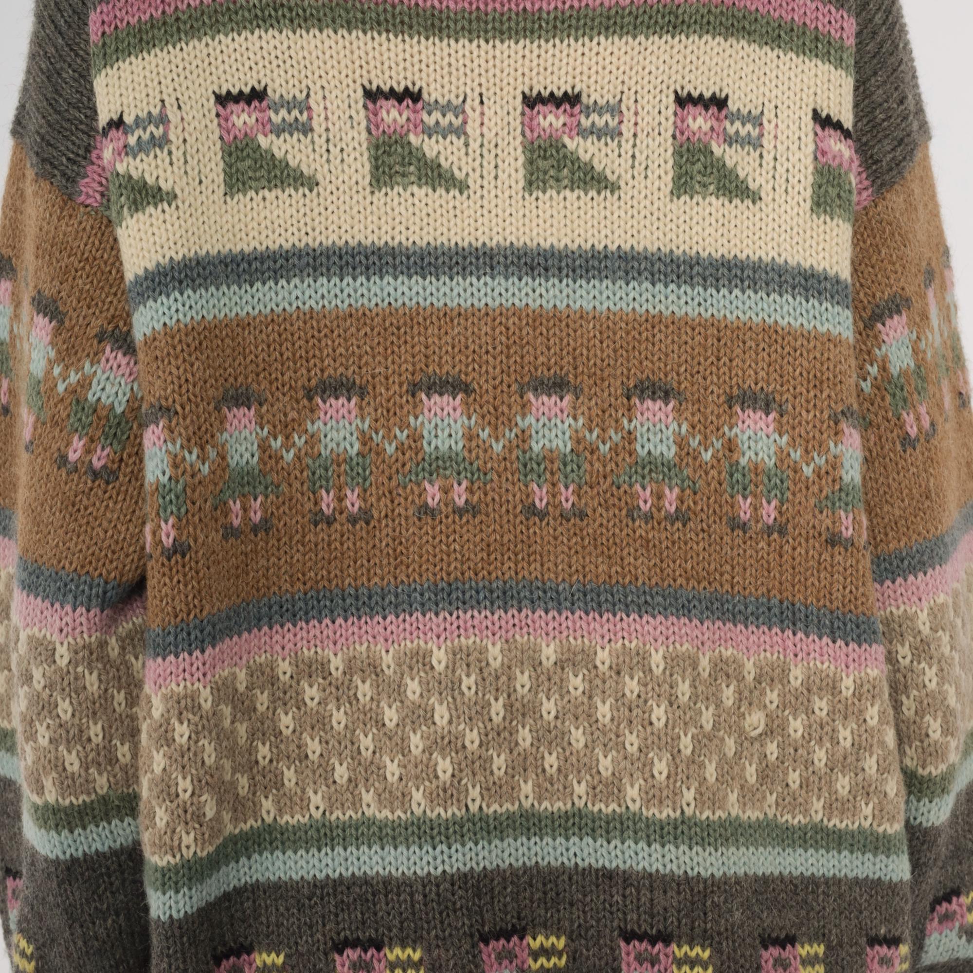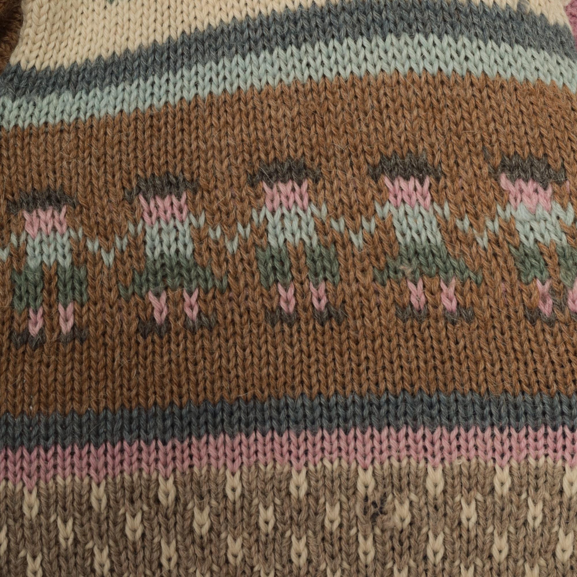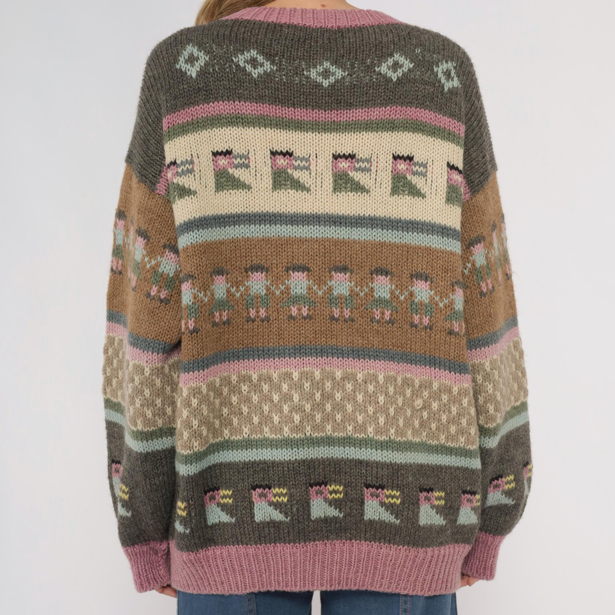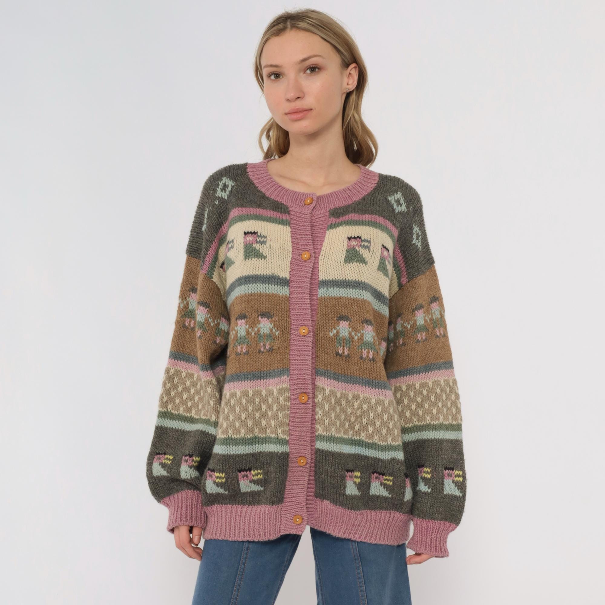 Vintage 90s Peruvian knit alpaca wool cardigan sweater with a Geometric Peruvian alpaca design and buttons up the front.