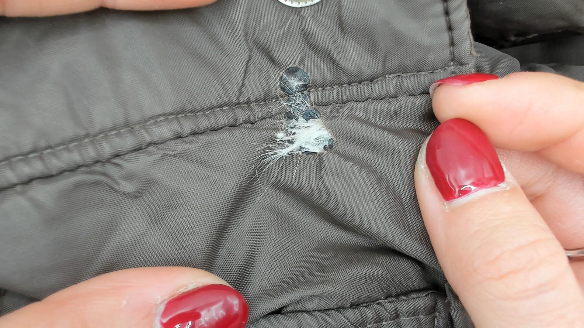 Condition: Gently distressed, has a few small spots and has a small burn hole near snap buttons See photos