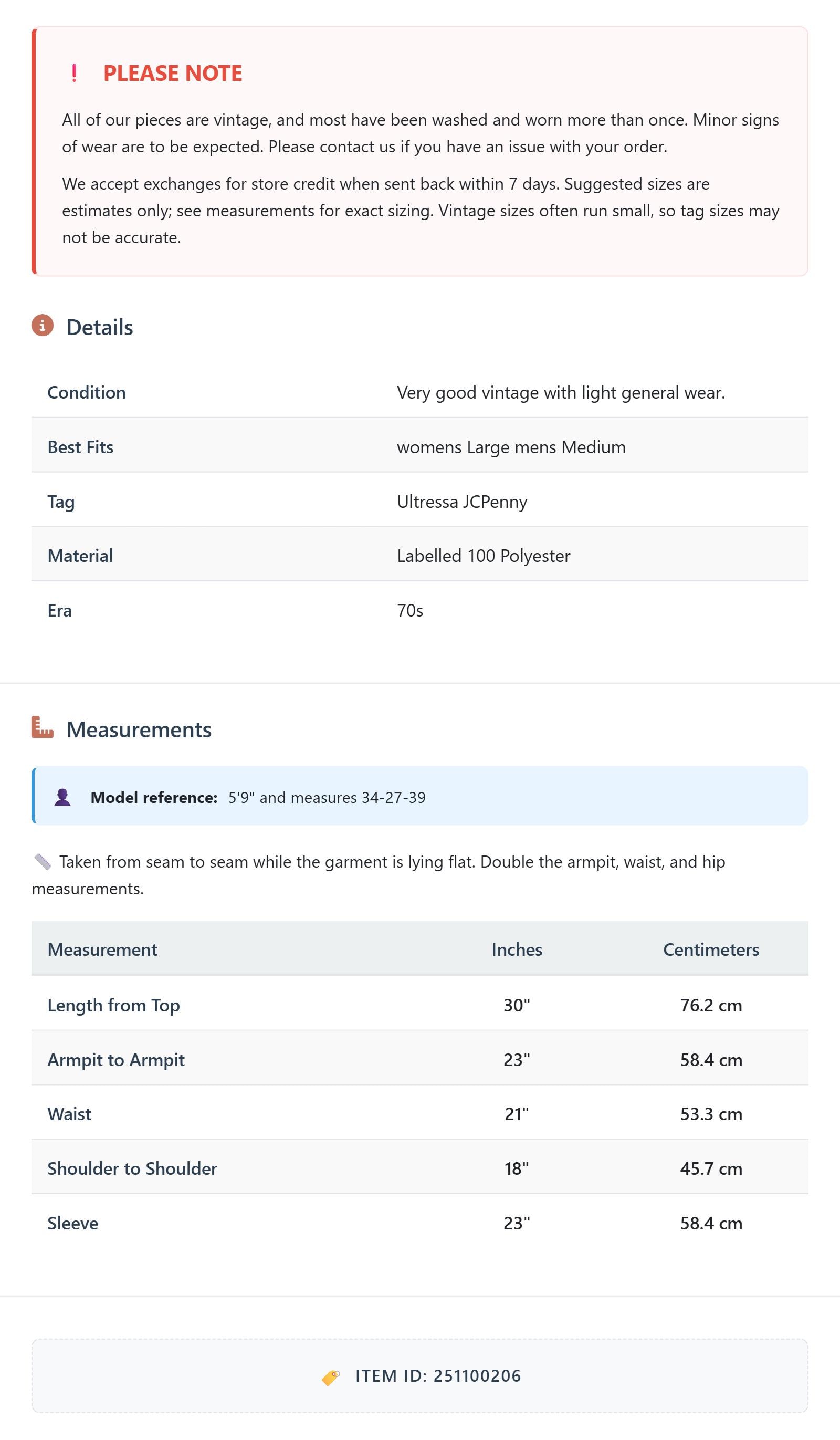 Suggested sizes are estimates only; see measurements for exact sizing. Vintage sizes often run small, so tag sizes may not be accurate.