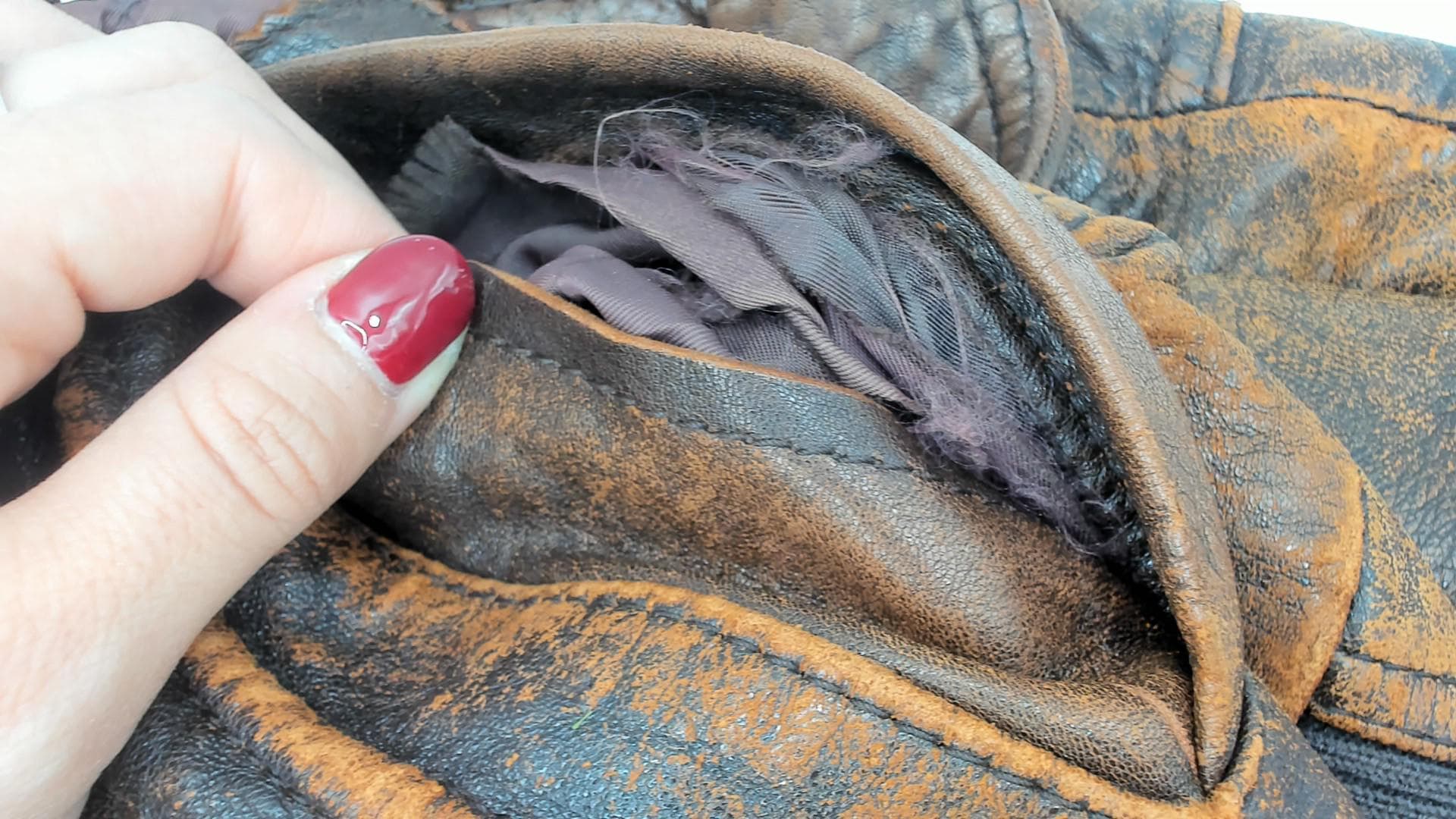 Condition: Gently distressed and worn in throughout, inside lining of pockets has been torn but can be repaired, has a mend and has a few scuffs throughout See photos