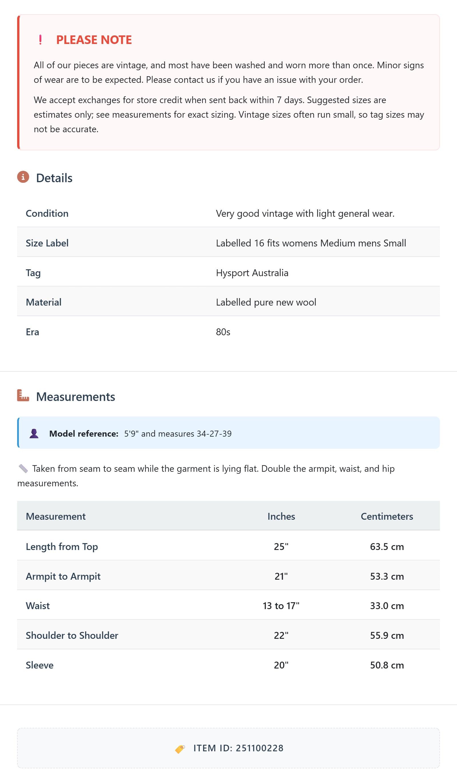 Suggested sizes are estimates only; see measurements for exact sizing. Vintage sizes often run small, so tag sizes may not be accurate.