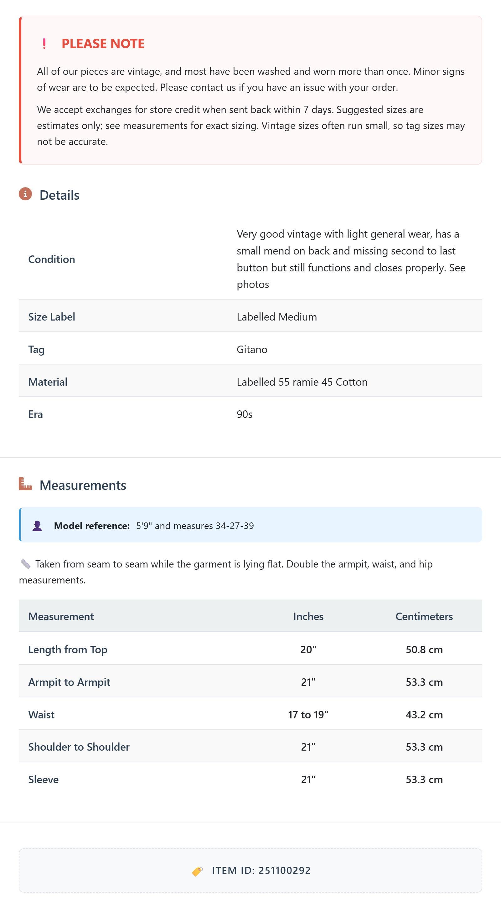 Suggested sizes are estimates only; see measurements for exact sizing. Vintage sizes often run small, so tag sizes may not be accurate.