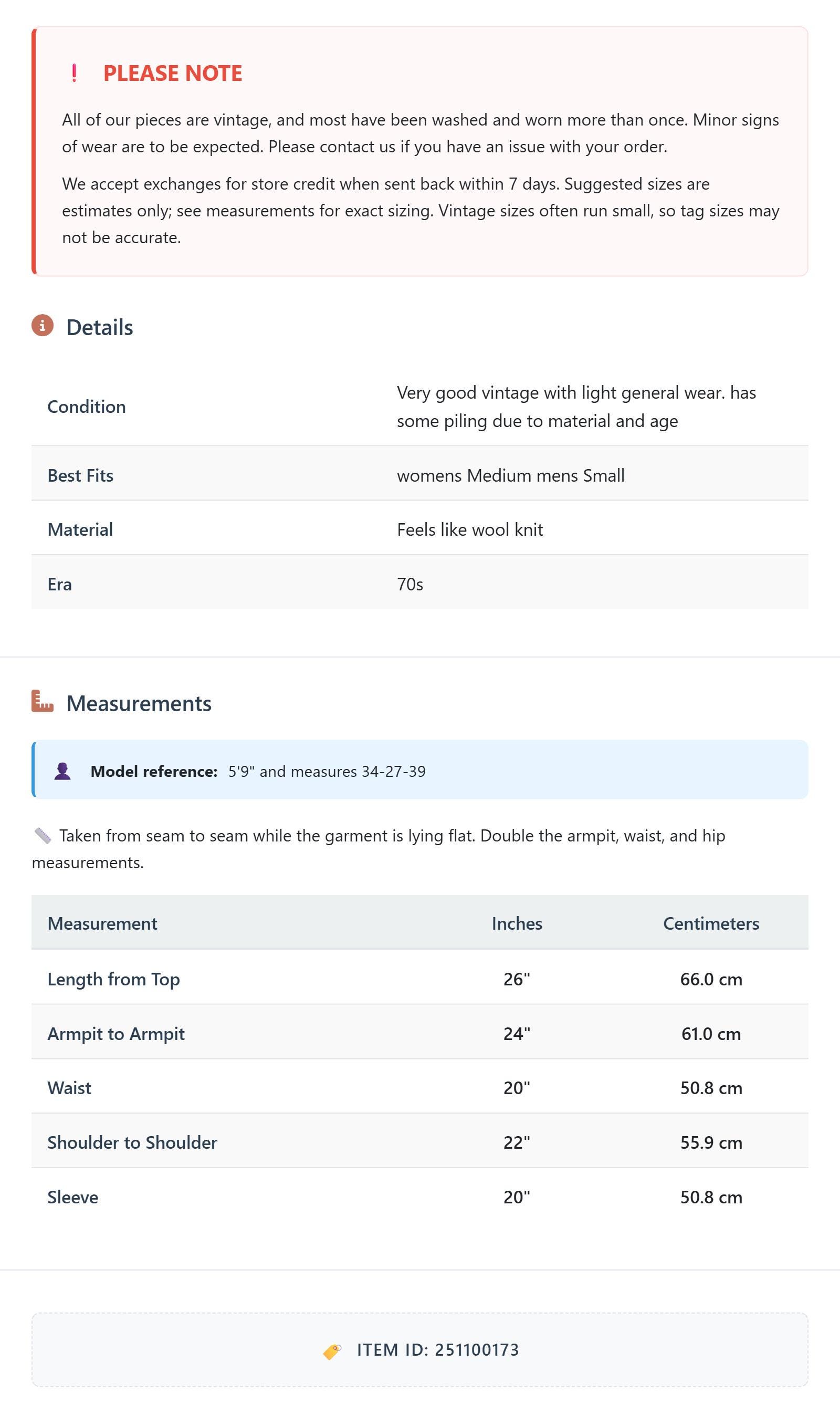 Suggested sizes are estimates only; see measurements for exact sizing. Vintage sizes often run small, so tag sizes may not be accurate.