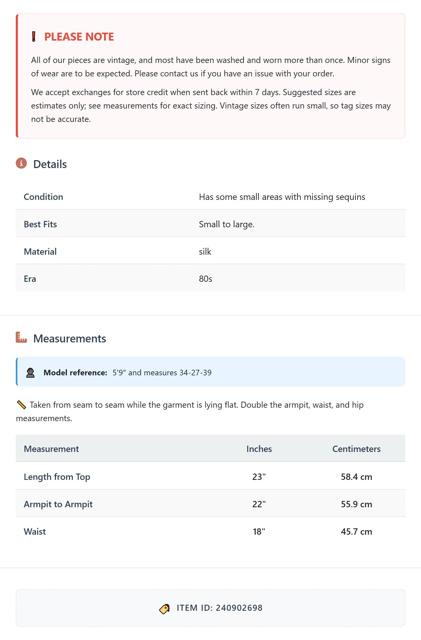Suggested sizes are estimates only; see measurements for exact sizing. Vintage sizes often run small, so tag sizes may not be accurate.