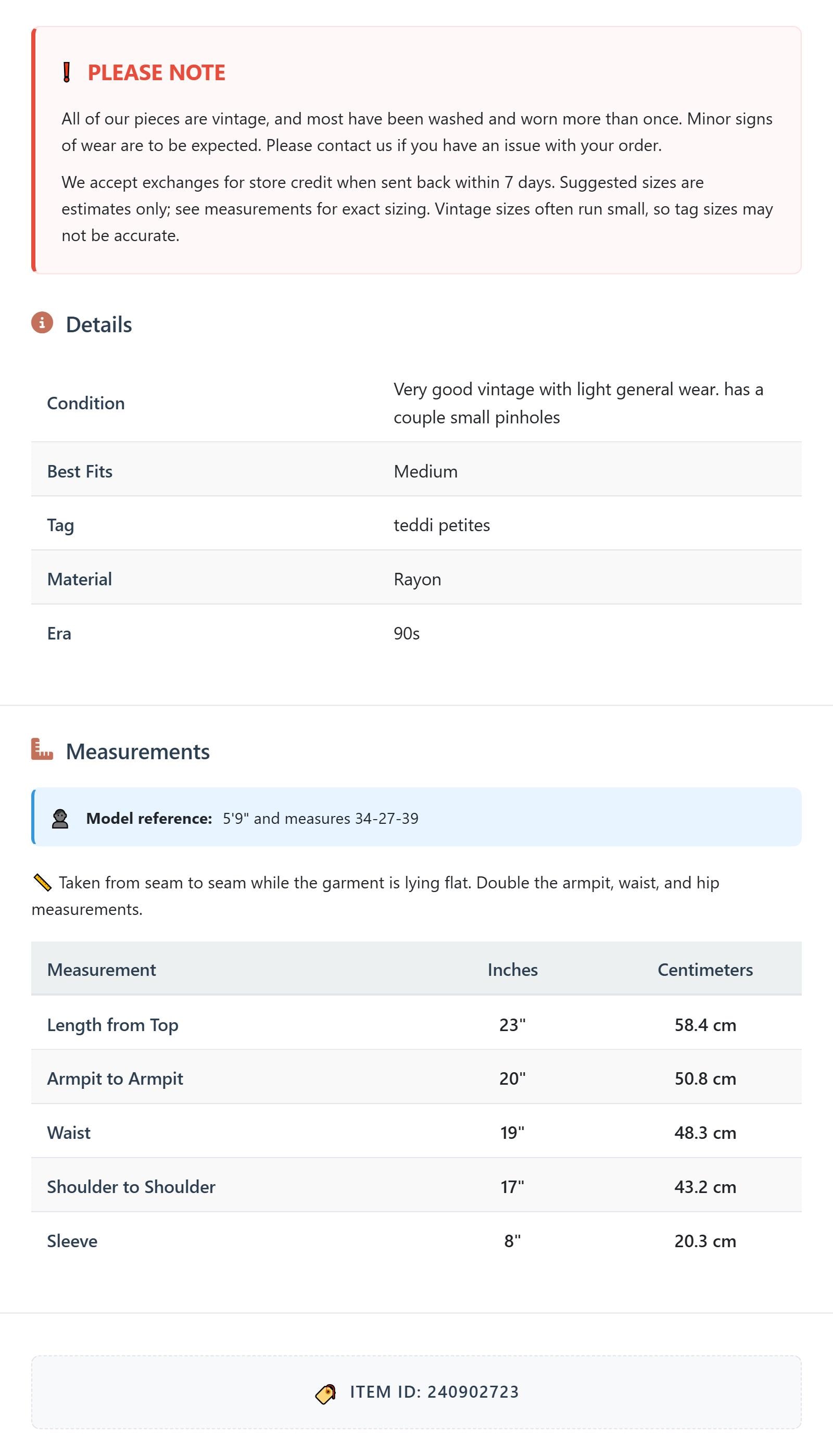 Suggested sizes are estimates only; see measurements for exact sizing. Vintage sizes often run small, so tag sizes may not be accurate.