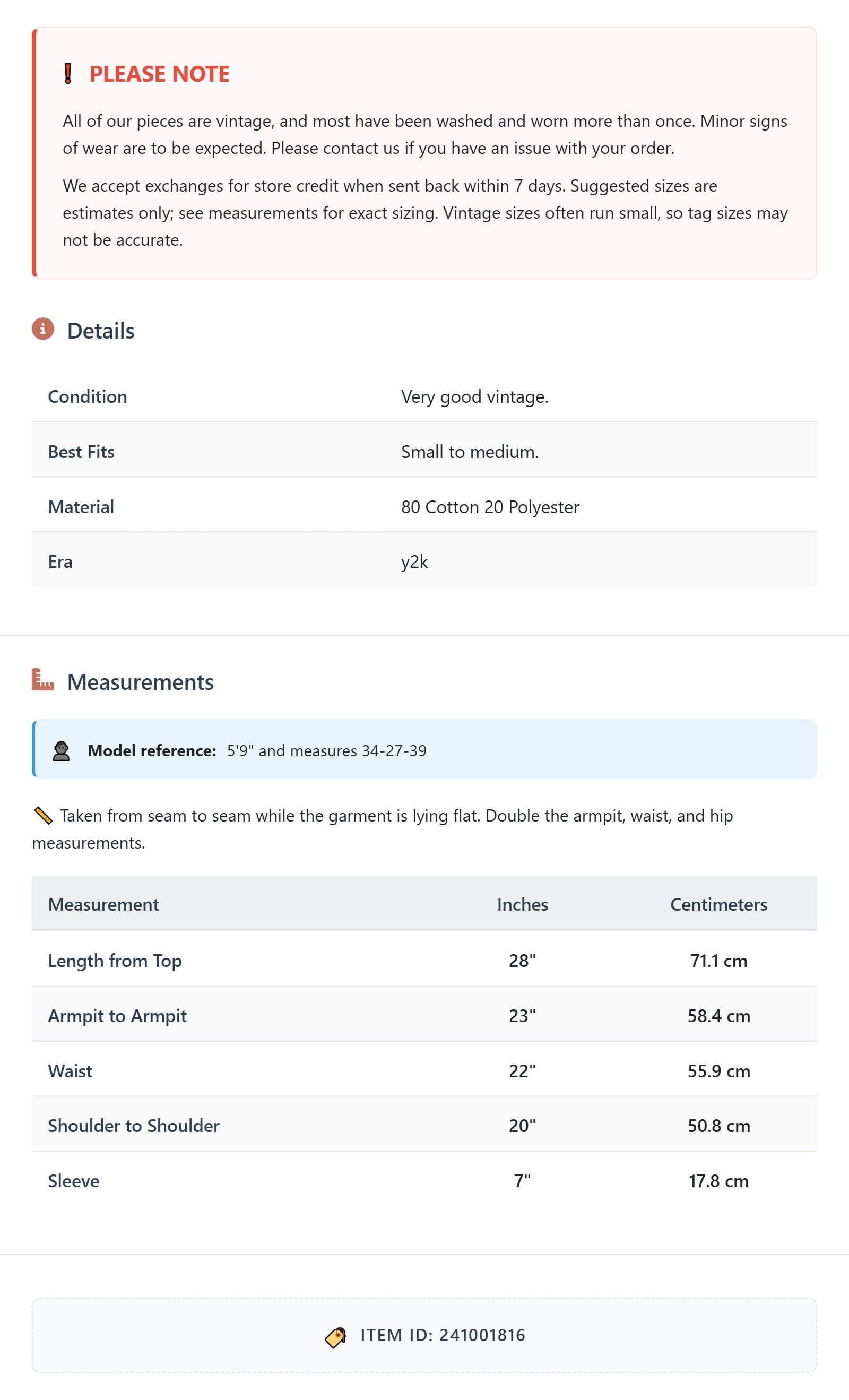 Suggested sizes are estimates only; see measurements for exact sizing. Vintage sizes often run small, so tag sizes may not be accurate.