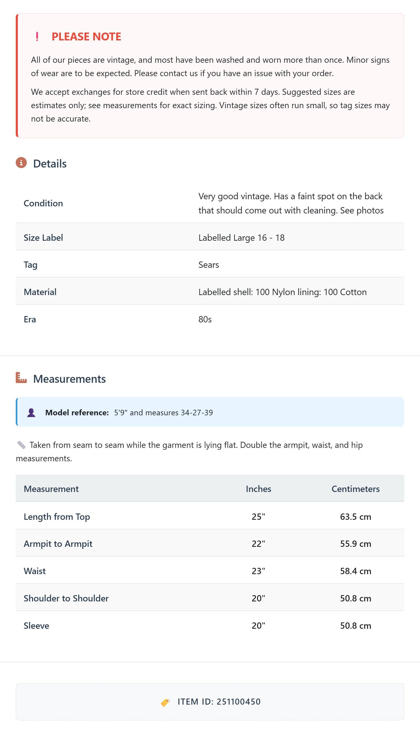 Suggested sizes are estimates only; see measurements for exact sizing. Vintage sizes often run small, so tag sizes may not be accurate.