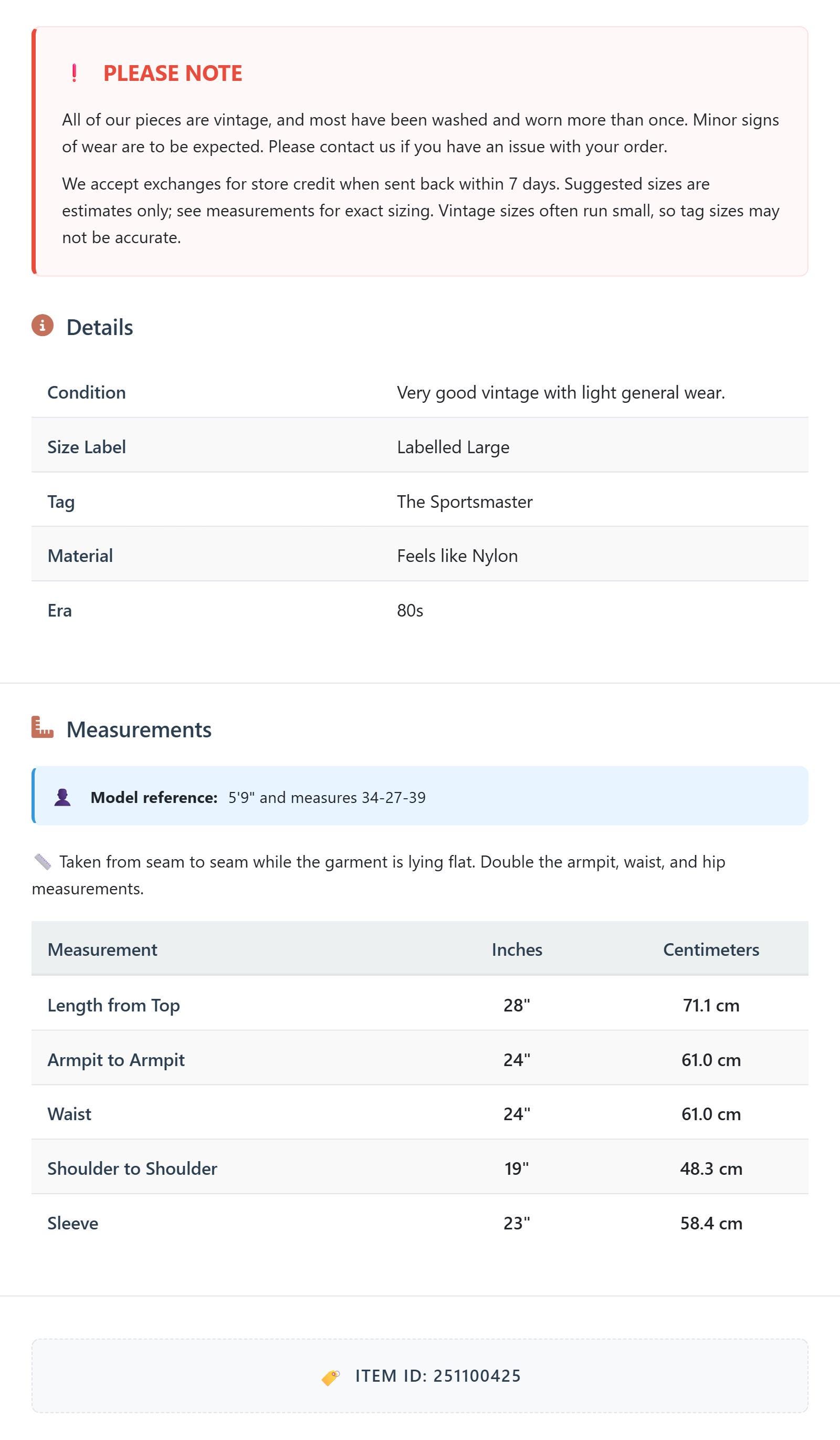 Suggested sizes are estimates only; see measurements for exact sizing. Vintage sizes often run small, so tag sizes may not be accurate.